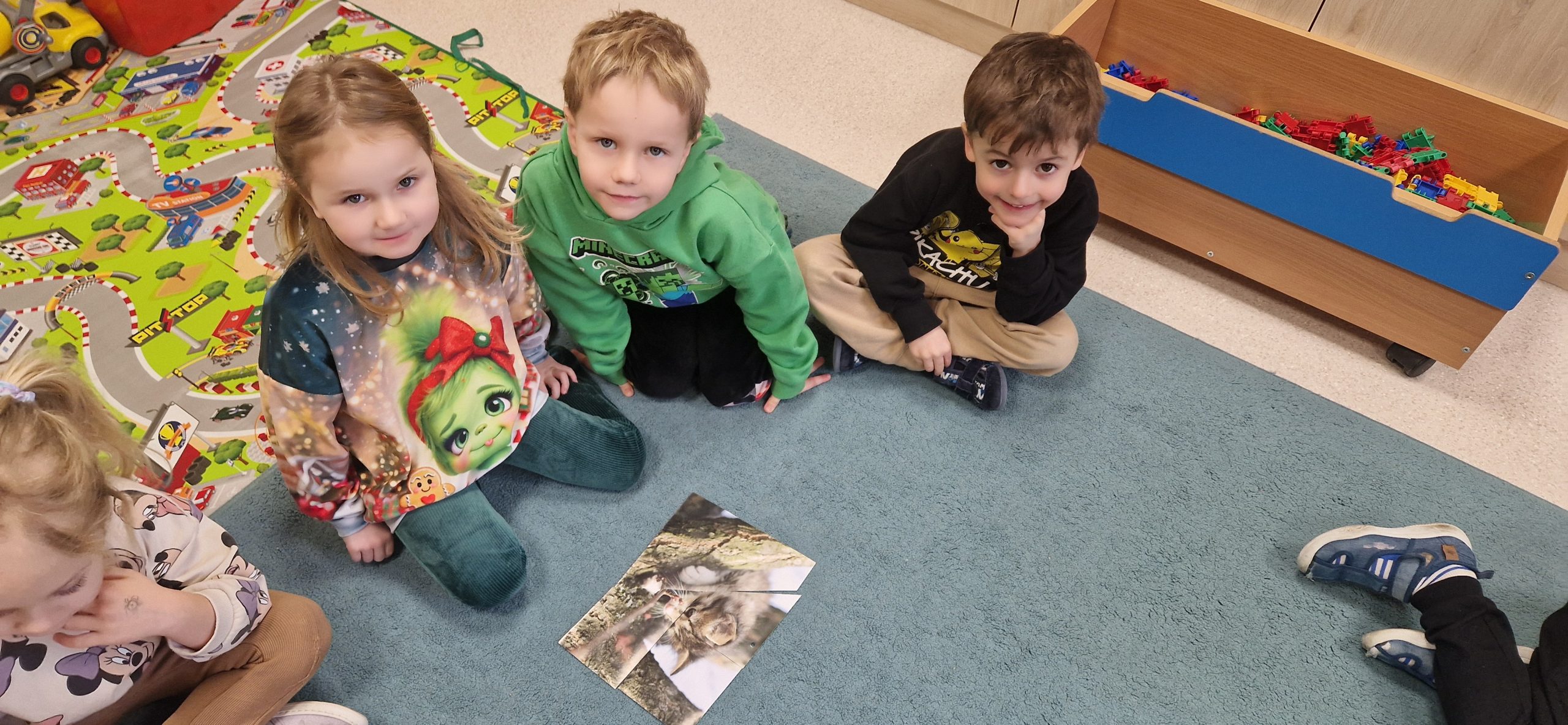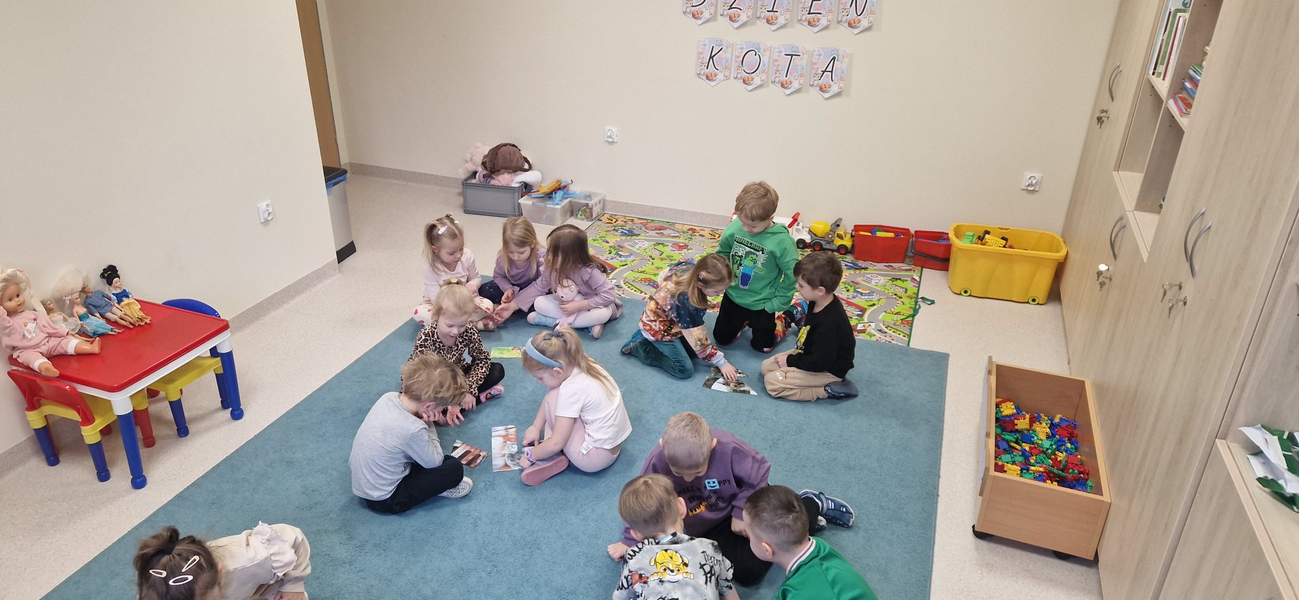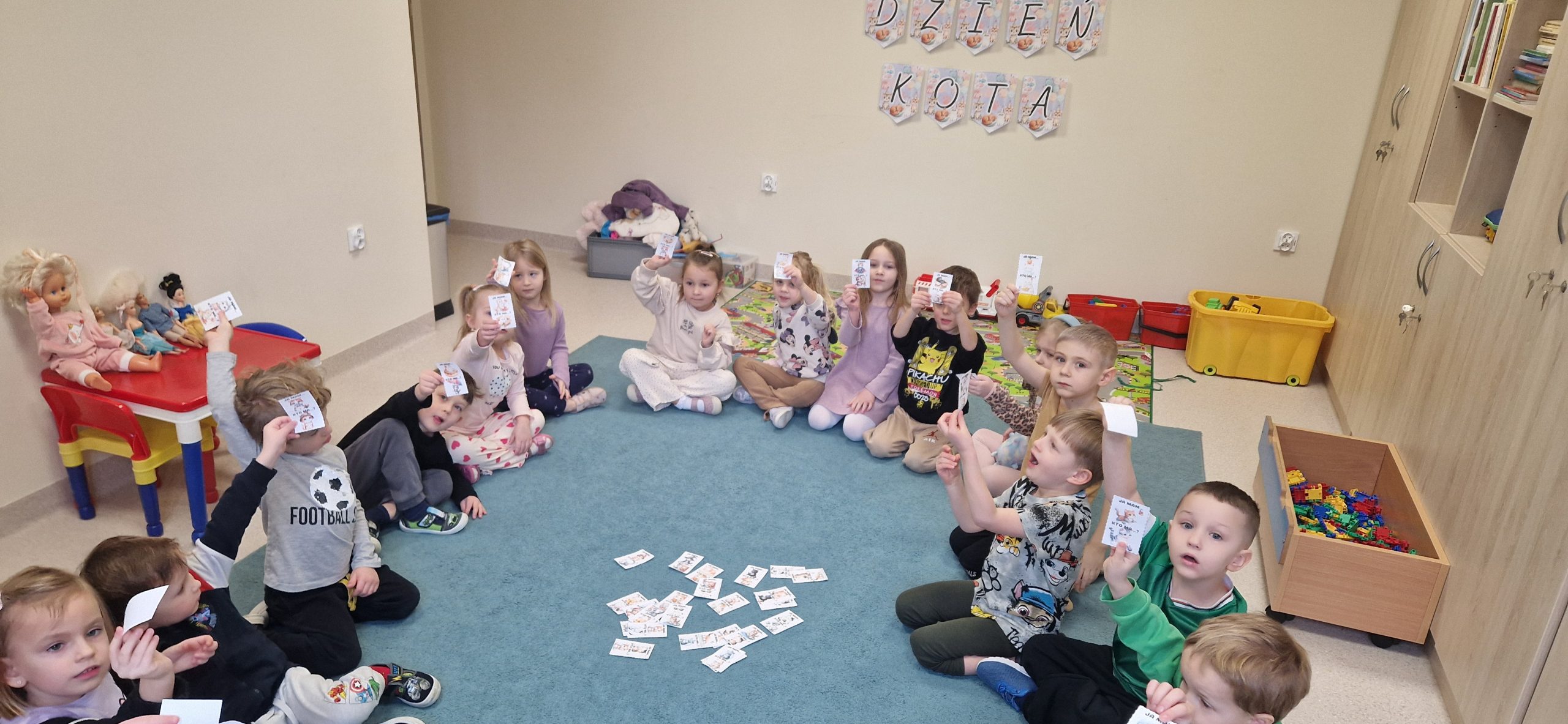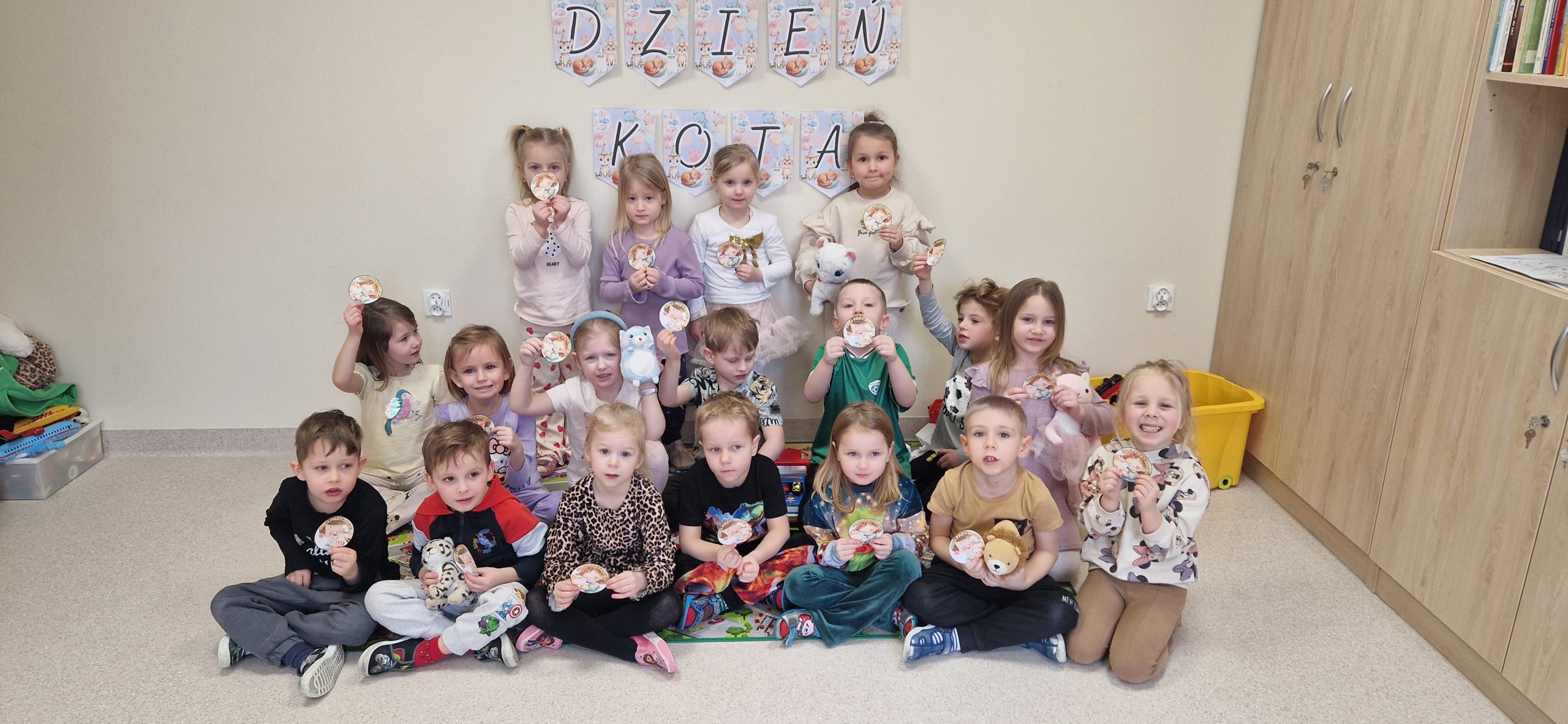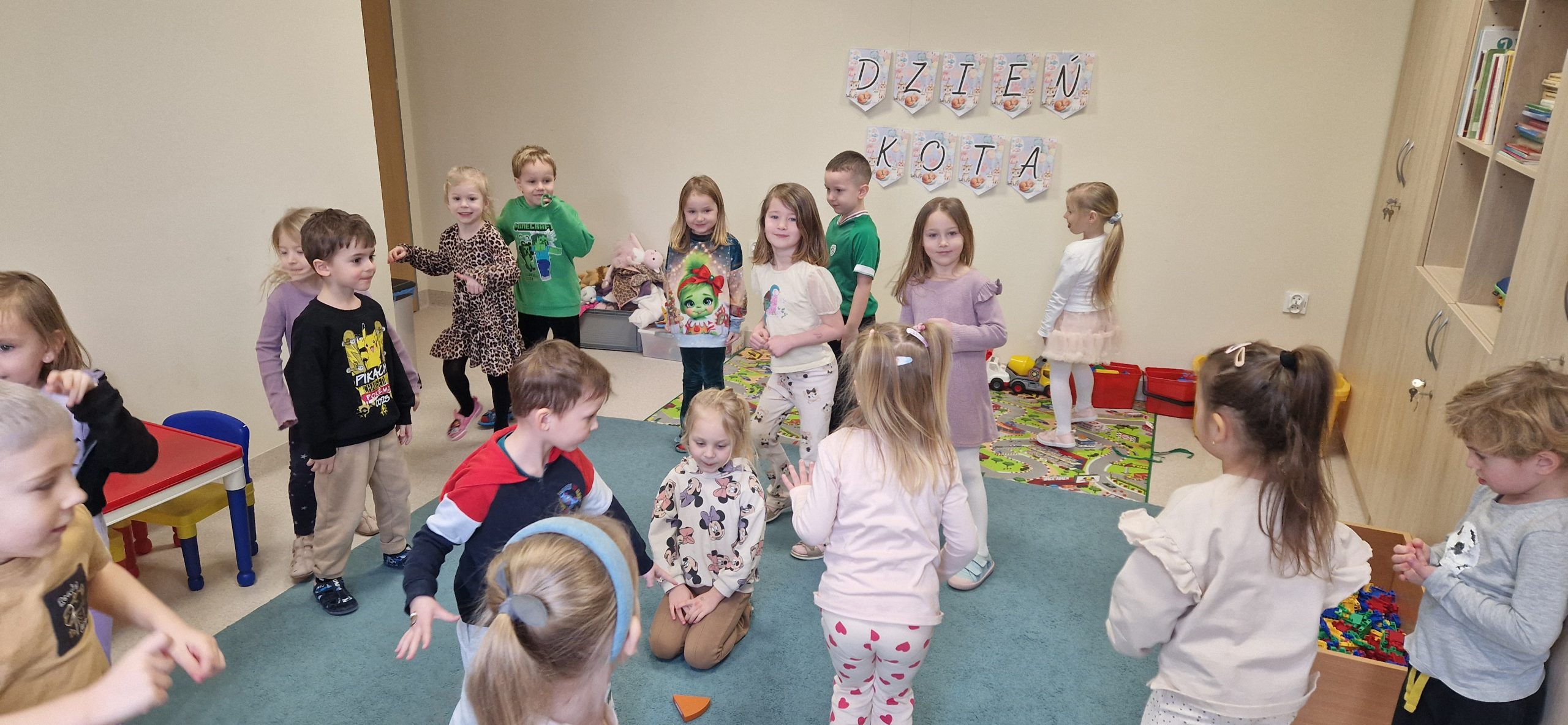 17 lutego w naszej grupie świętowaliśmy Światowy Dzień Kota. Tego dnia rozmawialiśmy o tym, jak należy opiekować się kotami, jakie mają wyczaje oraz dlaczego warto być dobrym i troskliwym wobec zwierząt. Dzieci uczestniczyły w różnych zabawach i grach zespołowych a na koniec każdy otrzymał odznakę „Kociego przyjaciela” co było miłym podsumowaniem tego wyjątkowego dnia.
