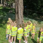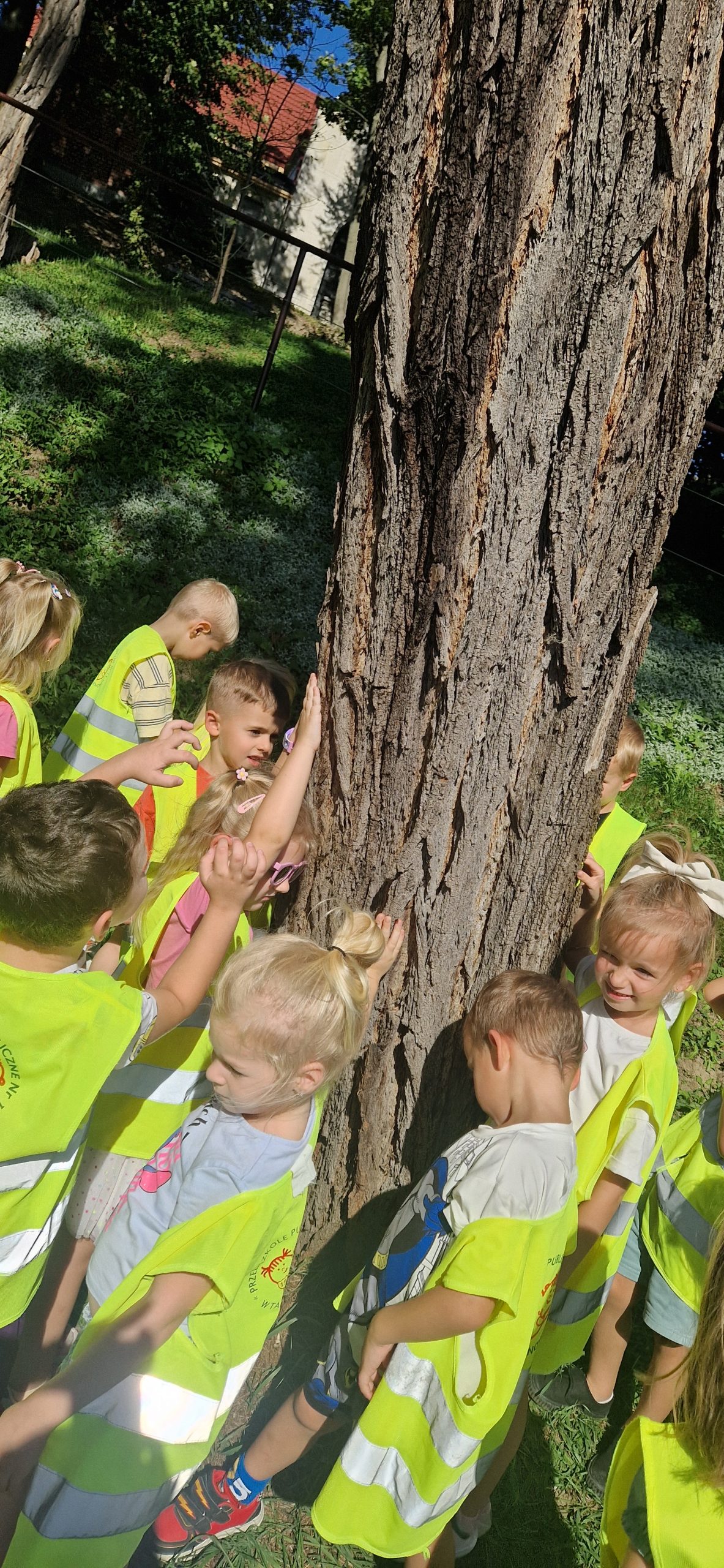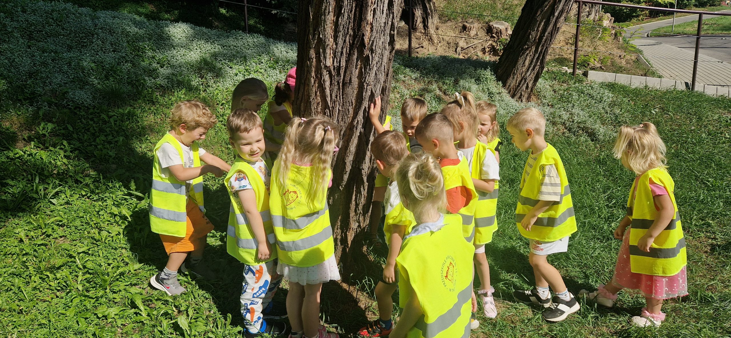 23 września grupa III wzięła udział w akcji „Przytul się do drzewa”, której celem było uwrażliwienie dzieci na piękno przyrody i potrzebę dbania o środowisko. Przedszkolaki z radością przytulały się do drzewa, słuchały odgłosów ptaków, odkrywały kto mieszka pod korą drzew i rozmawiały o tym, dlaczego drzewa są tak ważne dla ludzi i zwierząt. To była piękna, pełna pozytywnych emocji chwila blisko natury.