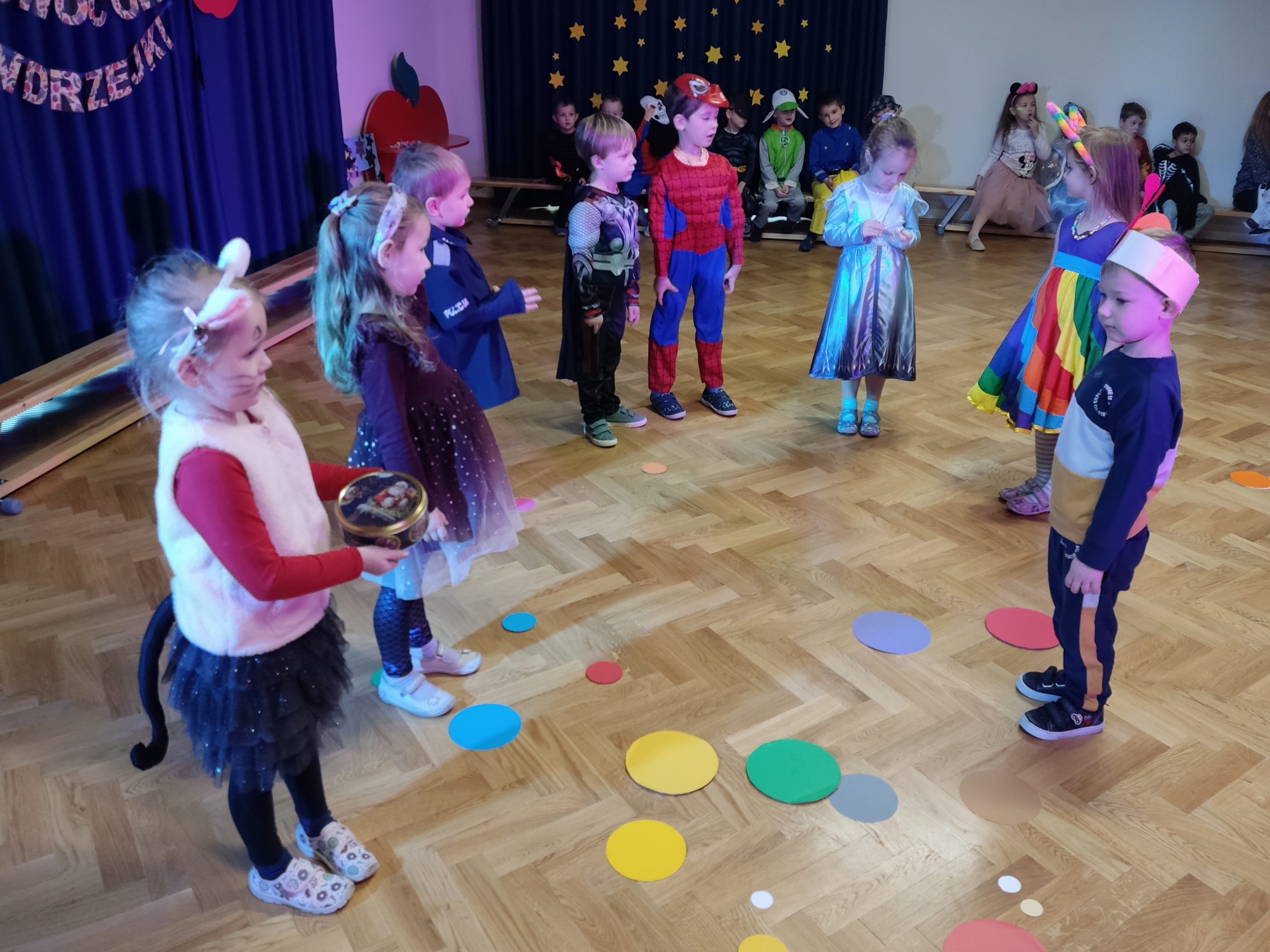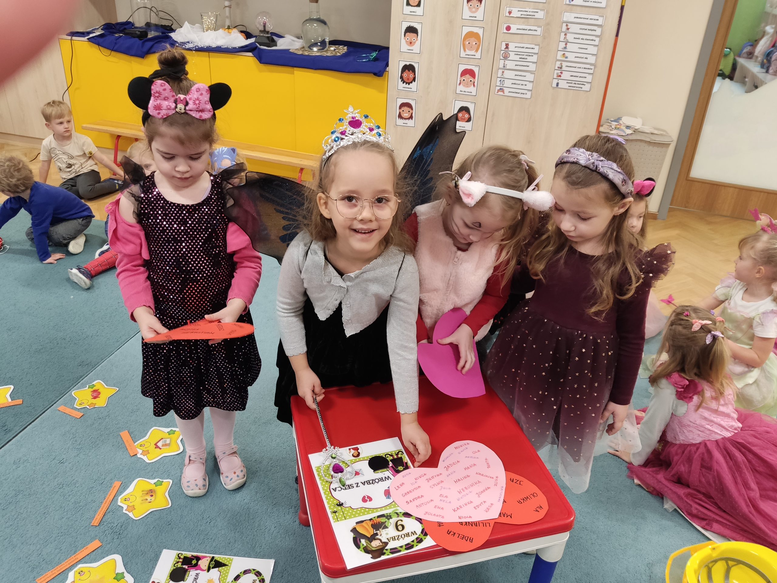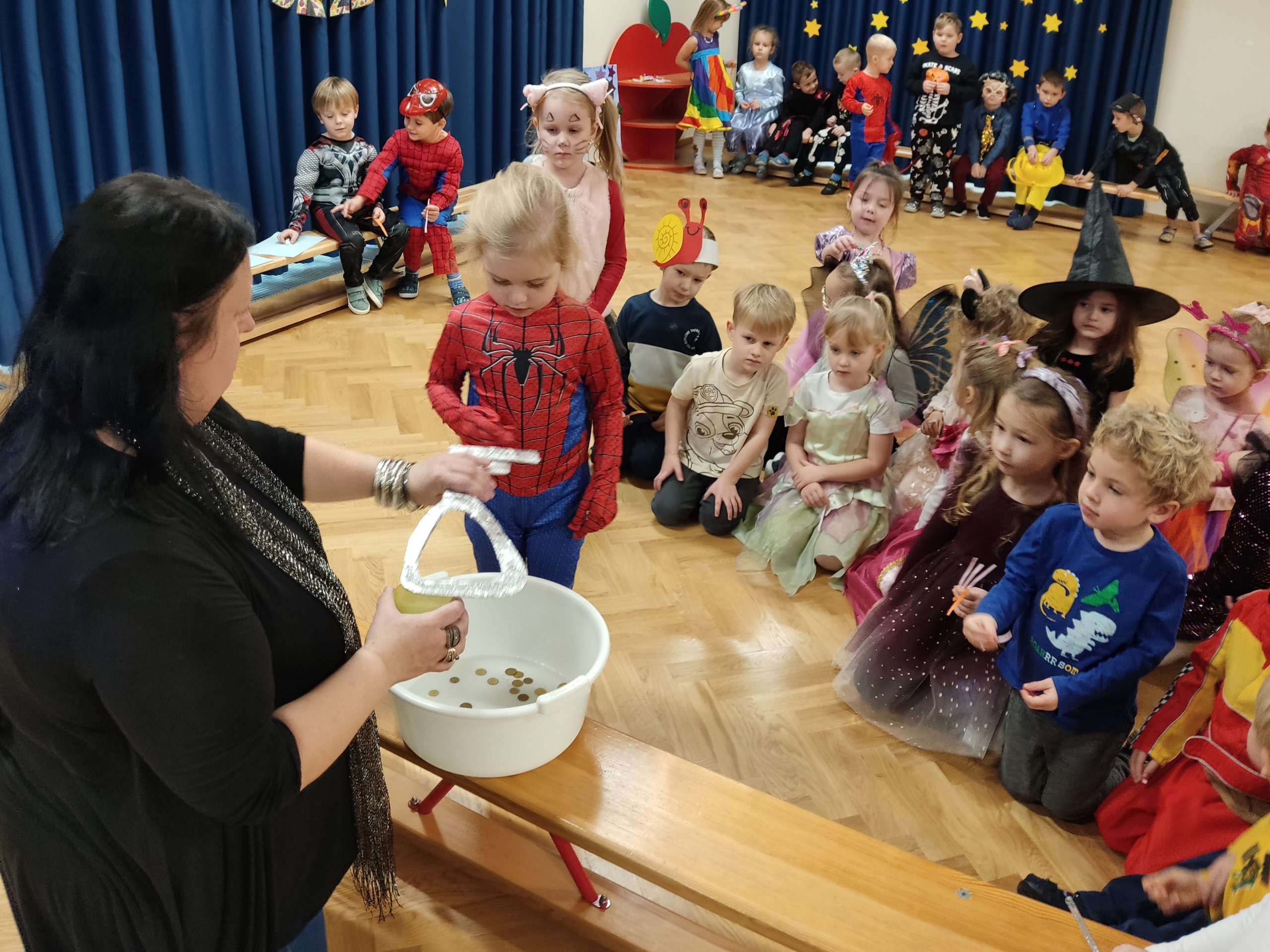 Niewątpliwą atrakcją był bal andrzejkowy, podczas którego dzieci wystąpiły w ciekawych i barwnych strojach, m.in.: królewny, wróżki, czarownicy, motylka, Myszki Miki, czarodzieja i super bohaterów, co dodatkowo podkreśliło atmosferę uroczystości. Wróżby pobudzają wyobraźnię dziecięcą, uczą kreatywności, pozwalają oderwać się od rzeczywistości i przenieść w świat marzeń i fantazji. Jednak najważniejsze jest to, że przyniosły dzieciom wiele radości i były okazją do wspólnej zabawy. Bardzo pysznym akcentem był słodki poczęstunek sfinansowany przez Radę Rodziców.
