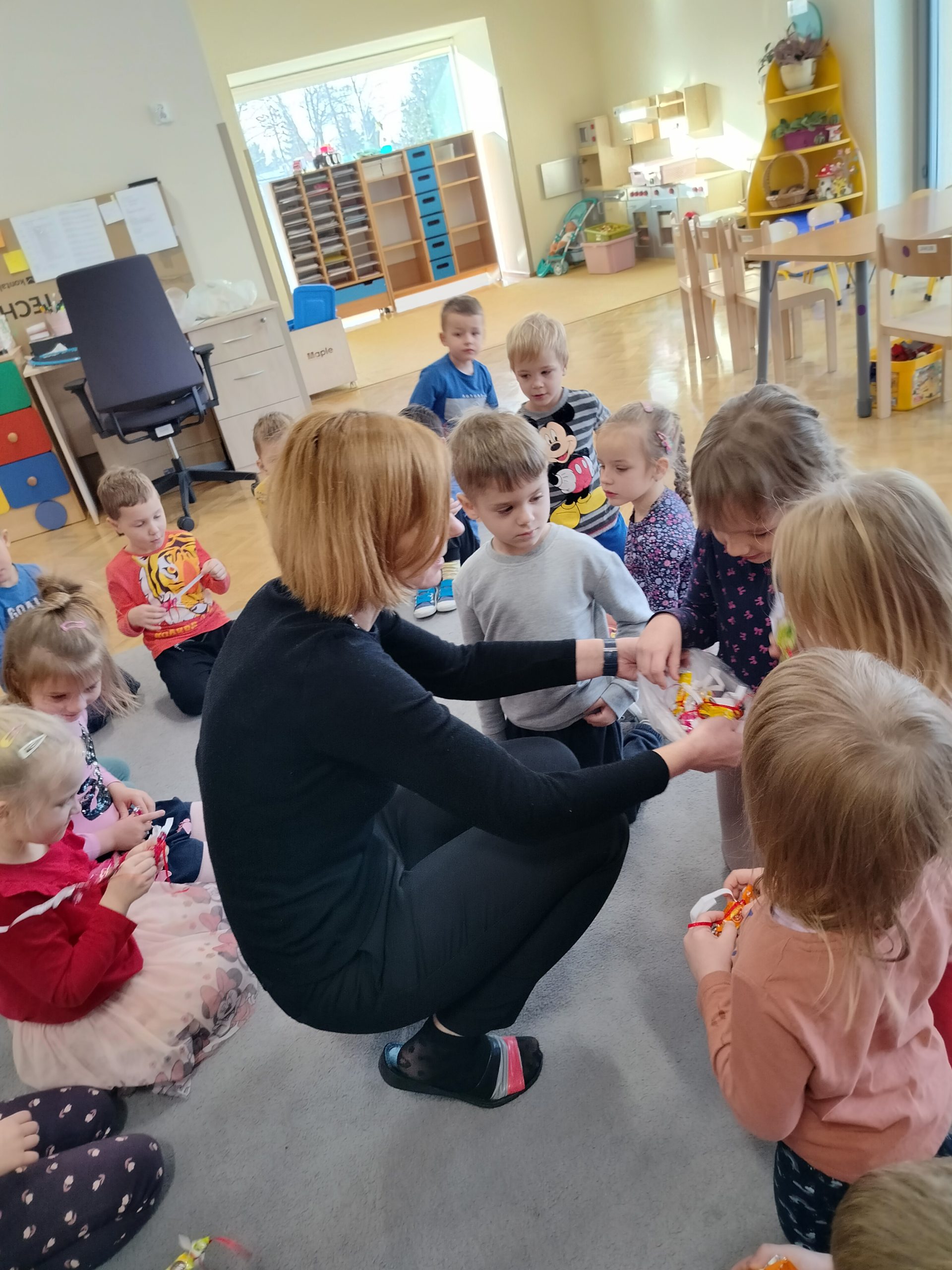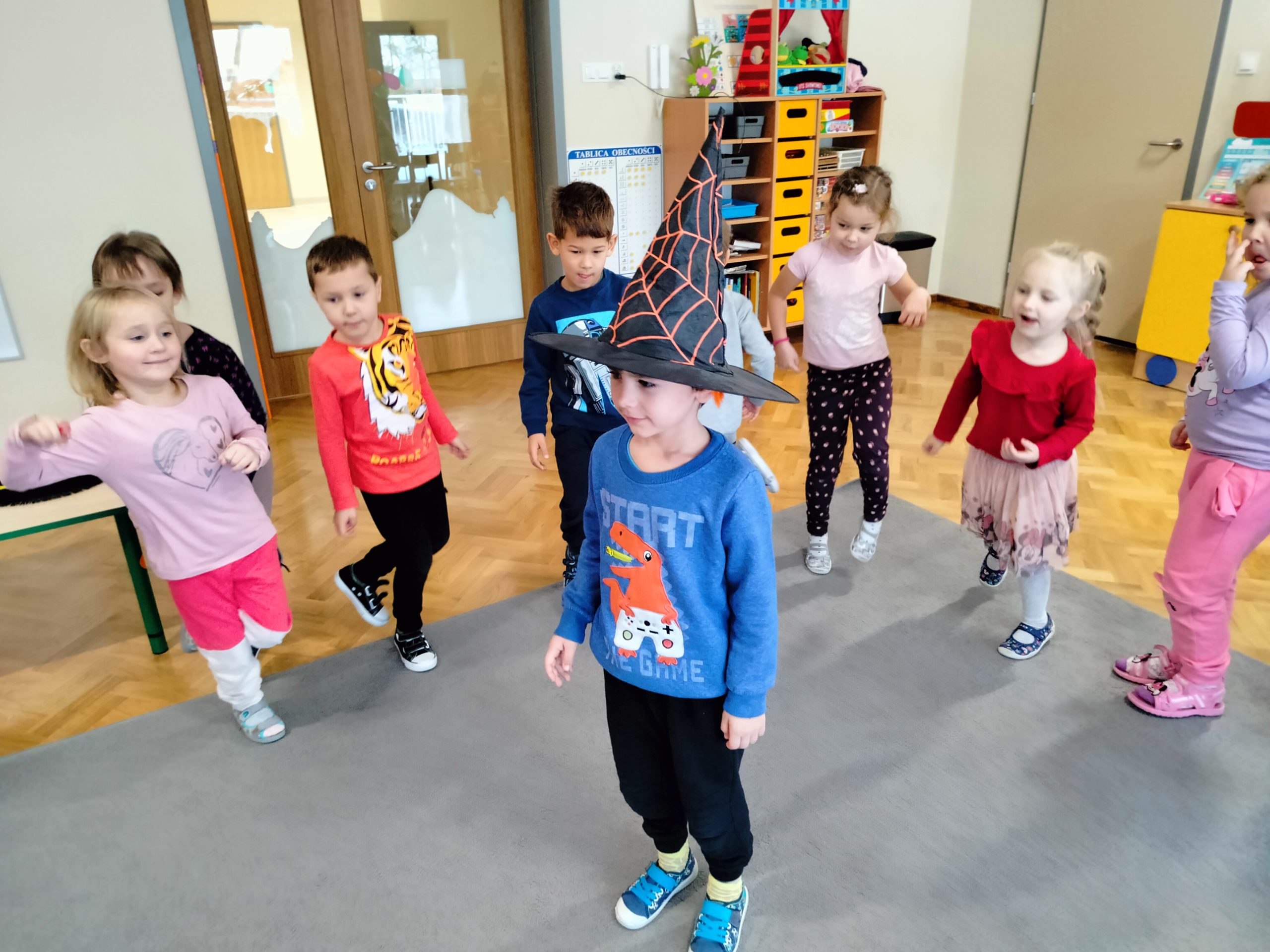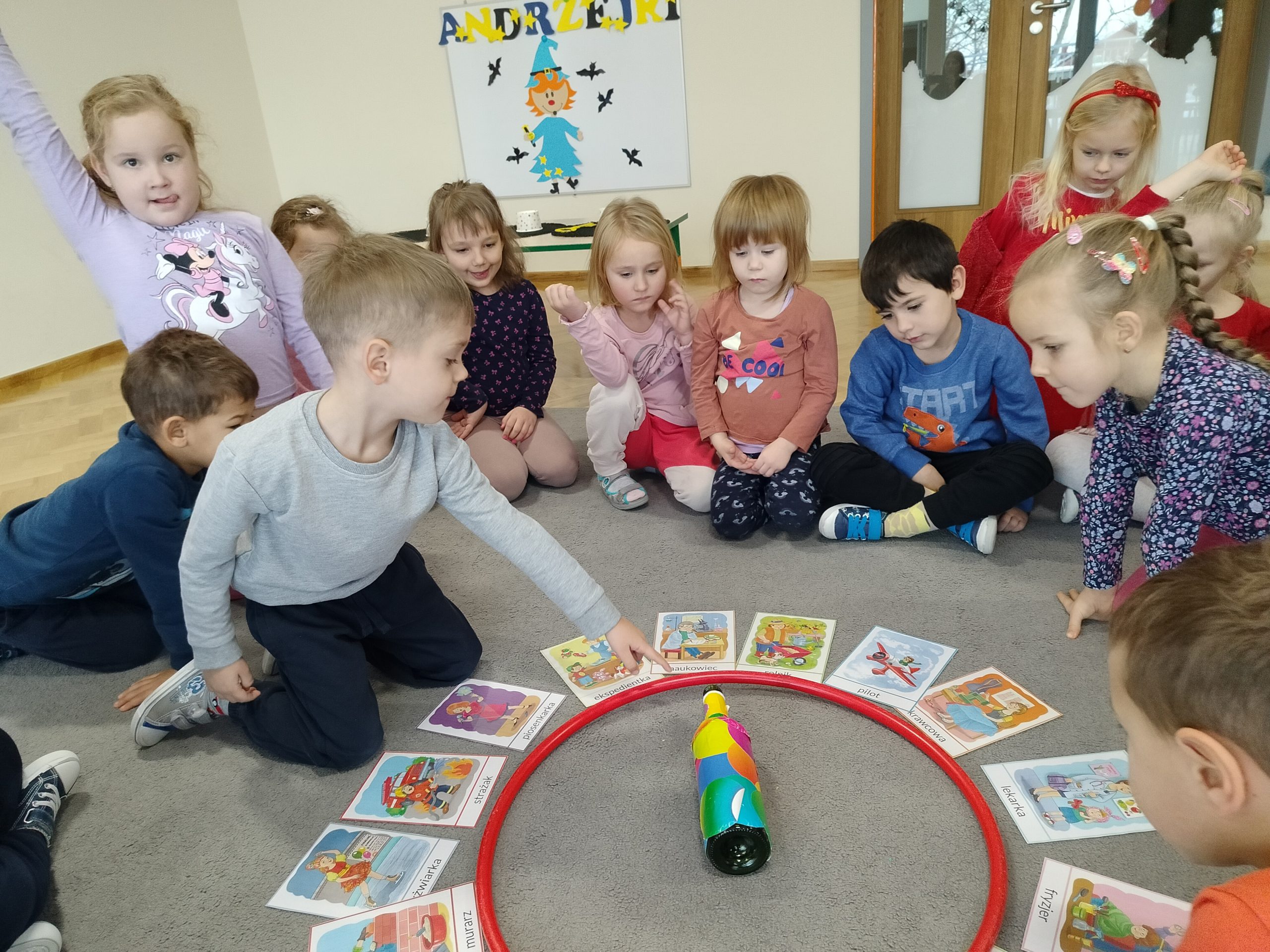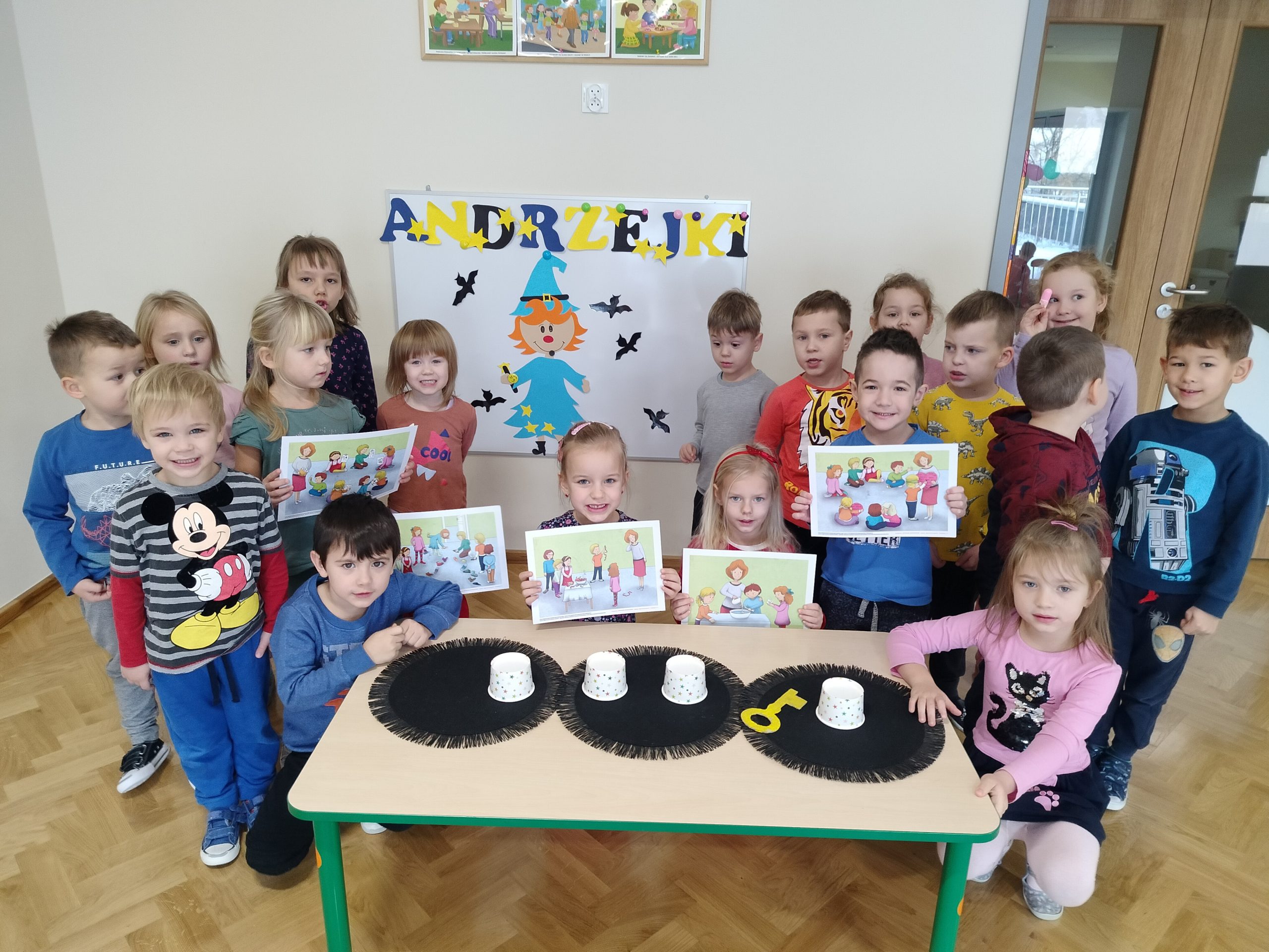 Dnia 30 listopada dzieci z grupy IV „Liski” uczestniczyły w zabawie andrzejkowej. Celem spotkania było zapoznanie dzieci ze zwyczajami związanymi z tradycją andrzejek. Przedszkolaki uczestniczyły w wielu zabawach, w których z przymrużeniem oka poznawały swoją przyszłość, wybrany zawód, poznały znaczenie różnych kolorów. Rzucały pieniążkami do miski z wodą, aby spełniły się najskrytsze marzenia. Wszystkie wróżby przeplatane były pląsami i tańcami przy muzyce. Dzieci aktywnie i z radością uczestniczyły w proponowanych zabawach.