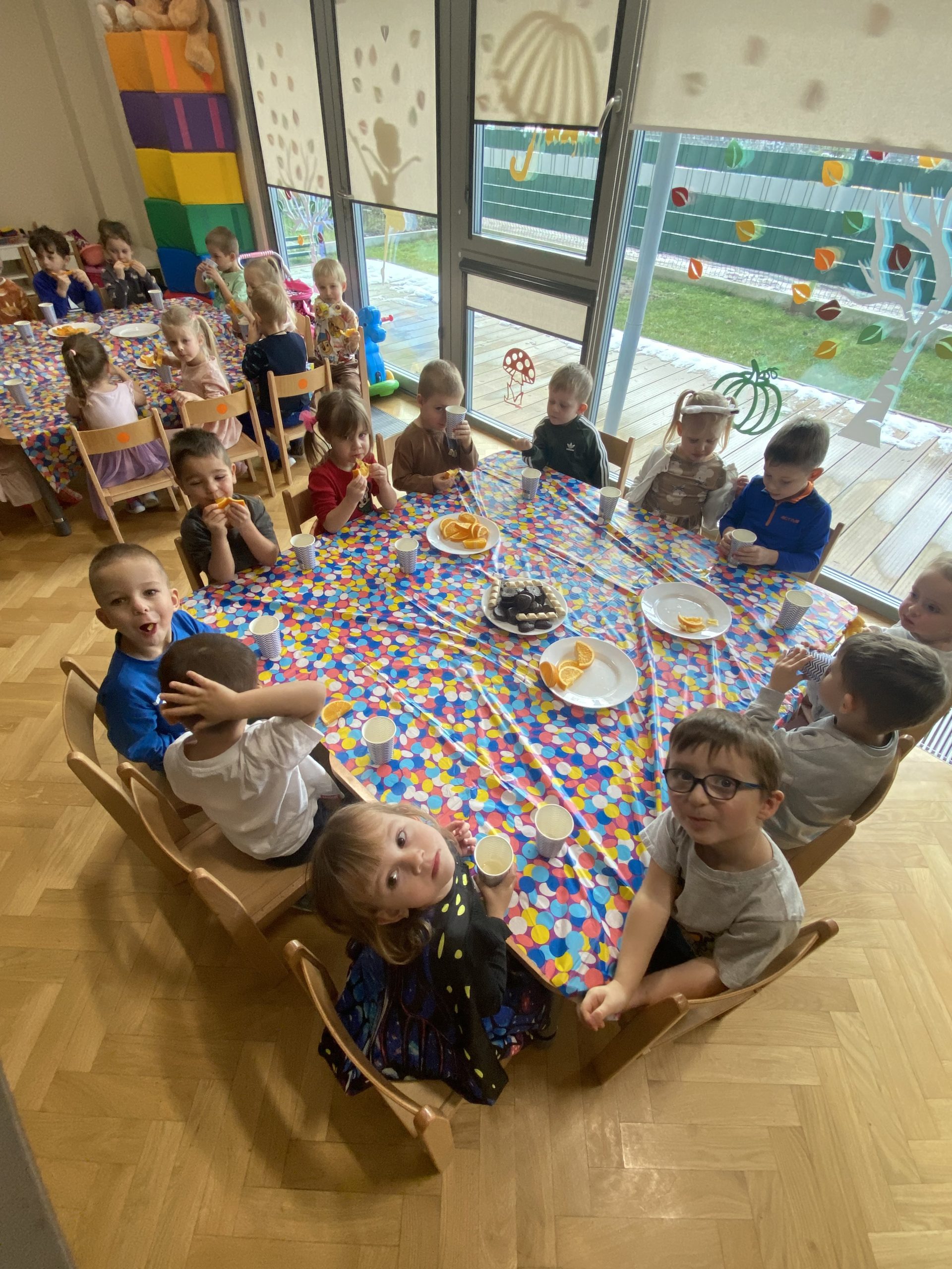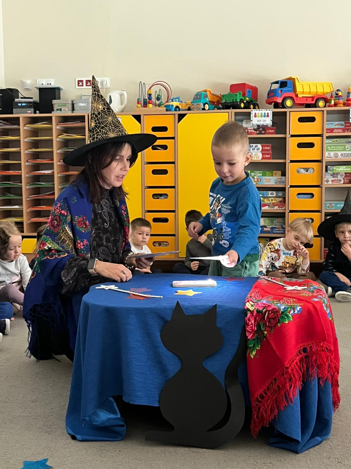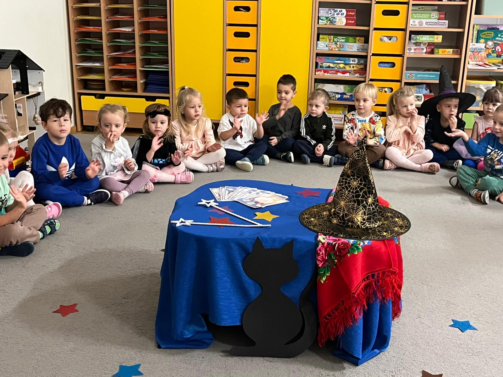 w licznych wróżbach i zabawach. Przedszkolaki z dużym zainteresowaniem uczestniczyły w takich wróżbach jak: lanie wosku, losowanie magicznych karteczek, poznawanie przyszłych zawodów. Każda wróżba wywoływała wiele emocji, śmiechu i radości. Nie zabrakło także tańców przy muzyce oraz wspólnych zabaw integracyjnych.