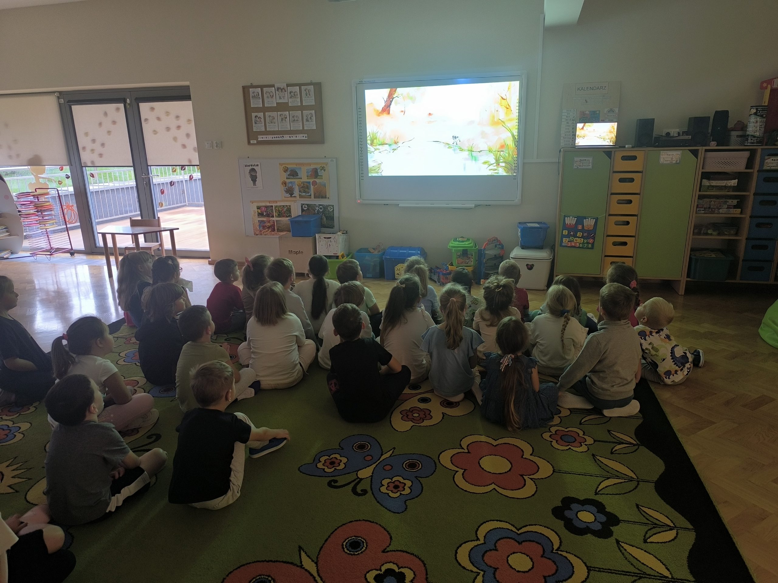 dalszych działań. Po seansie przedszkolaki wykonywały przygotowane zadania, podczas