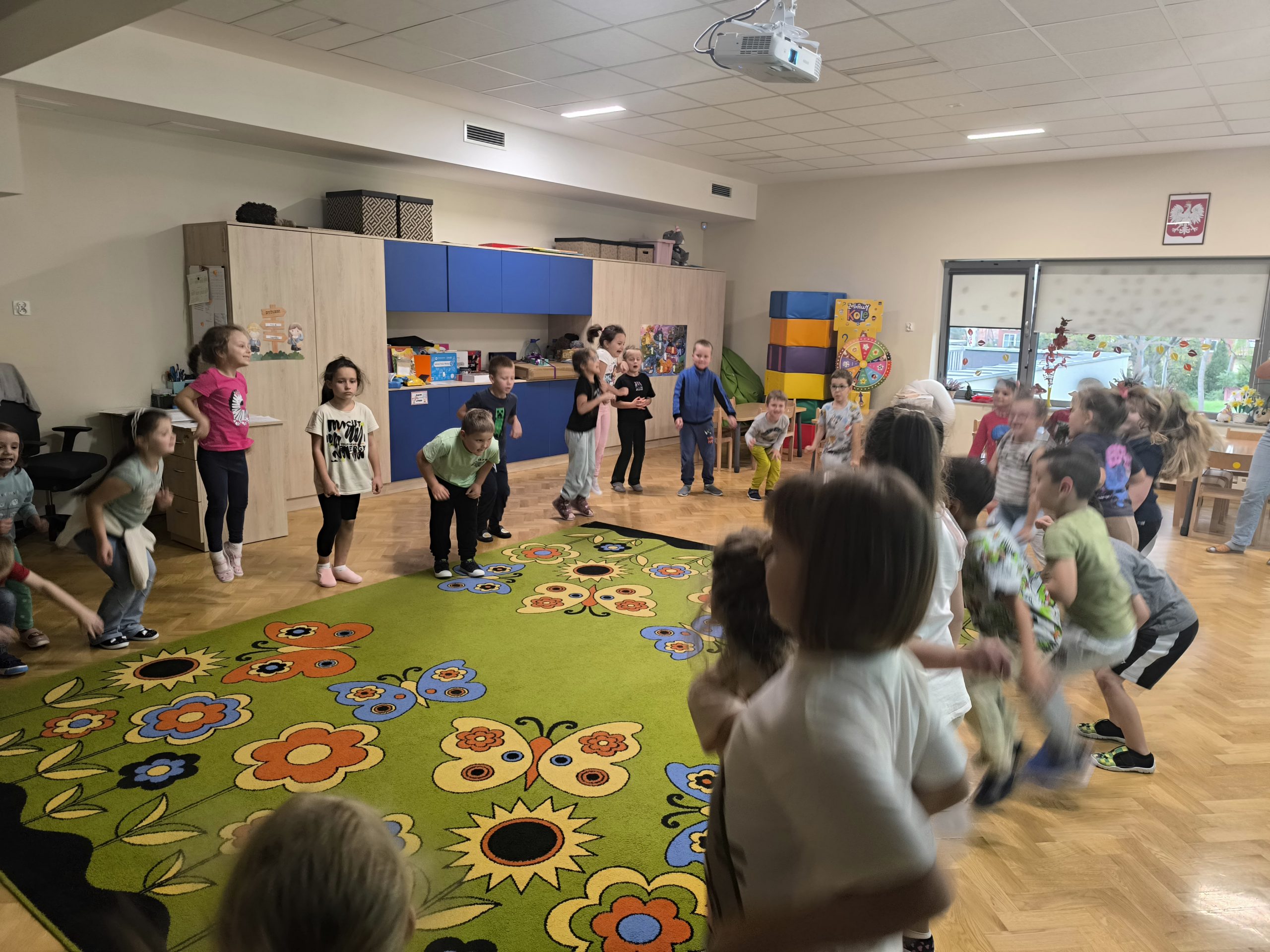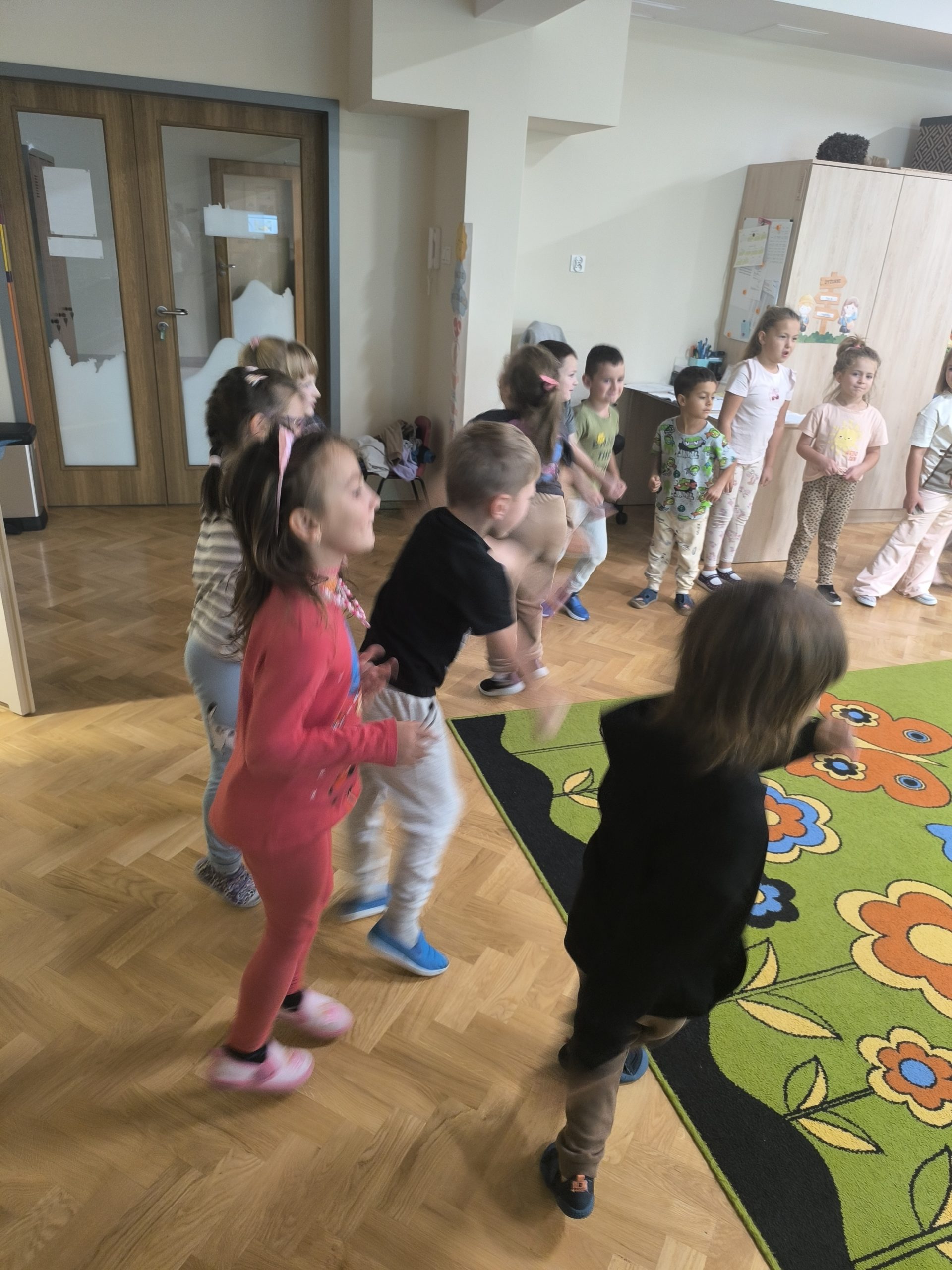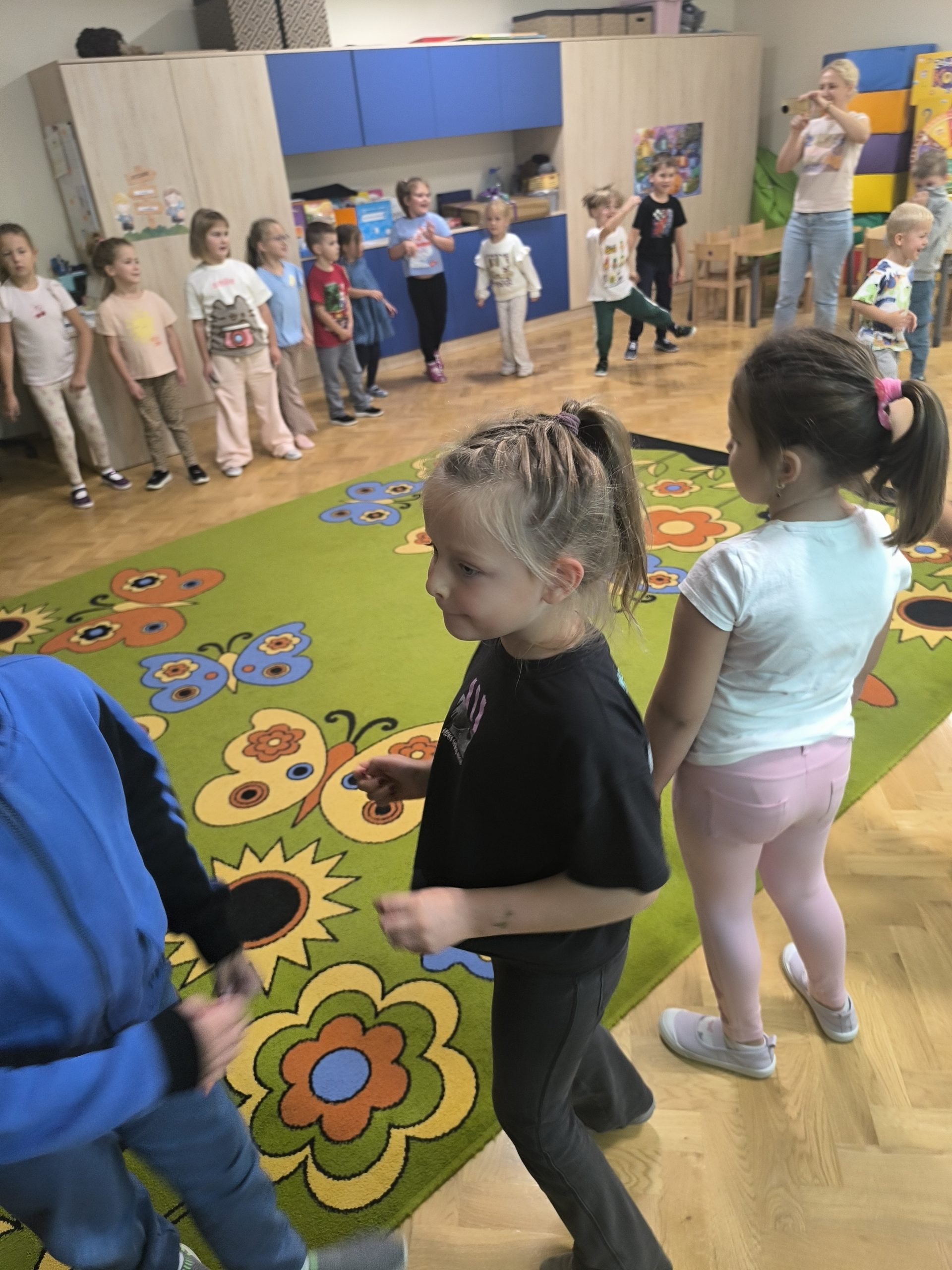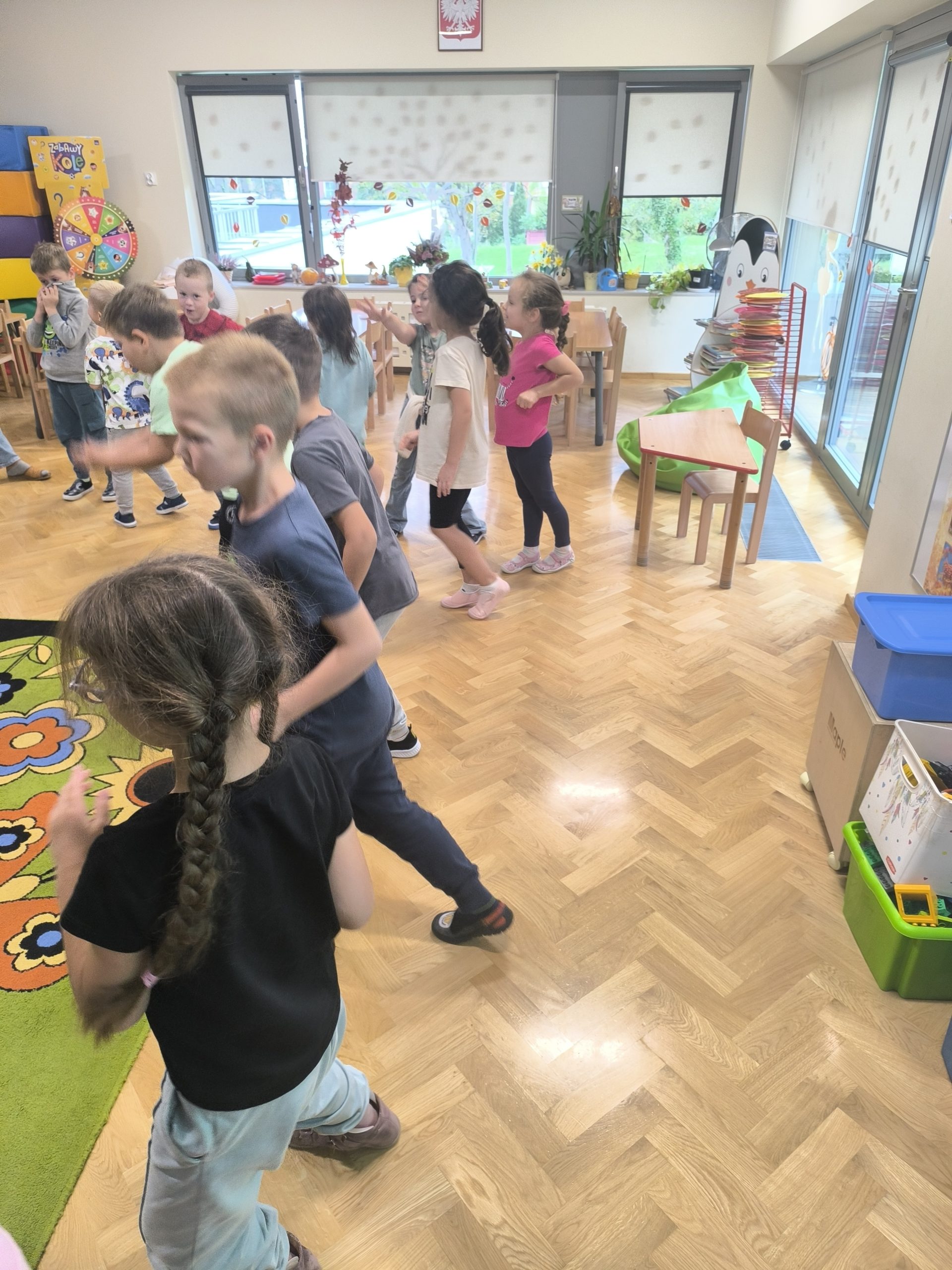 Nie zabrakło również zabaw ruchowych, które wprowadziły mnóstwo radości i śmiechu,