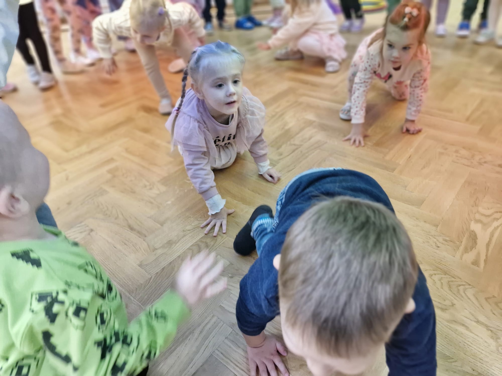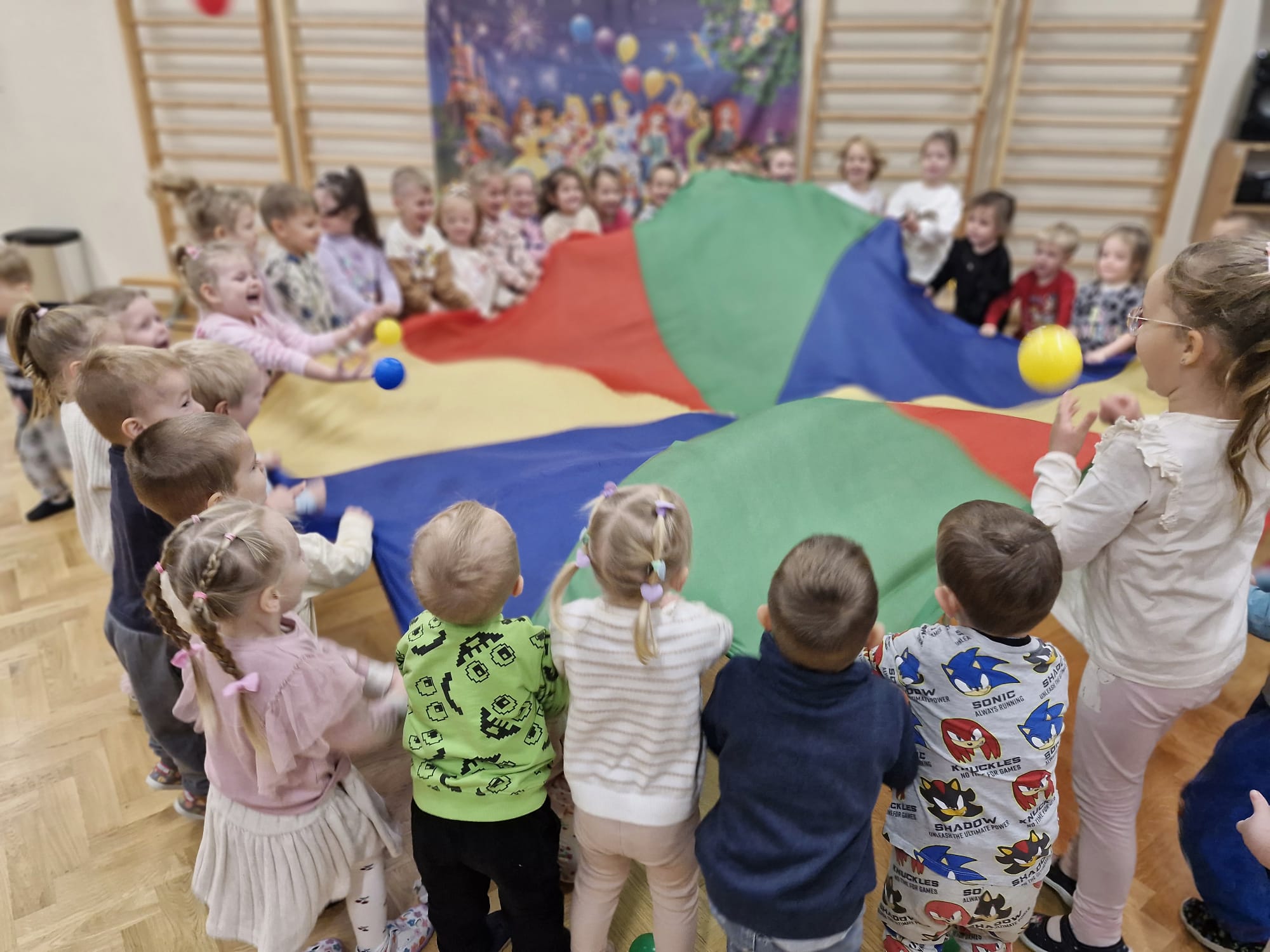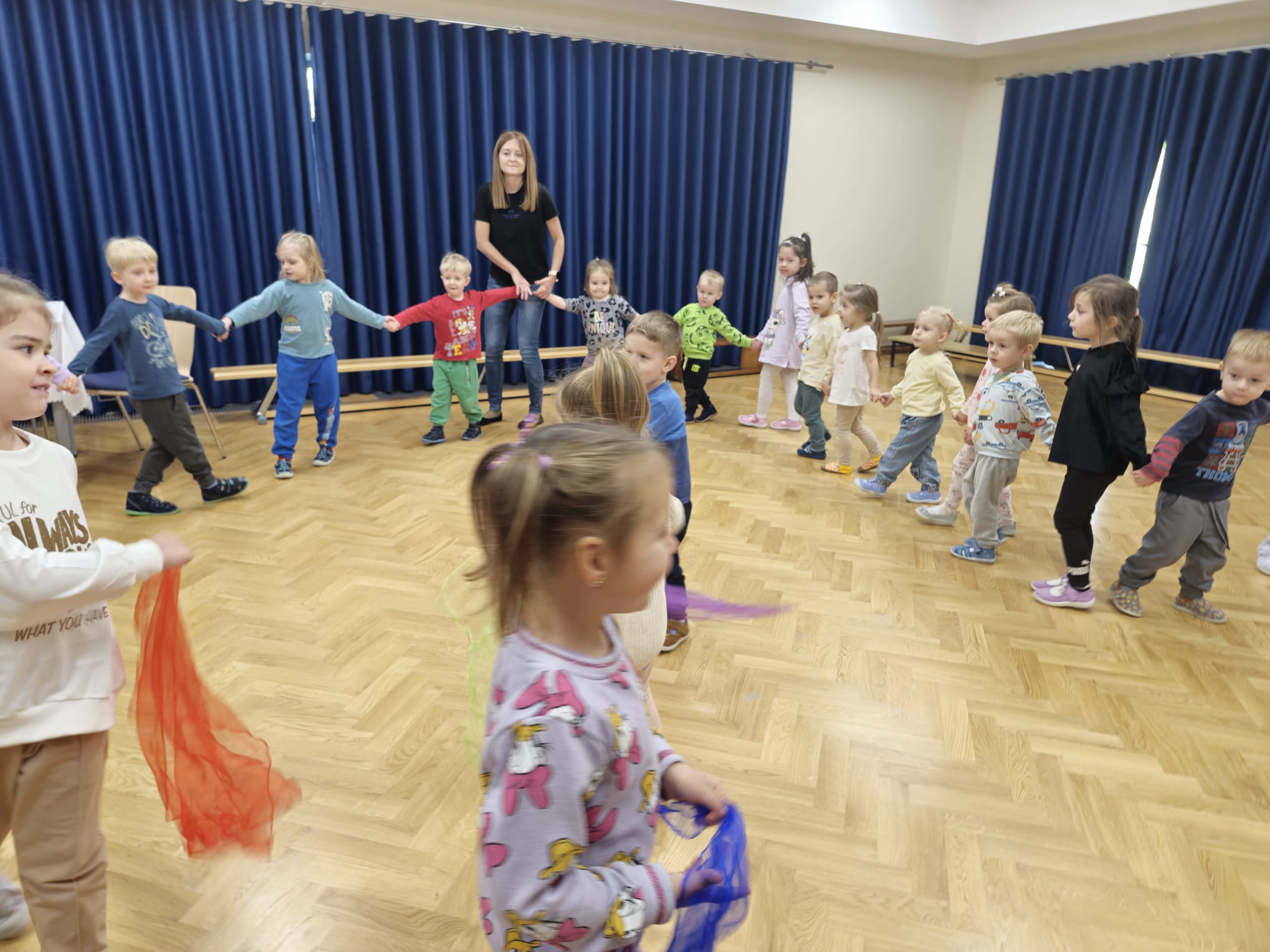 Z tej okazji dzieci z grup: „Jeżyków” i „Wiewiórek” wyruszyły w podróż do krainy bajek. Był to dzień pełen kolorów, uśmiechu i wspaniałej zabawy! Przedszkolaki uczestniczyły w licznych konkursach, zabawach ruchowych, quizach oraz tańcach przy muzyce. Dzieci rozpoznawały bajki po przeczytanym fragmencie, rozwiązywały zagadki dotyczące postaci z ulubionych książek, trafnie segregowały bajkowe rekwizyty oraz układały cienie i puzzle z bohaterami znanych opowieści. Utożsamiając się z bajkowymi bohaterami, dzieci przeżywały ich przygody, smutki i radości. Na koniec przedszkolaki z zapałem kolorowały wielkie ilustracje bajkowych postaci – piękną księżniczkę i groźnego smoka, rozwijając przy tym swoją kreatywność i zdolności plastyczne.