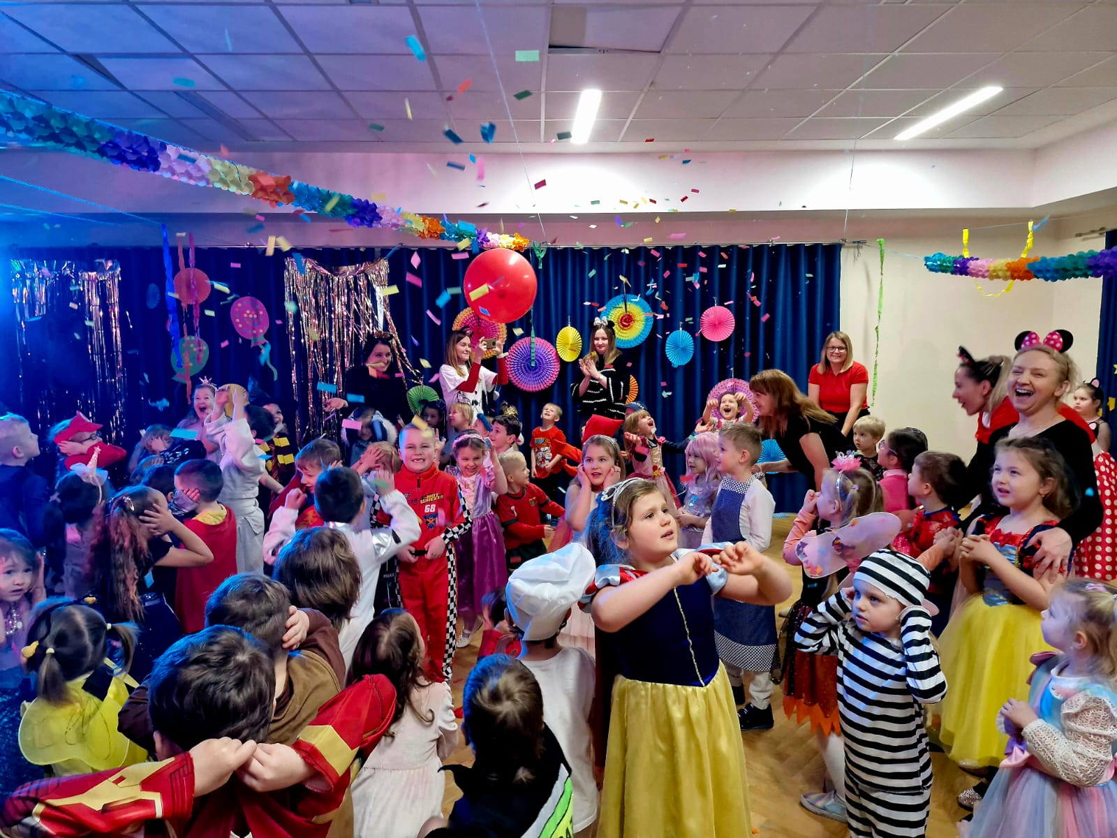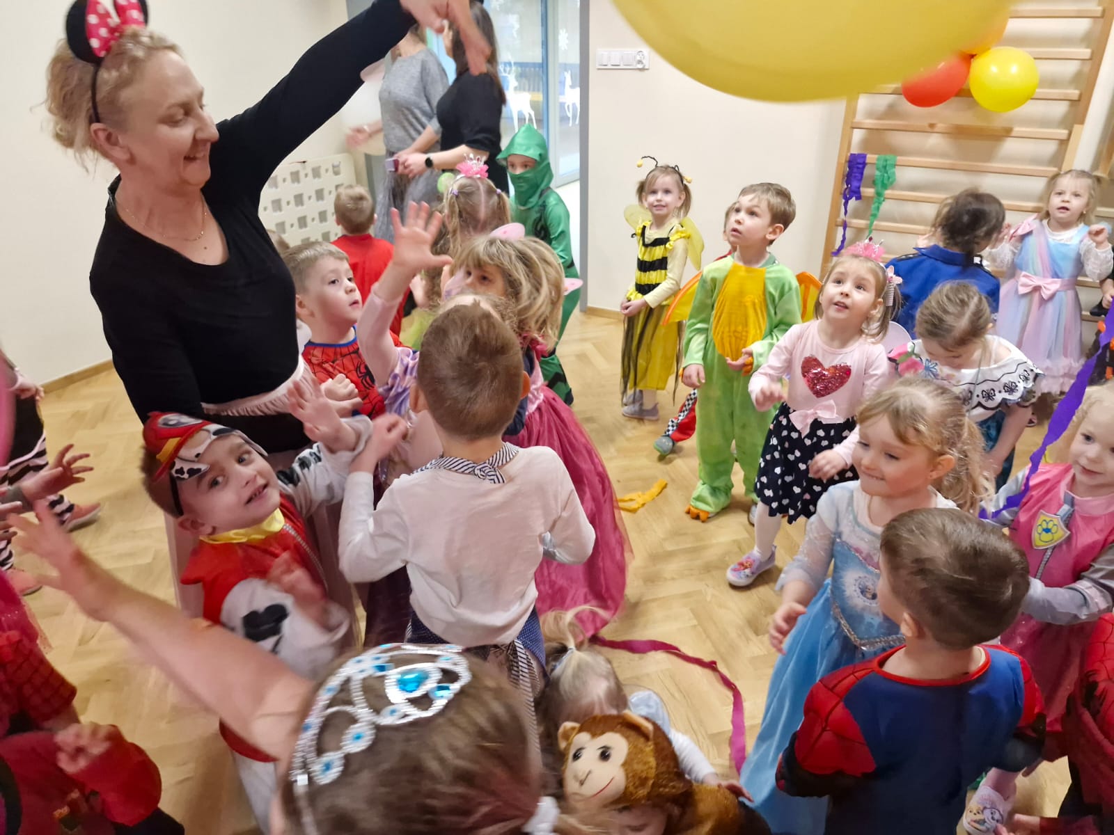 25 lutego w naszym przedszkolu odbył się wspaniały bal karnawałowy. Dzieci przybyły w pięknych, kolorowych strojach – można było spotkać księżniczki, superbohaterów a nawet zwierzątka i wróżki! Sala była udekorowana balonami i girlandami, co stworzyło radosny, bajkowy nastrój. Wszyscy wspólnie tańczyli do znanych dziecięcych przebojów oraz układów tanecznych. W przerwie czekał na nich zasponsorowany przez Radę Rodziców poczęstunek – pyszne ciasteczka, owoce oraz napoje.