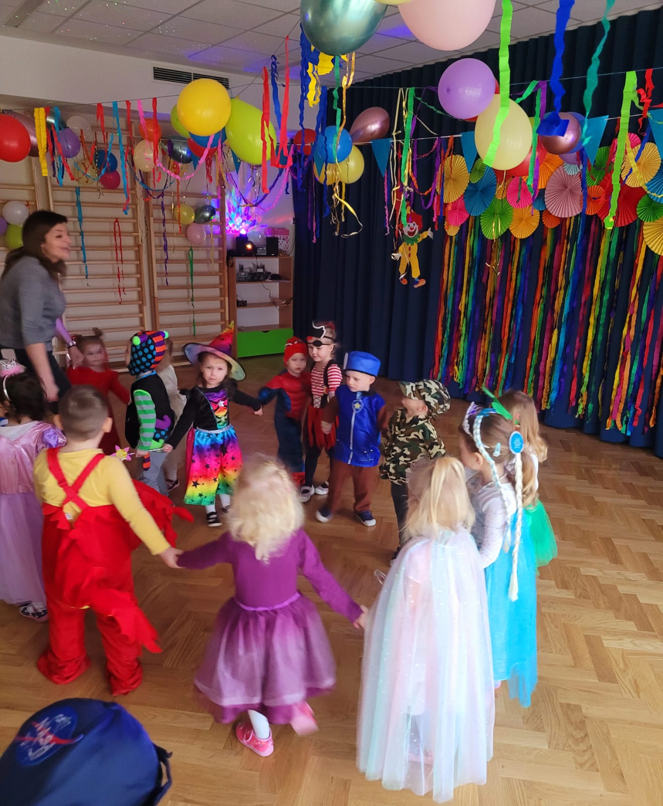 Karnawał to czas zabaw i balów, także dla najmłodszych. Kolorowe stroje, bajeczny wystrój i skoczna muzyka – w takiej atmosferze bawiły się „Misie” 7 lutego 2024 roku podczas balu karnawałowego. Przedszkolaki z dumą i radością prezentowały oryginalne przebrania. „Misie” zamieniły się w księżniczki, wróżki, piratów czy policjantów, pojawiły się również postacie z ulubionych bajek. Wystrój sali balowej wprowadził w radosny nastrój oraz zachęcał wszystkich do wesołej zabawy. Przedszkolaki świetnie bawiły się w rytm muzyki porywającej do tańca oraz brały udział w najróżniejszych konkursach. Kiedy czas zabawy dobiegł końca dzieci z żalem opuszczały balową salę. Cieszymy się, że ten dzień i wspólna zabawa przyniosły wiele przyjemności naszym przedszkolakom! Wszystkim zabawom towarzyszyła radość, śmiech i spontaniczna aktywność dzieci, a cały bal karnawałowy przebiegł w miłej i serdecznej atmosferze oraz dostarczył dzieciom niezapomnianych wrażeń. Dziękujemy wszystkim Rodzicom za przygotowanie strojów, za kreatywność i pomysłowość!