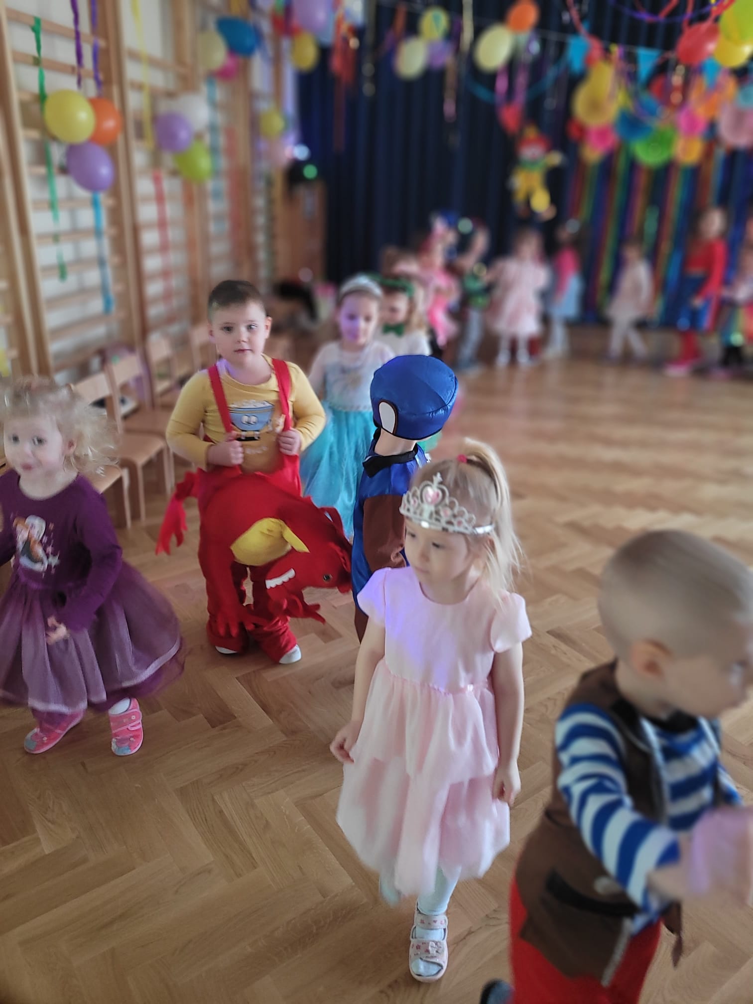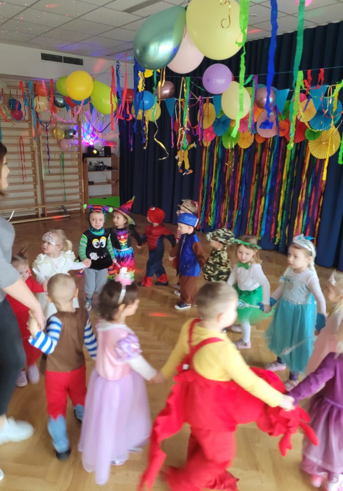 Bal karnawałowy dla przedszkolaków to dzień niezwykły, wyczekiwany. Jest atrakcją bardzo lubianą przez dzieci, dostarczającą im wielu przeżyć i radości. Tak też było u nas. Otóż 8 lutego „Jeżyki” spotkały się wraz z grupą II i III na wspólnym balu karnawałowym na sali gimnastycznej. Zabawom i tańcom nie było końca, a w przerwie dzieci mogły skosztować smakołyków. Wspólna zabawa przyniosła wiele radości naszym wychowankom, a to było głównym celem tego balu!