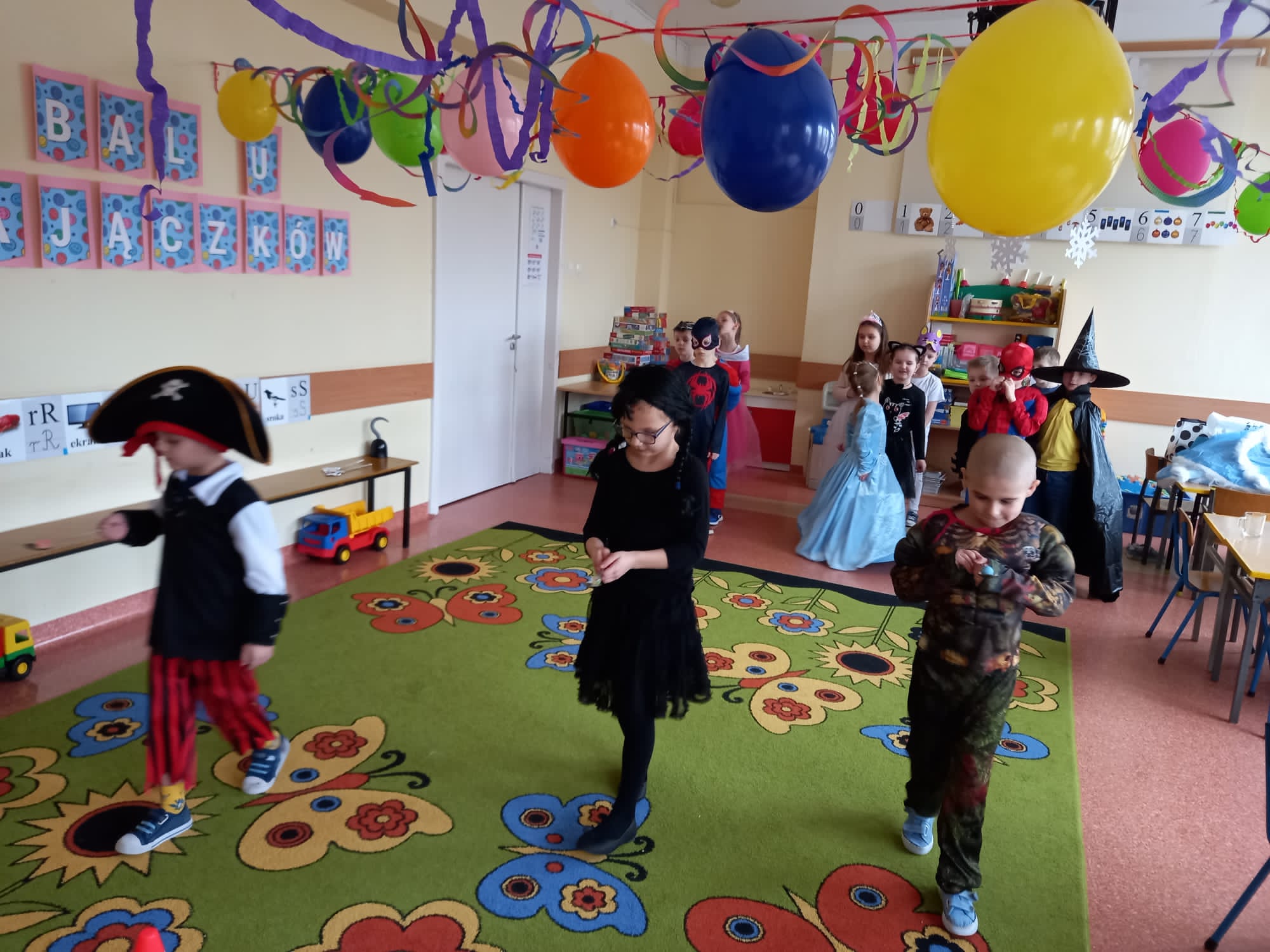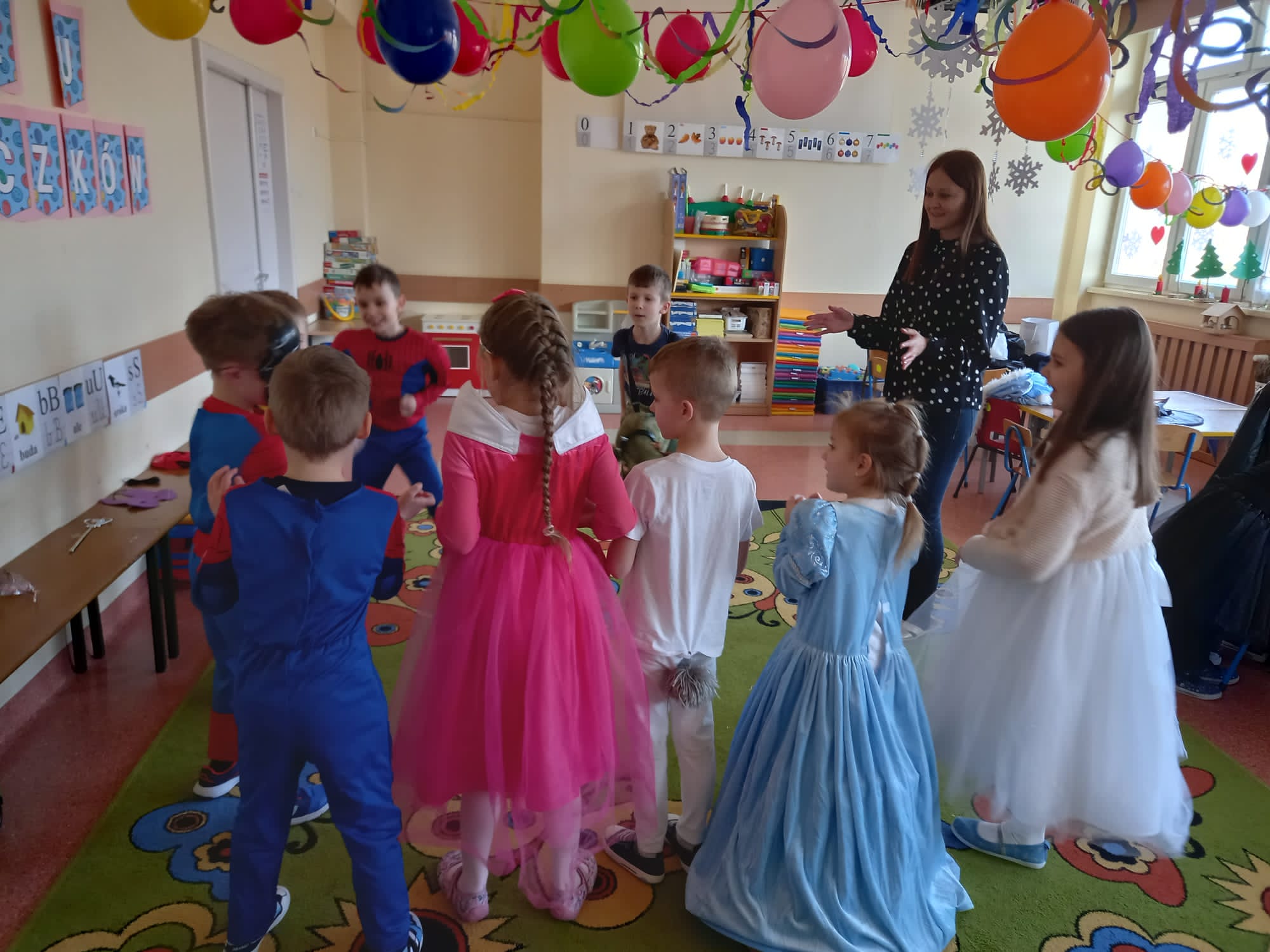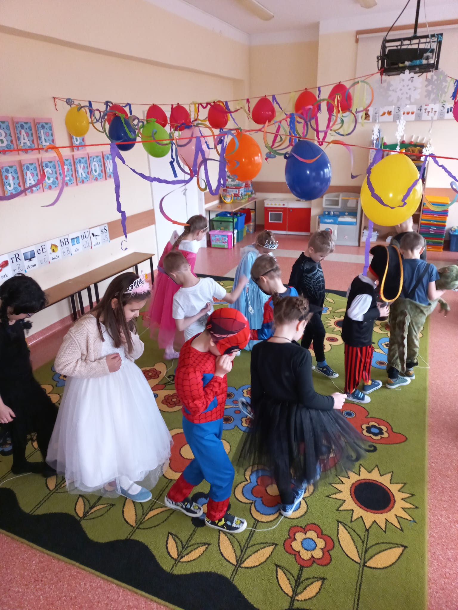 Karnawał to miła tradycja przepełniona muzyką i zabawą, gdzie ważnym elementem tego okresu są bale karnawałowe. Bal karnawałowy dla przedszkolaków to dzień niezwykły, często wyczekiwany przez wiele tygodni. Jest atrakcją bardzo lubianą przez dzieci, dostarczającą im wielu przeżyć i radości. Tak też było u nas dnia 15 lutego 2023 roku. Tego dnia już od rana w naszej grupie pojawiały się kolorowe postacie. Można było spotkać wróżki, księżniczki, piratów, Spider-Manów, smoka, zajączka, Batmana …nie sposób zliczyć i wymienić tych wszystkich postaci. Rozpoznać dzieci było bardzo trudno. Przedszkolaki z dumą prezentowały swoje bajeczne stroje, w otoczeniu niecodziennej dekoracji. Z wielką ochotą uczestniczyły we wspólnych zabawach, konkursach, a skoczna i rytmiczna muzyka zachęcała naszych Milusińskich do tańca. To był wspaniały karnawałowy bal, a niezapomniane wrażenia na długo pozostaną w pamięci naszych Zajączków. Dzieci świetnie się bawiły uczestnicząc wspólnie ze swoimi paniami w zabawach. Na sali podczas pląsów robiło się kolorowo, wszyscy bawili się wesoło, uśmiech nie znikał z twarzy mimo chwilowego zmęczenia. Dziękujemy Rodzicom za zaangażowanie w przygotowanie strojów karnawałowych.