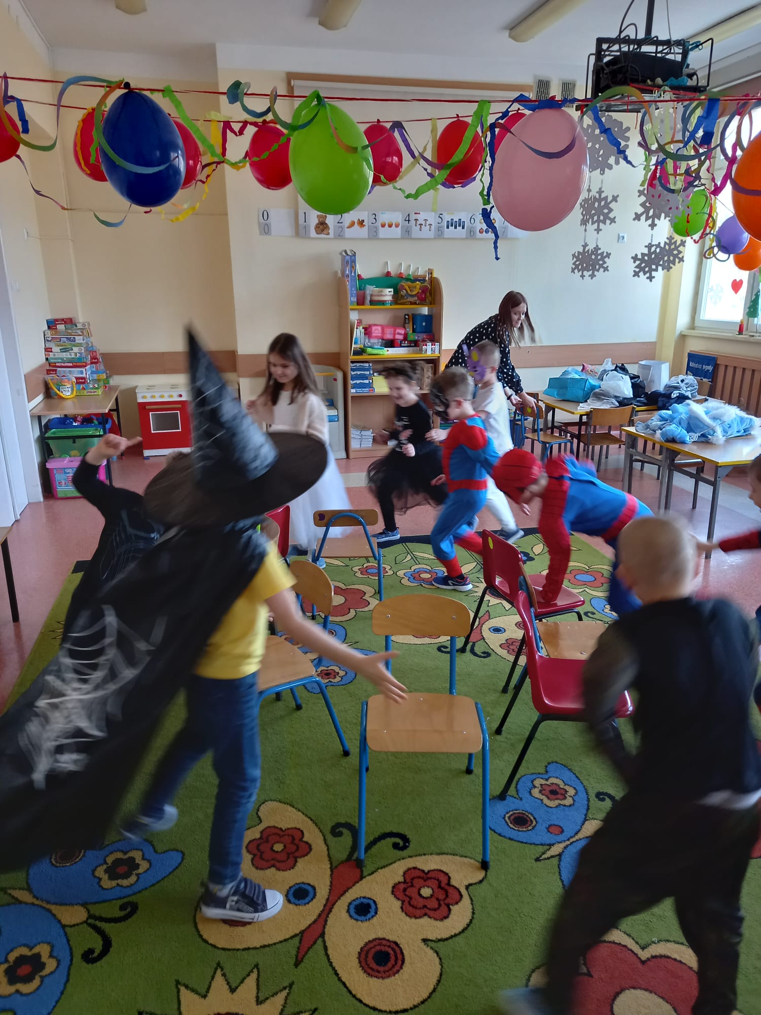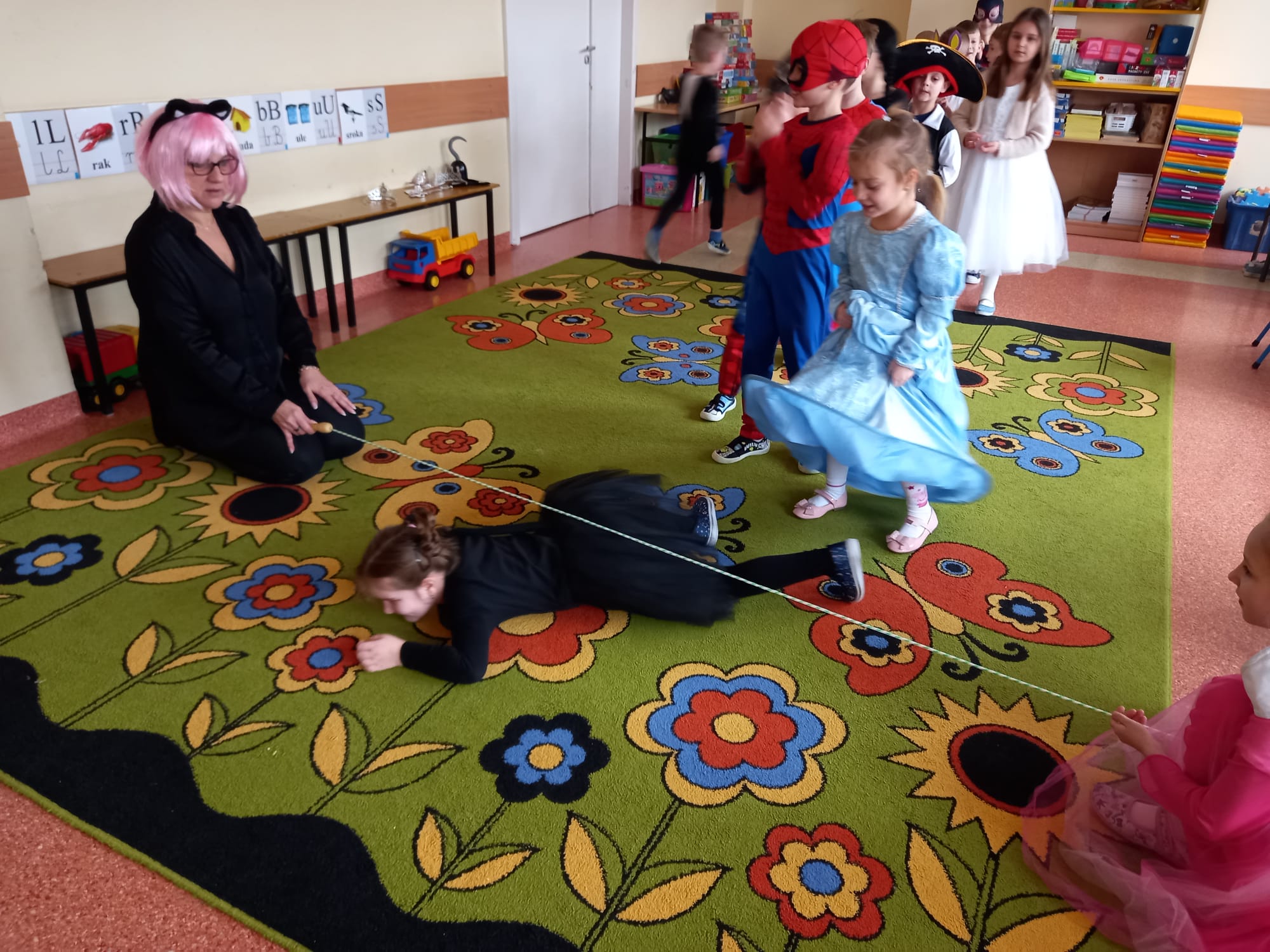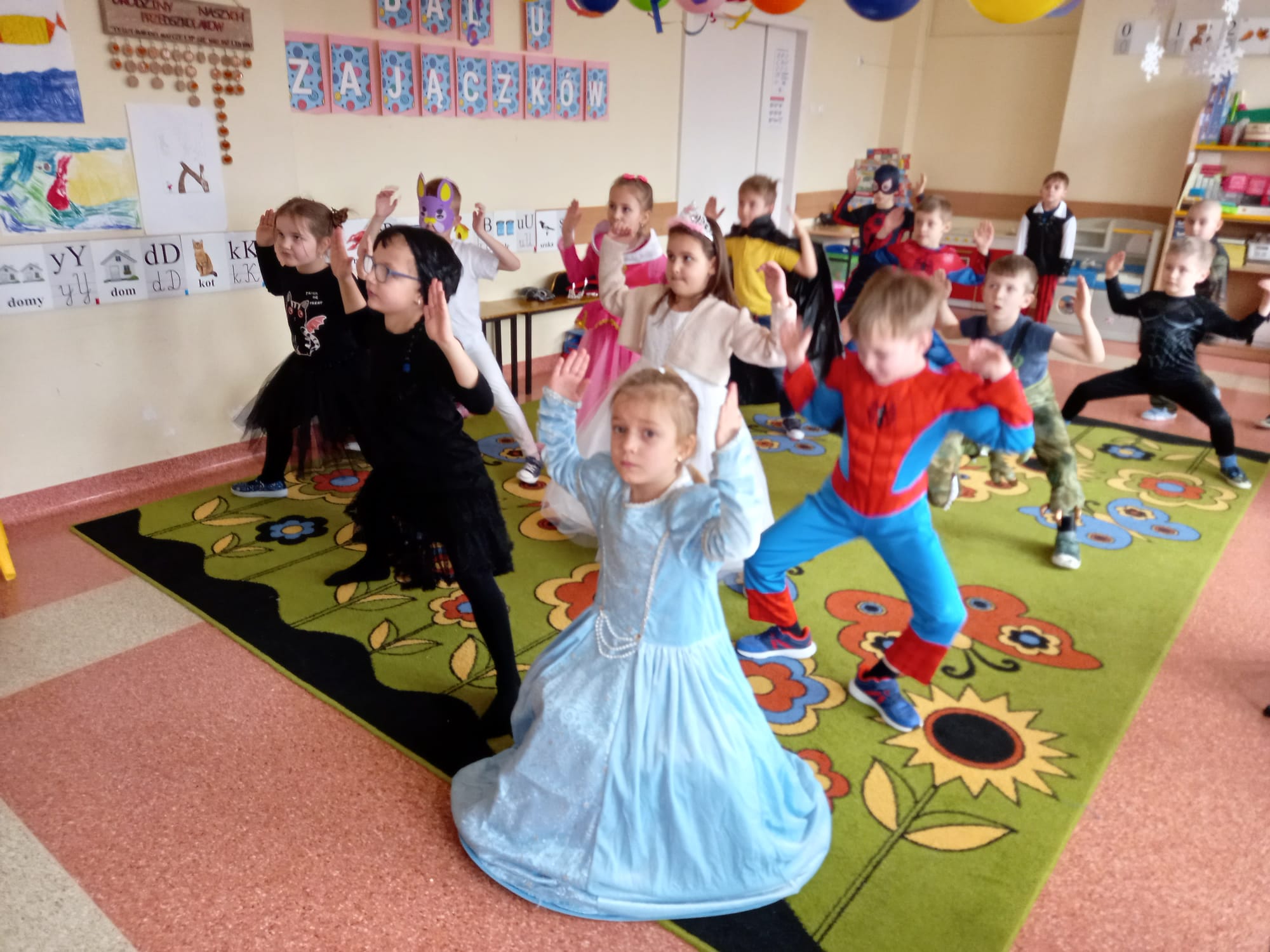 Karnawał to miła tradycja przepełniona muzyką i zabawą, gdzie ważnym elementem tego okresu są bale karnawałowe. Bal karnawałowy dla przedszkolaków to dzień niezwykły, często wyczekiwany przez wiele tygodni. Jest atrakcją bardzo lubianą przez dzieci, dostarczającą im wielu przeżyć i radości. Tak też było u nas dnia 15 lutego 2023 roku. Tego dnia już od rana w naszej grupie pojawiały się kolorowe postacie. Można było spotkać wróżki, księżniczki, piratów, Spider-Manów, smoka, zajączka, Batmana …nie sposób zliczyć i wymienić tych wszystkich postaci. Rozpoznać dzieci było bardzo trudno. Przedszkolaki z dumą prezentowały swoje bajeczne stroje, w otoczeniu niecodziennej dekoracji. Z wielką ochotą uczestniczyły we wspólnych zabawach, konkursach, a skoczna i rytmiczna muzyka zachęcała naszych Milusińskich do tańca. To był wspaniały karnawałowy bal, a niezapomniane wrażenia na długo pozostaną w pamięci naszych Zajączków. Dzieci świetnie się bawiły uczestnicząc wspólnie ze swoimi paniami w zabawach. Na sali podczas pląsów robiło się kolorowo, wszyscy bawili się wesoło, uśmiech nie znikał z twarzy mimo chwilowego zmęczenia. Dziękujemy Rodzicom za zaangażowanie w przygotowanie strojów karnawałowych.