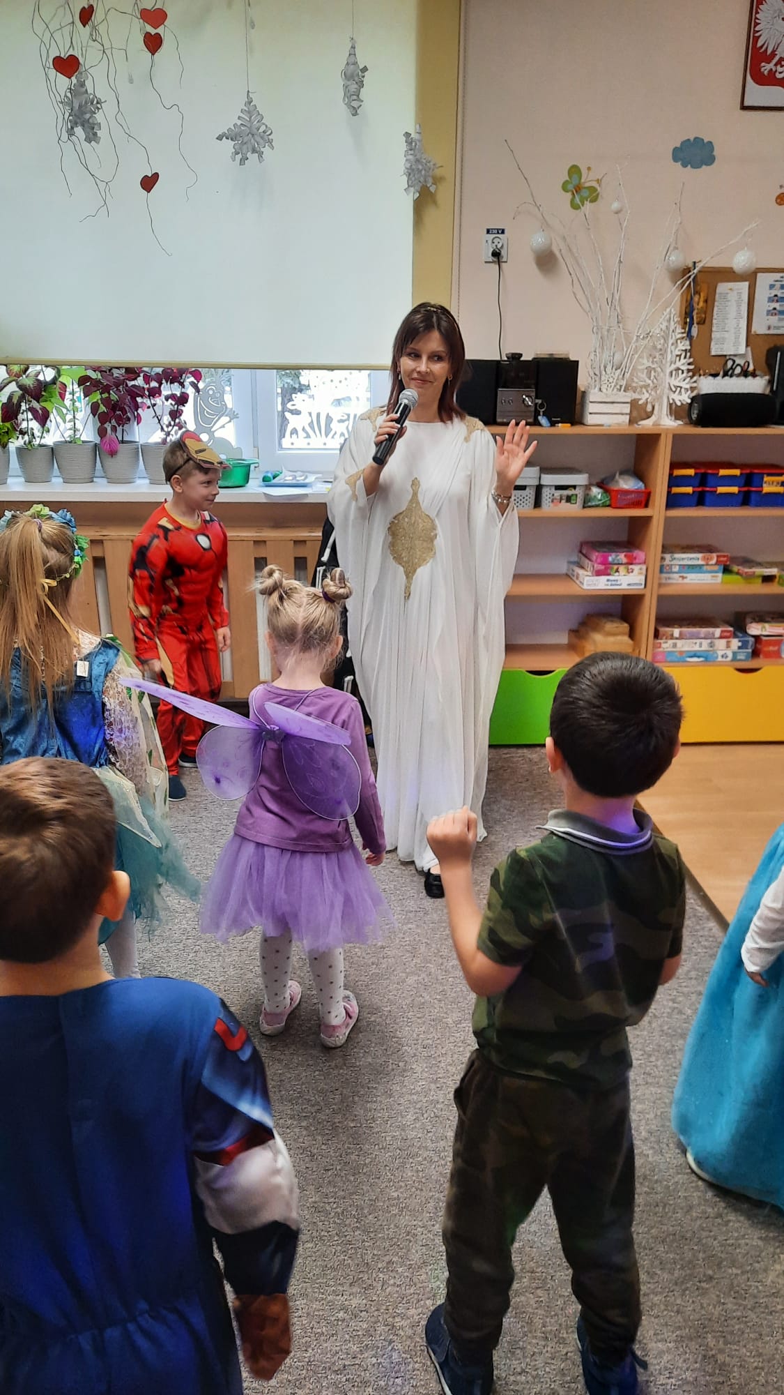 Zabawa karnawałowa w naszej grupie była bardzo ekscytującym wydarzeniem. Wszyscy mieli w tym dniu ciekawe przebrania. Nasze dzieci zmieniły się w postacie z bajek, kreskówek i superbohaterów. Z radością wkroczyliśmy w zaczarowany świat zabaw, gdzie każdy mógł zaprezentować swój strój, zatańczyć z najlepszym kolegą i całą grupą. Były konkursy, zabawy taneczne, a w przerwie zdrowy poczęstunek i coś słodkiego do domu. Wszystkie dzieci były w tym dniu uśmiechnięte i szczęśliwe. Do zobaczenia na następnej zabawie za rok!