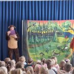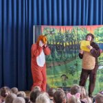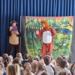 16 lutego 2025 r. nasze przedszkole odwiedzili aktorzy z Teatru „Horyzont” z Krakowa, prezentując dzieciom wyjątkowy spektakl pt.: „Brzydal. O Misiu Brzuszatku”.Na leśnej polanie sympatyczny miś Brzuszatek opowiadał dzieciom o swojej pasji do czytania książek oraz o tym, jak wiele można się z nich nauczyć. Całą rozmowę podsłuchiwał lis Gagatek, który początkowo wyśmiewał misiowy brzuszek oraz jego chęć poznawania świata i zdobywania wiedzy. Wspólna przygoda bohaterów odmieniła liska, który poznał wartość prawdziwej przyjaźni i obiecał się poprawić. Dzieci aktywnie uczestniczyły w przedstawieniu i z dużym