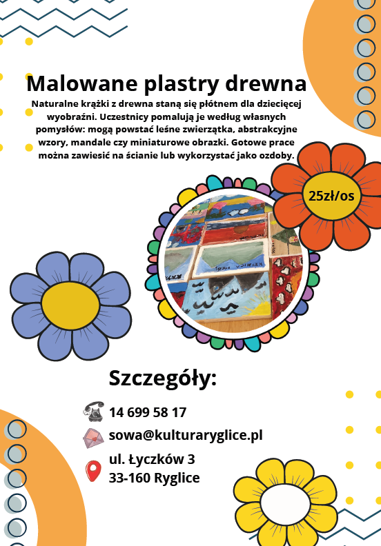 Centrum Kultury w Ryglicach zaprasza dzieci i młodzież na kreatywne warsztaty plastyczne i artystyczne. Podczas zajęć uczestnicy rozwijają wyobraźnię, tworzą własne prace i poznają różne techniki plastyczne w przyjaznej, twórczej atmosferze.