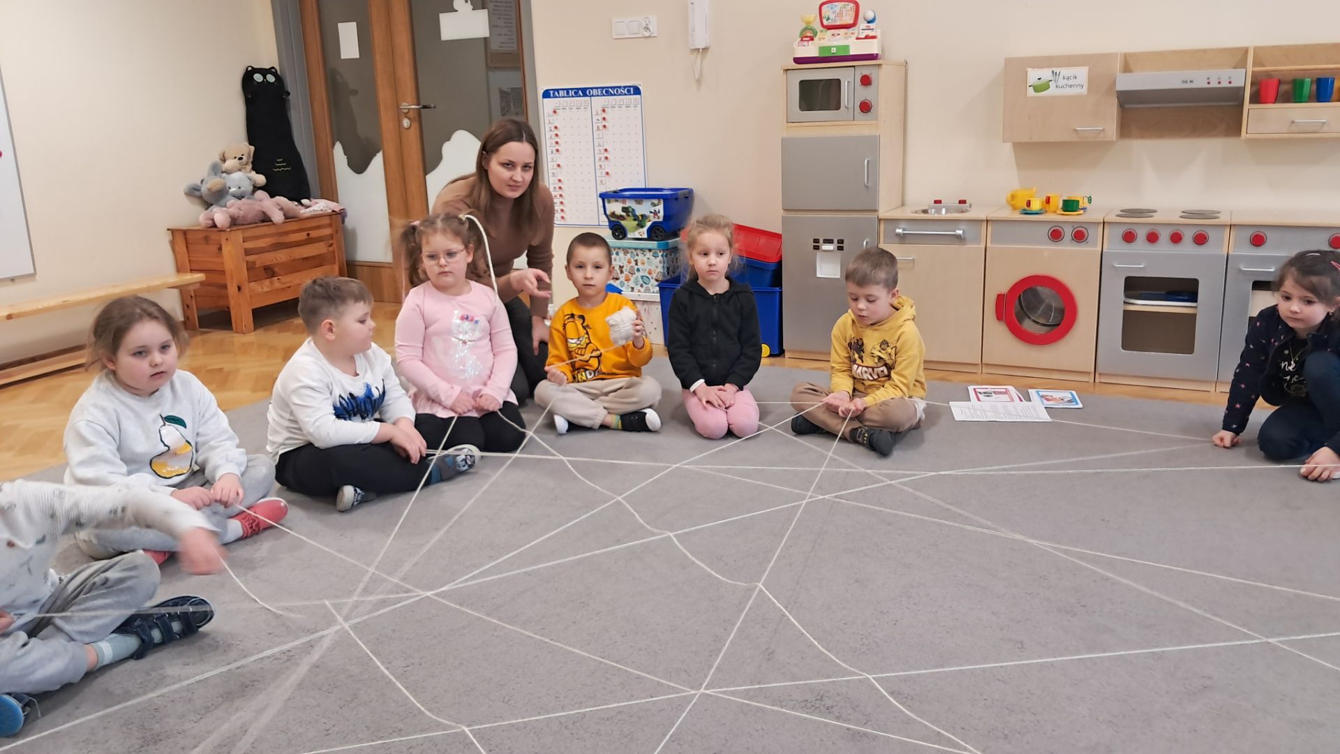 W ramach Dnia Bezpiecznego Internetu 17 lutego w grupie IV odbyły się zajęcia z psychologiem pt. ,,Poznajemy Internet – Co to jest Internet i do czego służy. Zagrożenia w sieci”. Podczas zajęć dzieci zapoznały się z pojęciem Internetu oraz zagrożeniami związanymi z używaniem urządzeń ekranowych. Zostało omówione do czego można wykorzystywać urządzenia ekranowe. Dzieci wspólnie z psychologiem stworzyły z włóczki sieć Internetową, a na koniec zajęć świetnie bawiły się grając w „Pająk i muchy”.