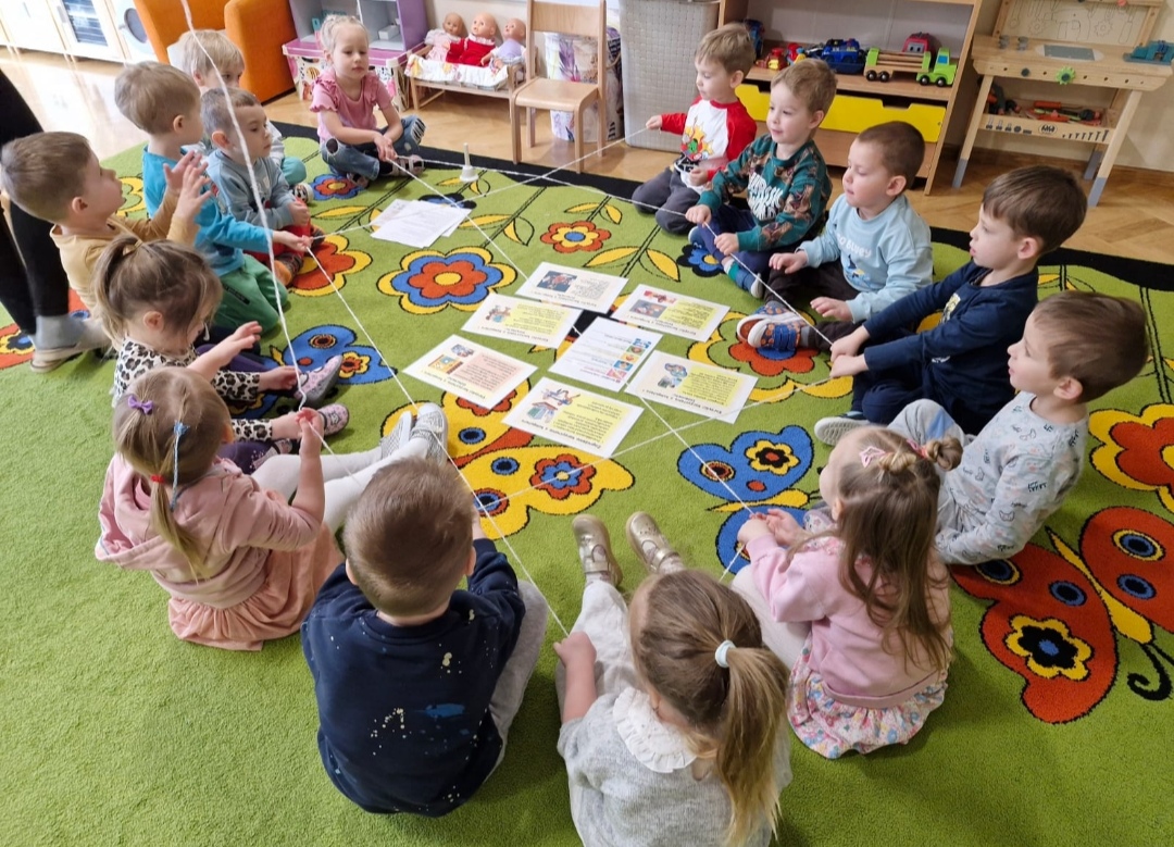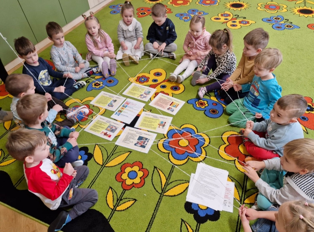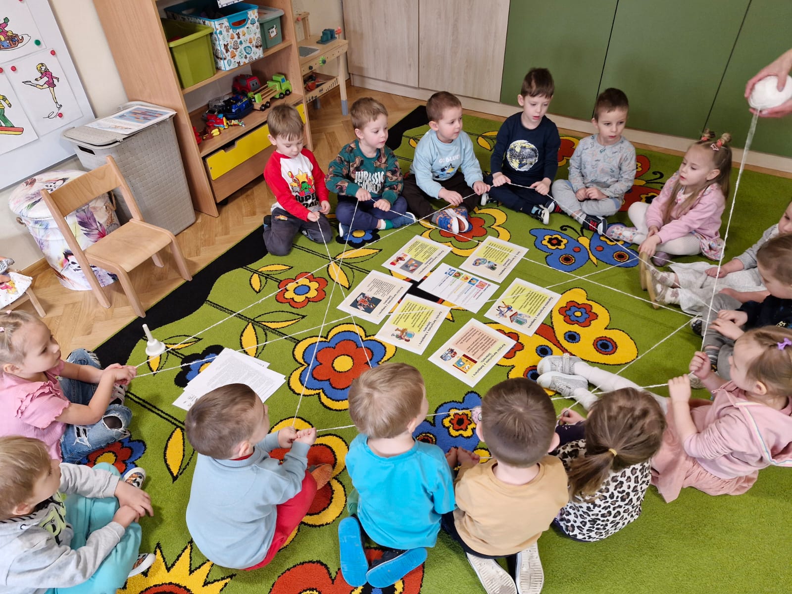 10 lutego Jeżyki i Zajączki obchodziły Dzień Bezpiecznego Internetu. Aby lepiej zrozumieć, czym jest Internet, dzieci wspólnie stworzyły symboliczną „sieć internetową” przy użyciu kłębka wełny. Zabawa w obrazowy sposób pokazała dzieciom, jak połączone są ze sobą komputery i urządzenia na całym świecie. Przedszkolaki zapoznały się z zasadami dotyczącymi bezpiecznego korzystania z ekranów oraz odpowiedniego czasu spędzanego przed telewizorem, komputerem czy telefonem. Dowiedziały się, że z urządzeń elektronicznych należy korzystać z umiarem, zawsze za zgodą i pod opieką dorosłych, a także pamiętać o przerwach na ruch, zabawę i odpoczynek. Na zakończenie rozwiązały także quiz, w którym sprawdziły swoją wiedzę o bezpiecznym korzystaniu z ekranów.