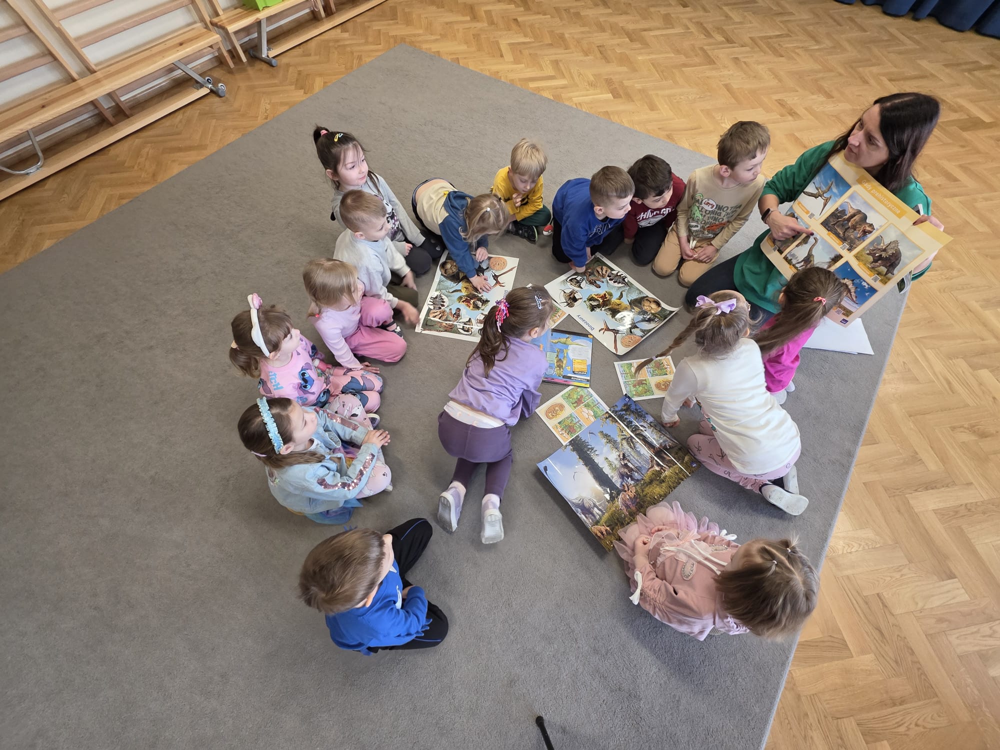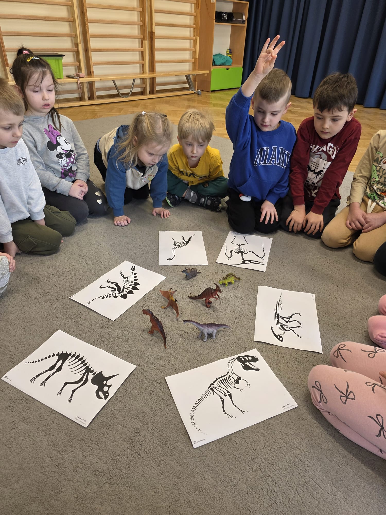 Dzieci dopasowywały szkielety dinozaurów, wraz z nauczycielem szukały informacji i ilustracji w książkach, zamieniały się w dinozaury podczas zabawy