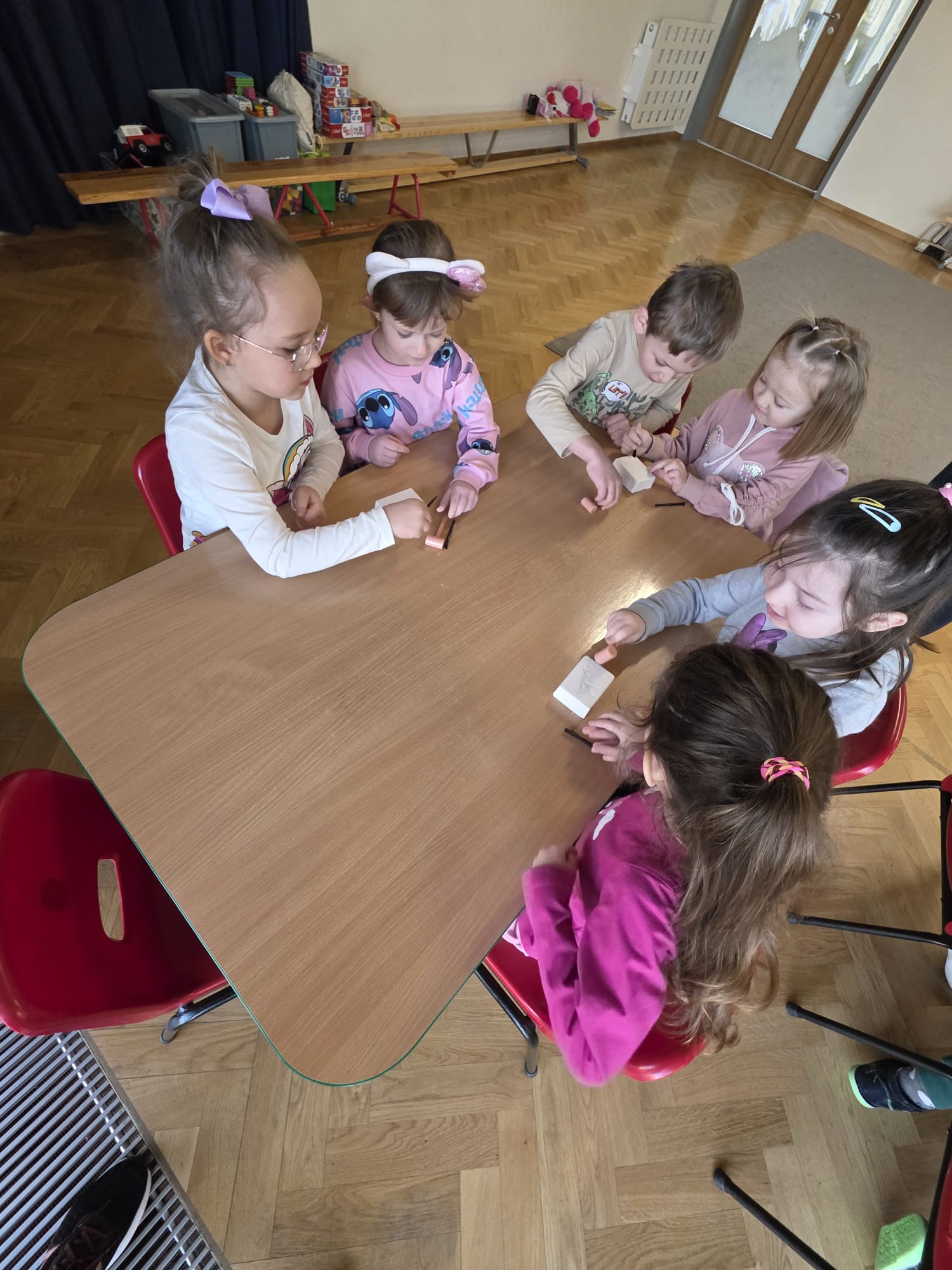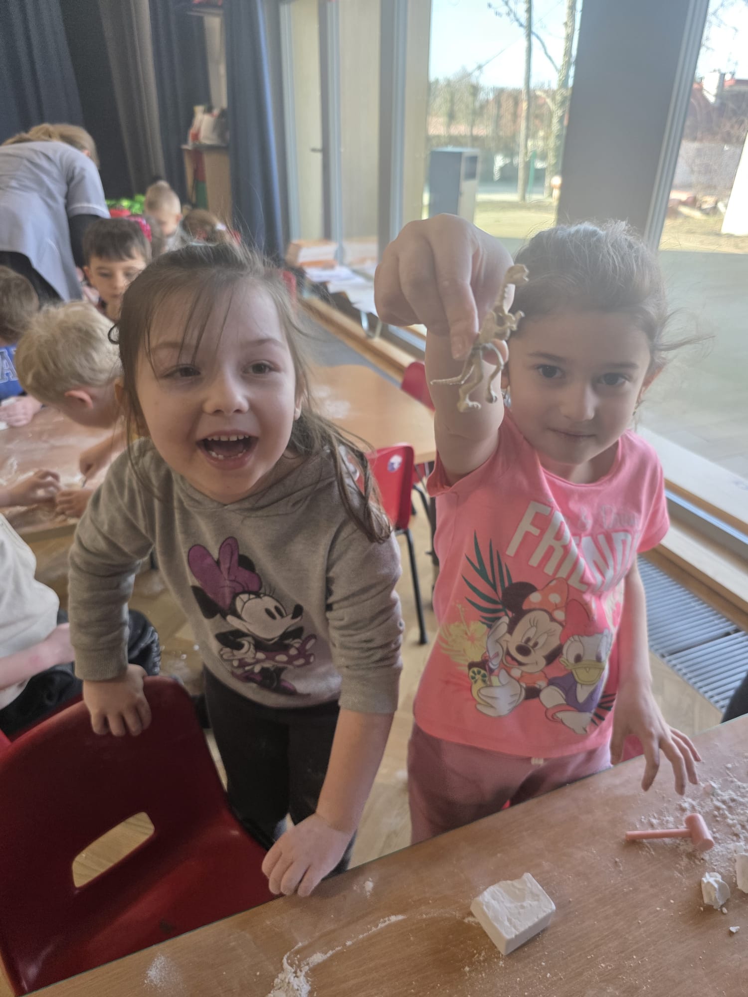 Największe emocje wzbudziły jednak wykopaliska – przedszkolaki wcieliły się w rolę prawdziwych paleontologów i z ogromnym zaangażowaniem odkrywały ukryte „skamieniałości”. To była dla dzieci wspaniała przygoda pełna nauki i zabawy.