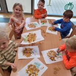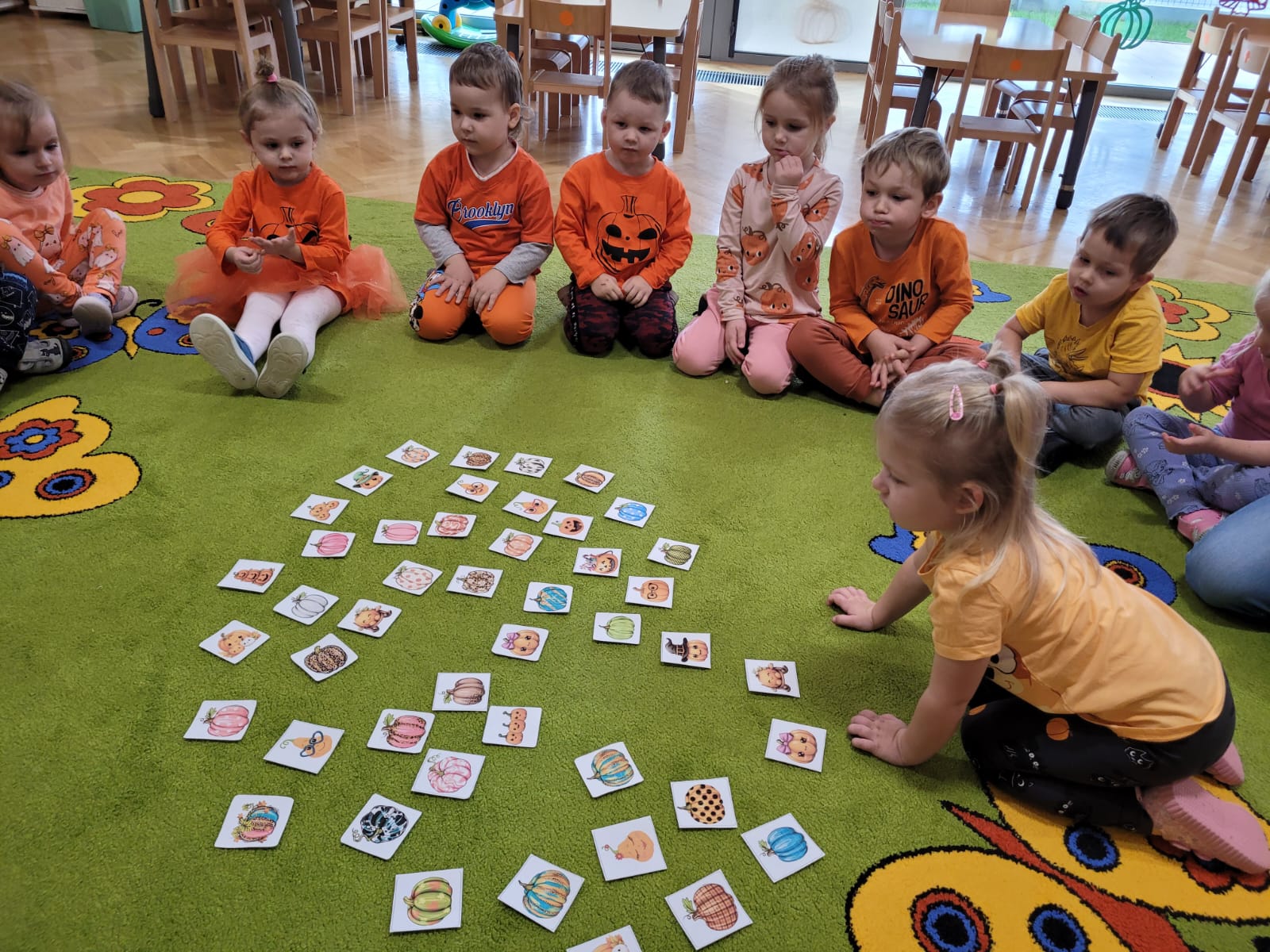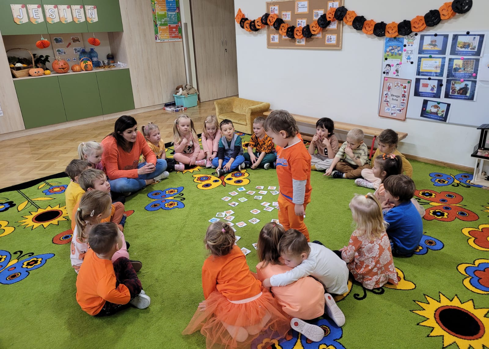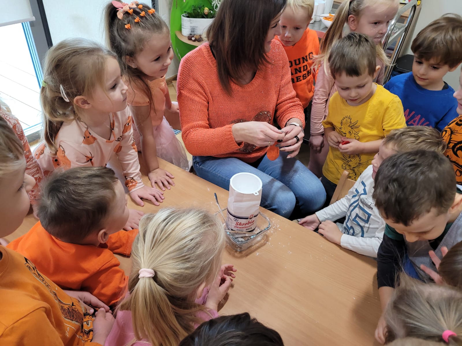 31.10. nasze przedszkolaki obchodziły Dzień Dyni. W tym ostatnim dniu października kolor pomarańczowy zdominował naszą przedszkolną przestrzeń. Dzieci miały okazję zobaczyć dynię od środka, poznały również jej wartości odżywcze oraz potrawy, które można z niej przygotować. Wspólnie z Paniami wykonały dynię z balona. Na koniec wykonały prace plastyczne, których bohaterką była dynia. Wszystkie dzieci chętnie i aktywnie uczestniczyły w przygotowanych zabawach i atrakcjach, dzięki czemu dzień ten był pełen wrażeń i radości.