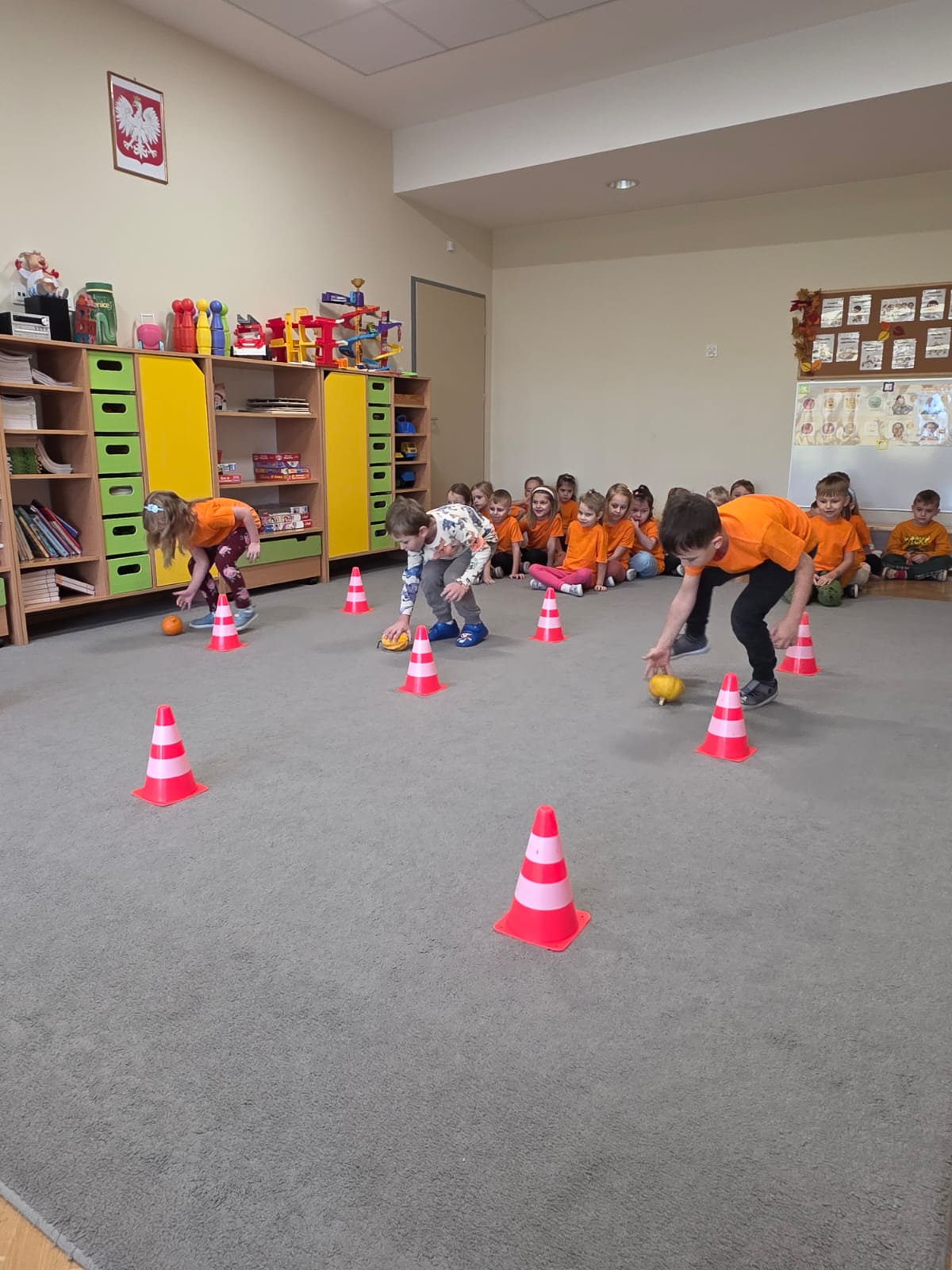 Dzieci poznały różne odmiany dyni, dowiedziały się, do czego można je wykorzystać oraz jakie mają właściwości zdrowotne. Wspólnie bawiliśmy się w dyniowe zabawy ruchowe,  wykonywaliśmy prace plastyczne tworząc małe wesołe dynie.