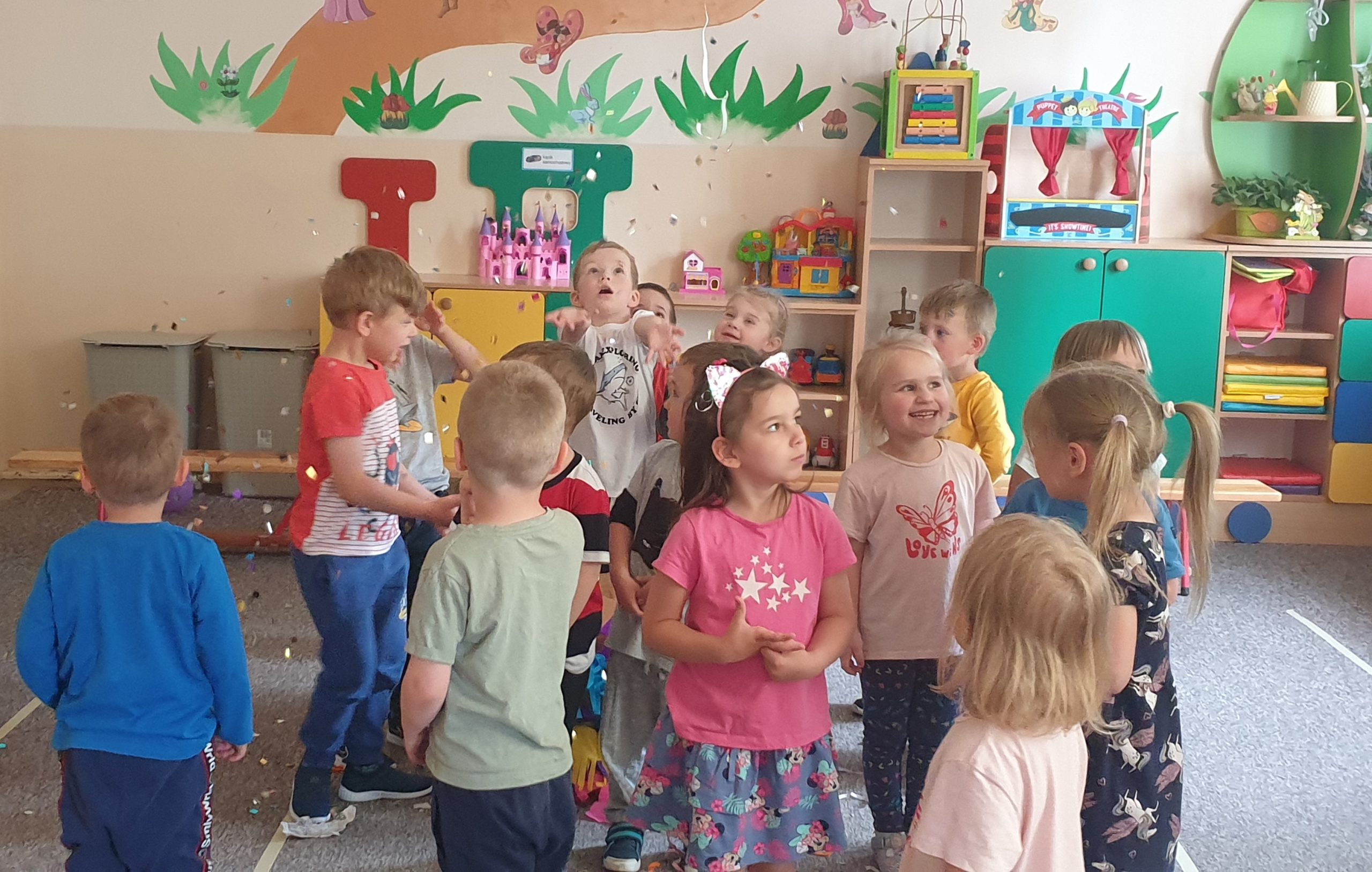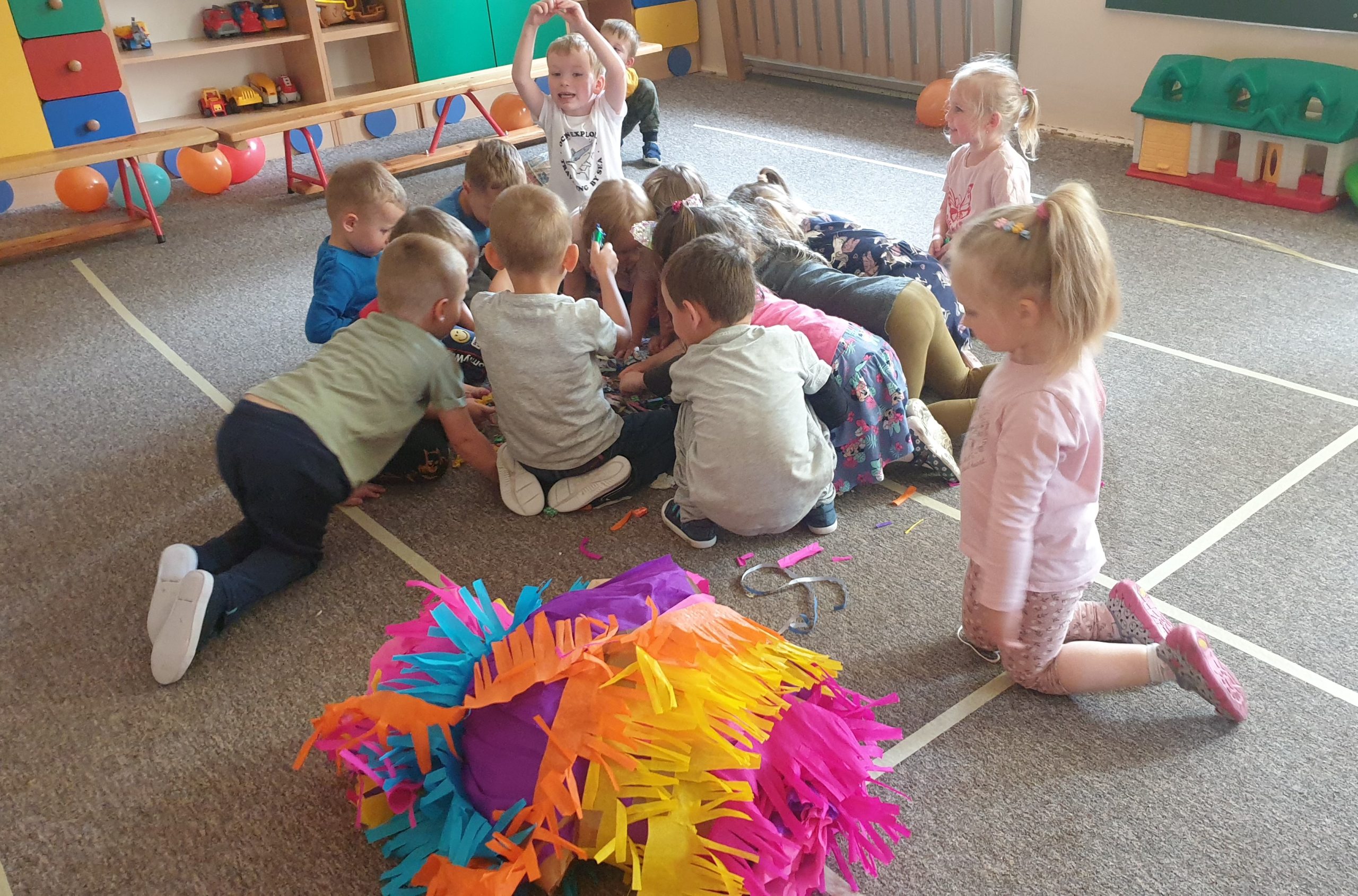 Dzień Dziecka w naszej grupie zaczęliśmy świętować już 31 maja. Dzieci pojechały na wycieczkę do Centrum Sportów Rakietowych w Tarnowie. Zabawom nie było końca, dzieci spędziły wesoło czas na zjeżdżalniach, torach przeszkód i w basenie z kulkami. Potem zjedliśmy pizzę i odpoczywaliśmy w Grocie Solnej. Kolejny dzień -1 czerwiec, czyli Międzynarodowy Dzień Dziecka też był dla Misiów pełen niespodzianek. Zabawy przy muzyce, zumba z balonami, konkurencje sportowe – cały dzień był pełen wrażeń. Na koniec dzieci otrzymały prezenty w postaci kawałka tortu w którym znajdowały się upominki. Jednak największą niespodzianką okazała się piniata pełna słodkości!