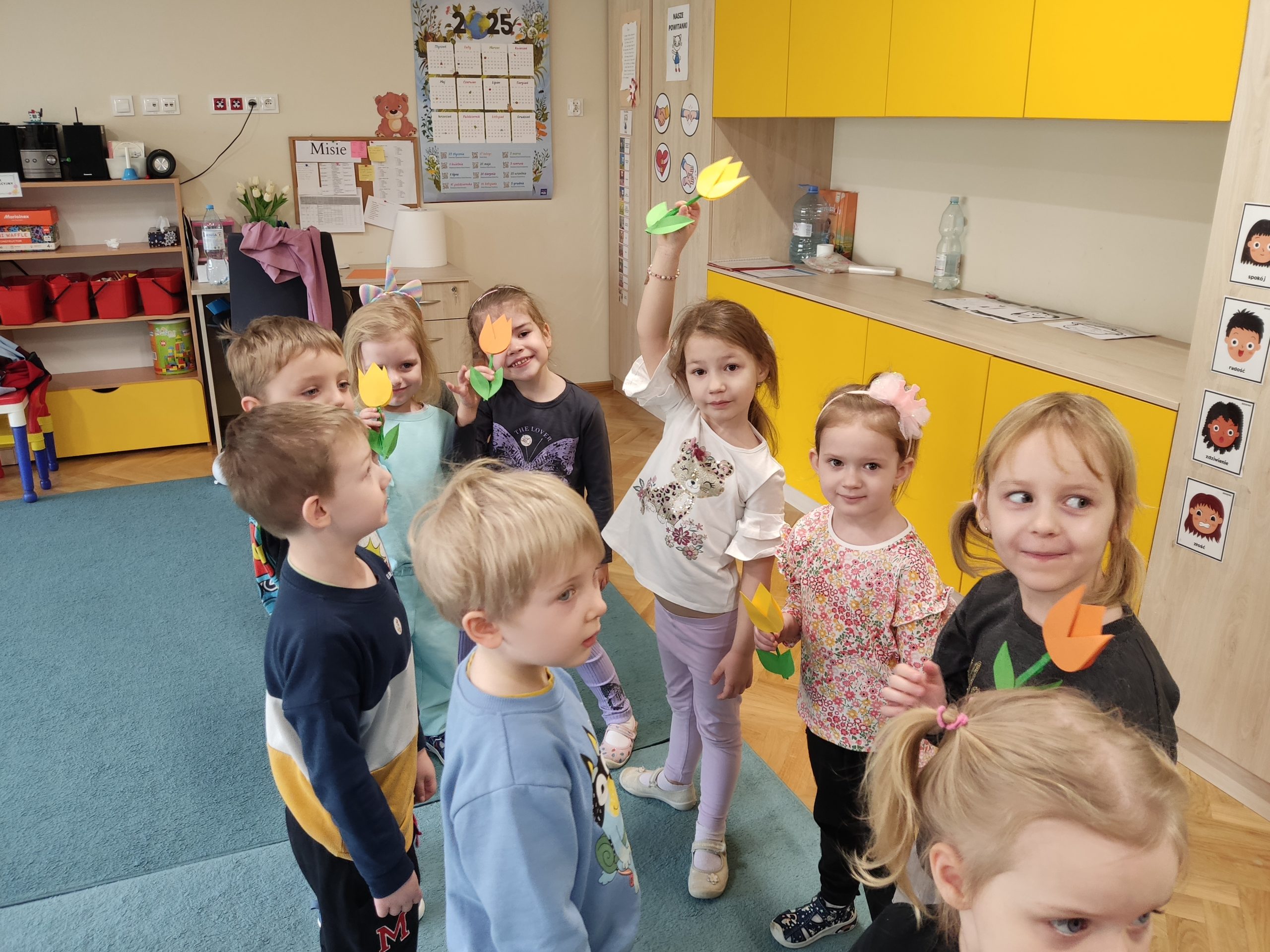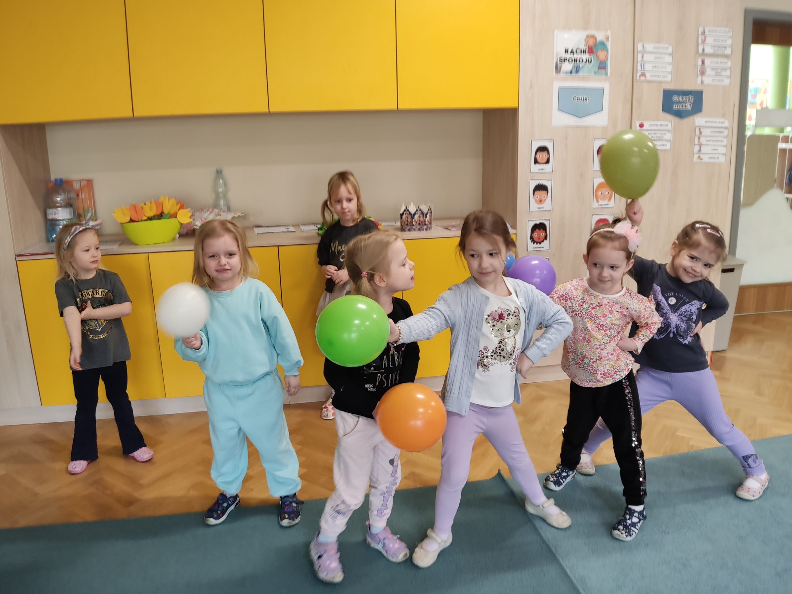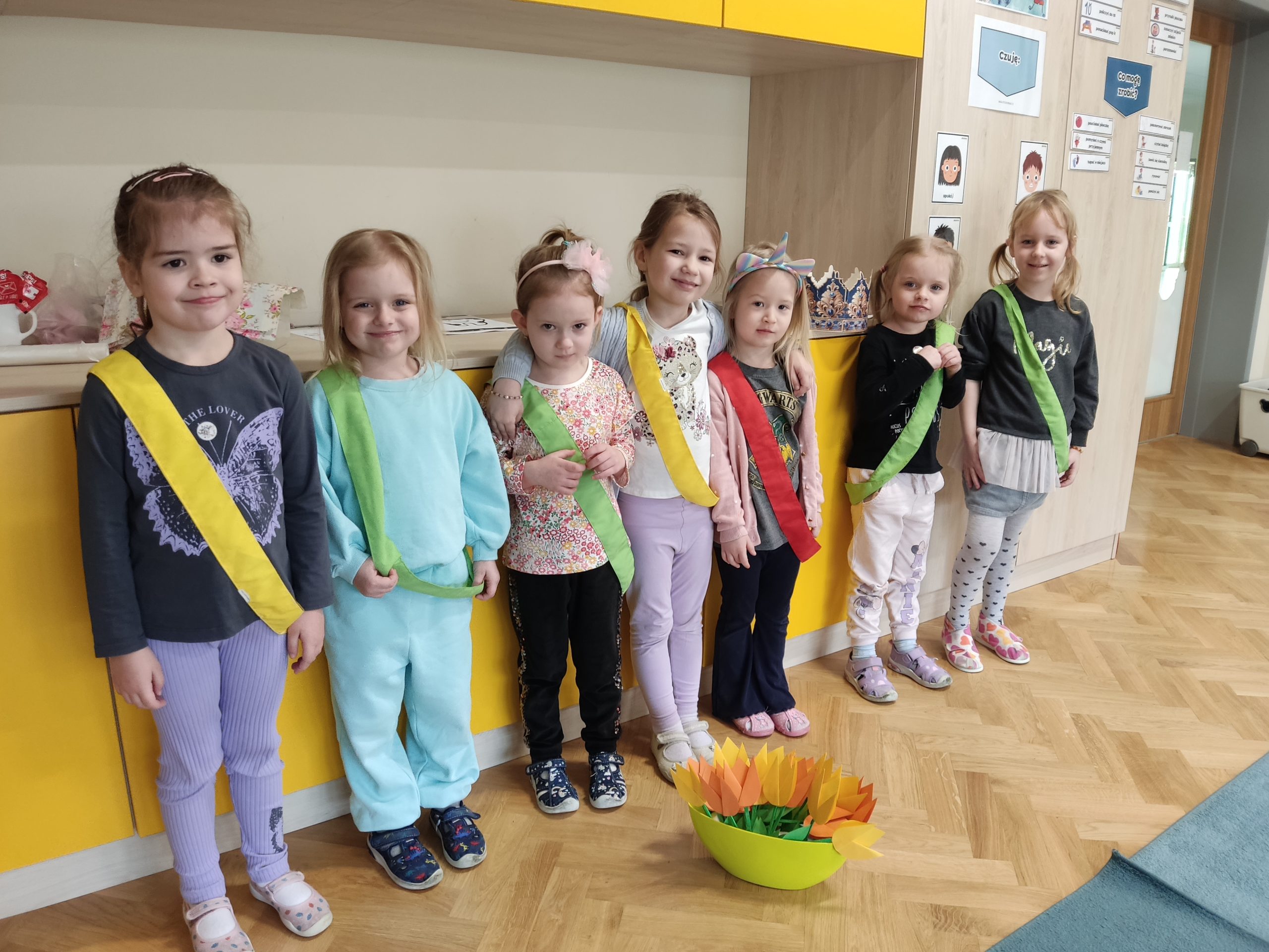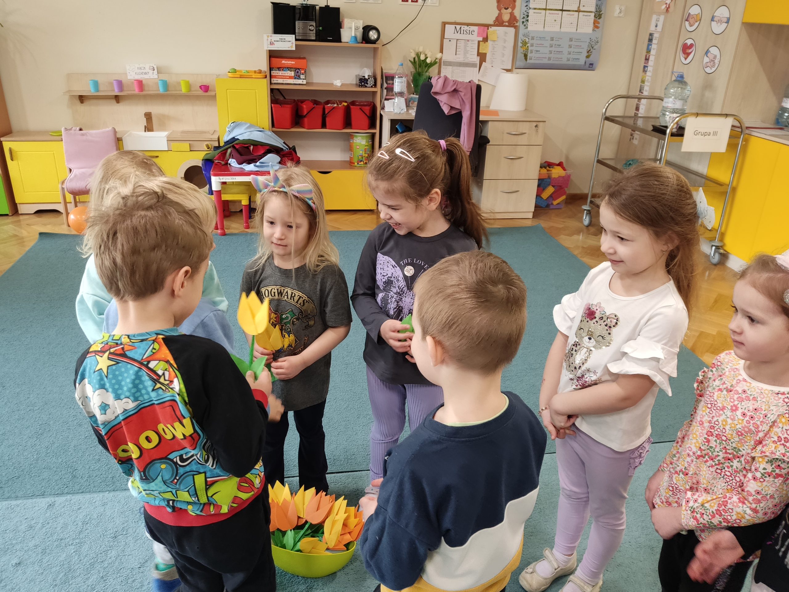 8 marca to wyjątkowy dzień w roku, ważny dla wszystkich kobiet, zarówno tych dużych, jak i małych. W grupie „Misiów” nie mogło zabraknąć chwil świętowania tego pięknego dnia. Były zabawy z chustą animacyjną, pokaz mody, miłe słowa, pyszne ciasteczka i kwiaty. Radosna atmosfera panowała już od samego rana. Chłopcy ze szczególnym zaangażowaniem starali się, aby ten dzień uczynić wyjątkowo miłym. Z pomocą swoich pań przygotowali dla dziewczynek kwiatuszki, „medale wspaniałej dziewczynki” oraz niespodzianki.