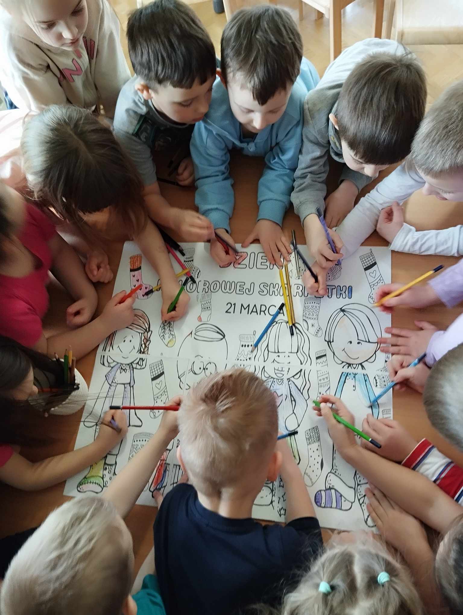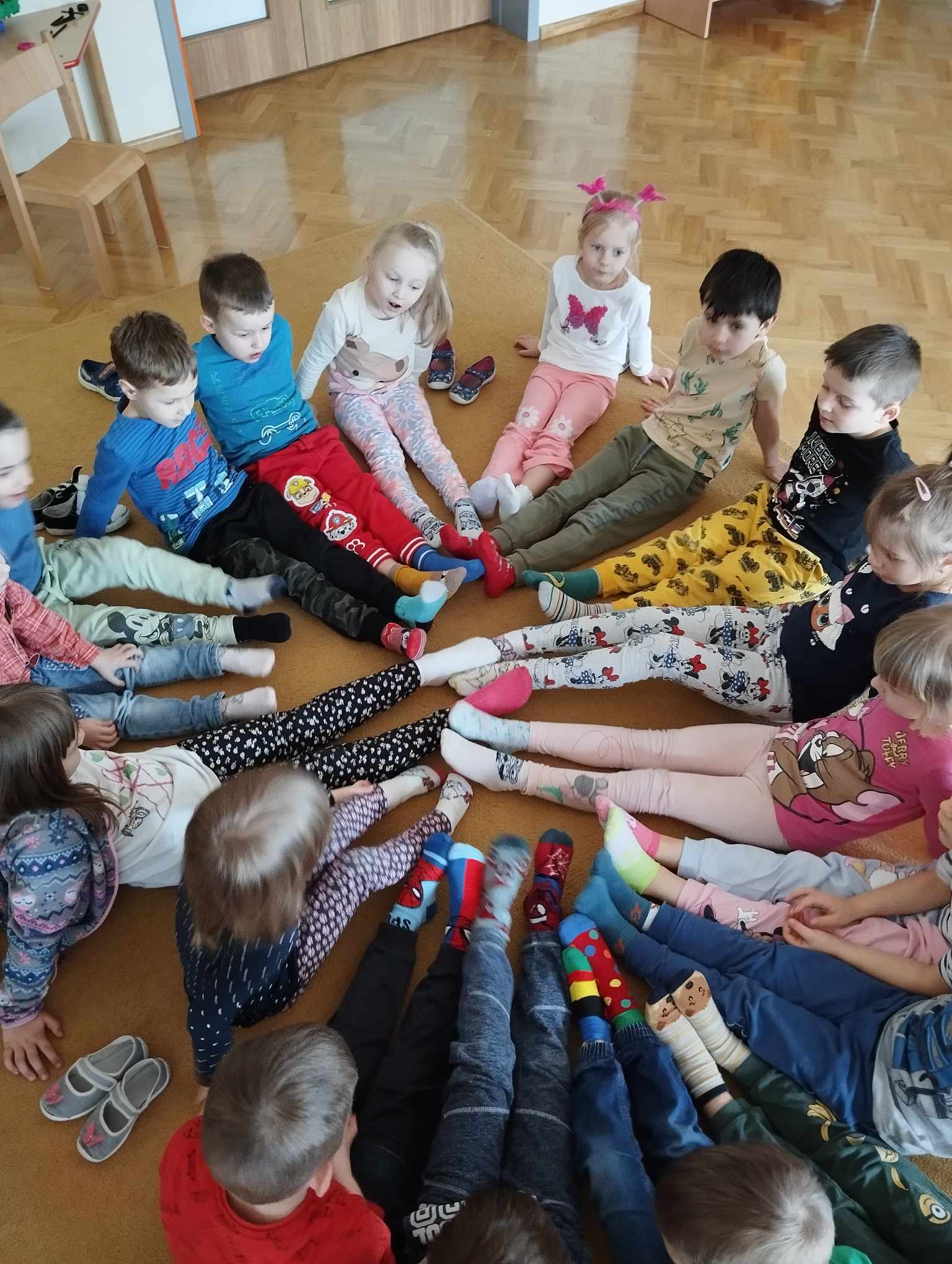 W dniu 19 marca odbył się w naszym przedszkolu Dzień Kolorowej Skarpetki. Wszyscy tego dnia założyli kolorowe skarpetki na znak solidarności z osobami z Zespołem Downa.