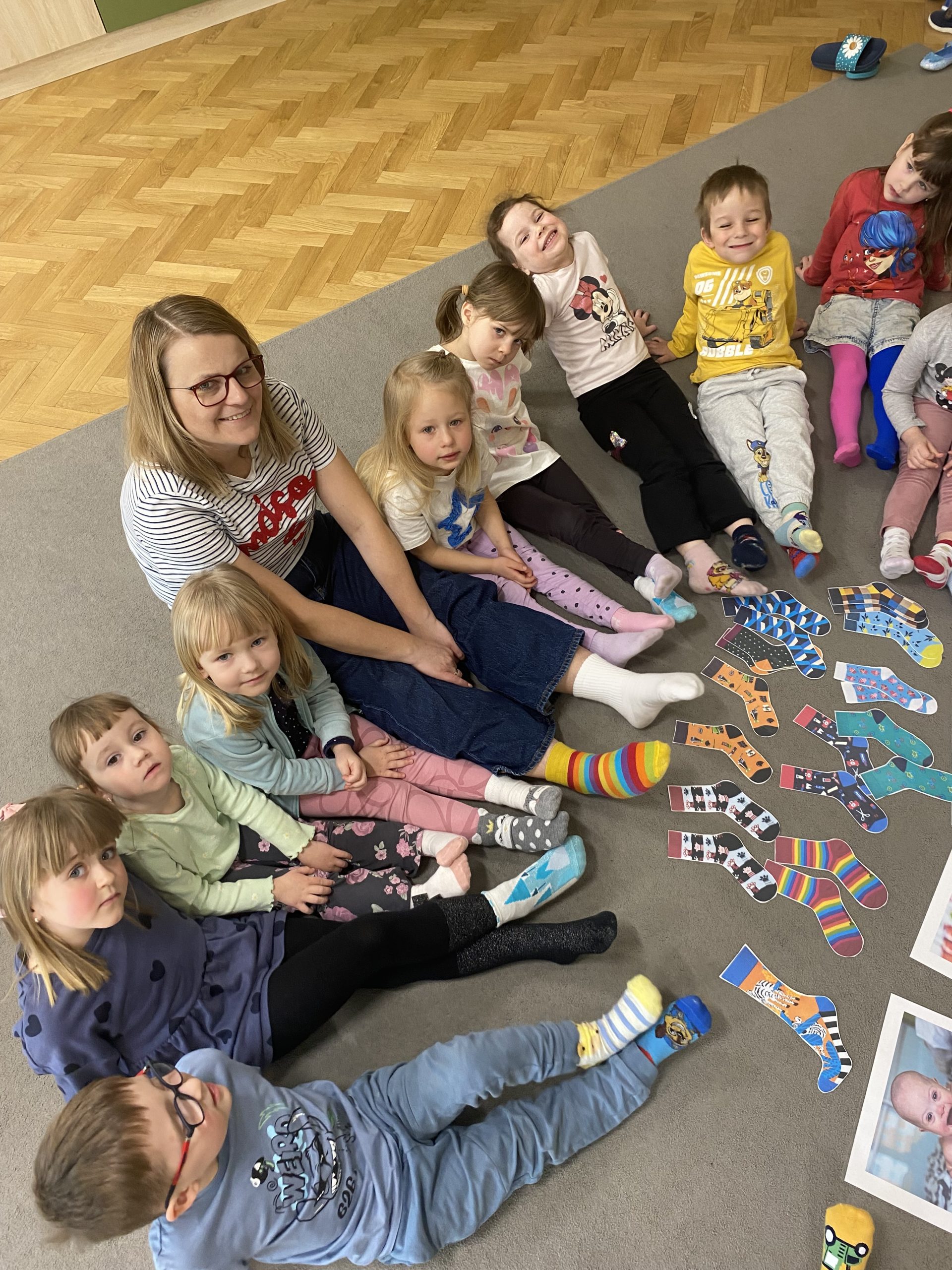 Przedszkolaki uczestniczyły w zabawach tematycznych, oglądały materiały edukacyjne oraz wykonywały prace plastyczne związane z kolorowymi skarpetkami. Nie zabrakło także wspólnych tańców i radosnej atmosfery.