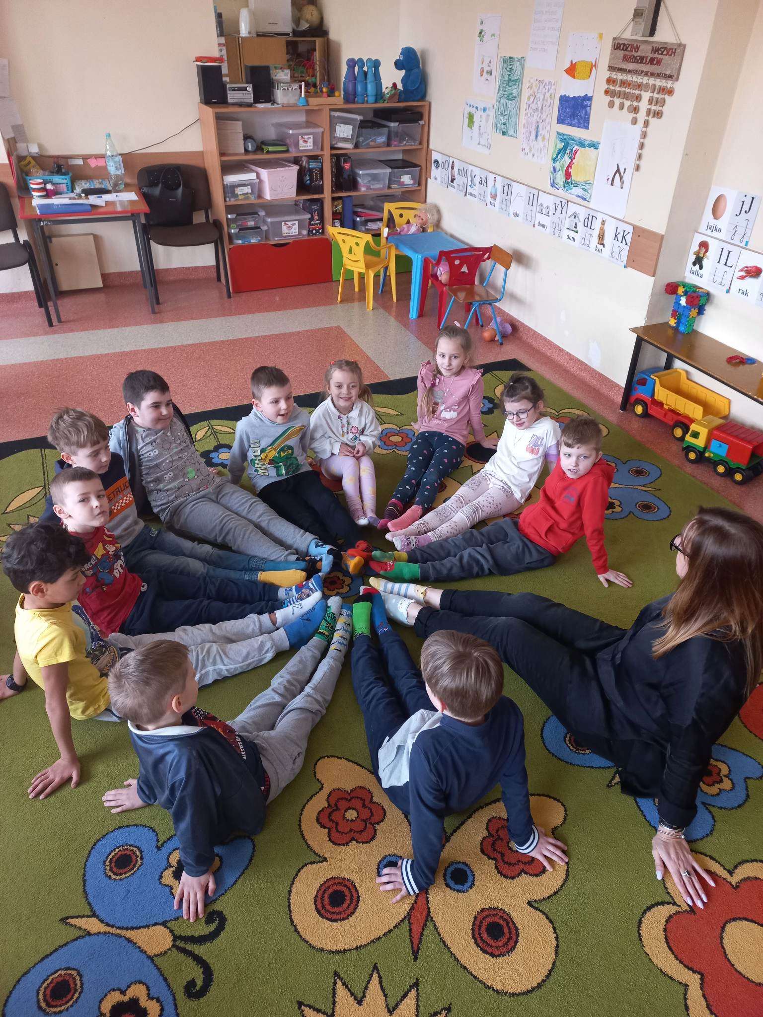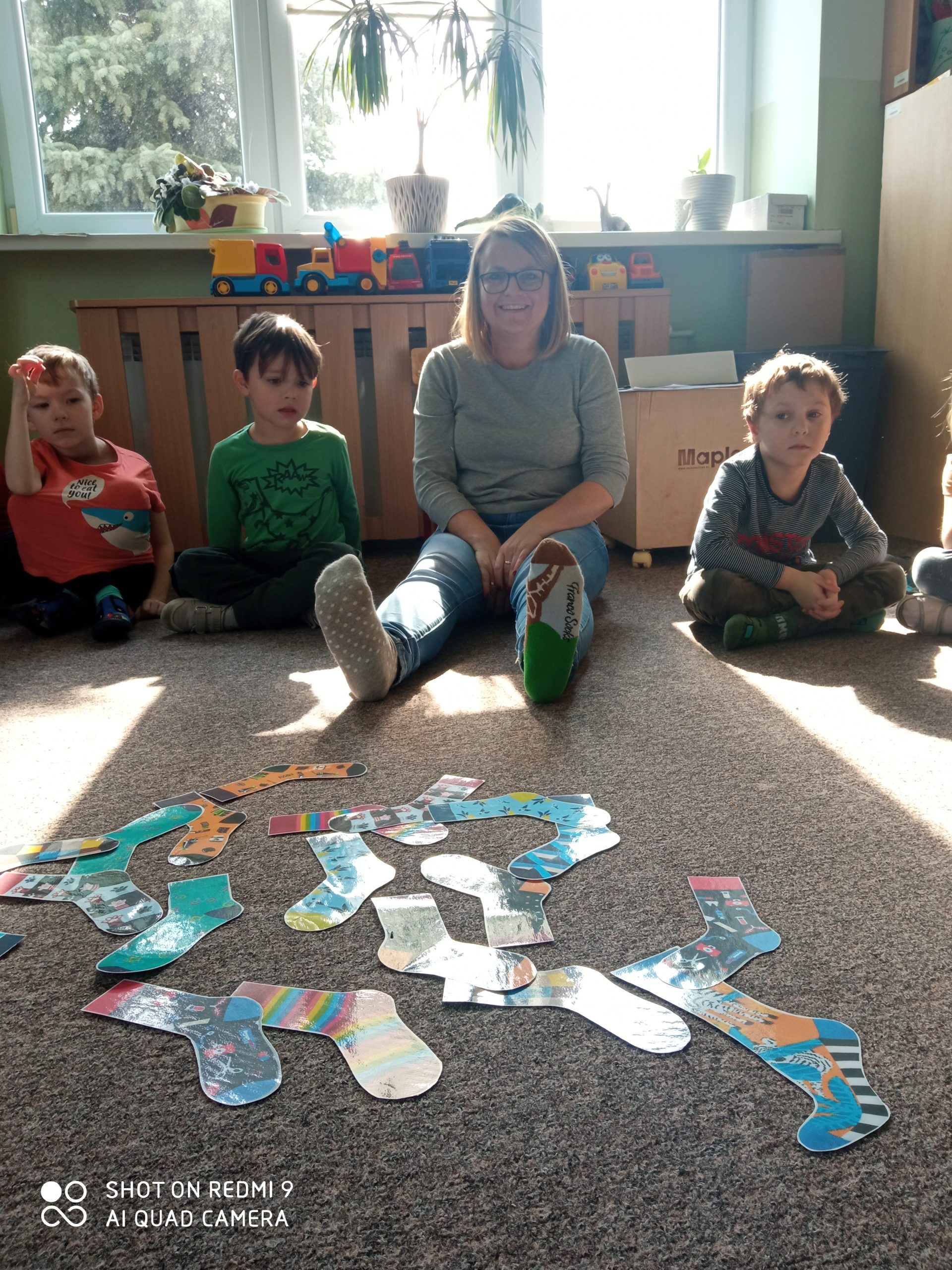 W dniu 20 marca w naszym przedszkolu obchodziliśmy Dzień Kolorowej Skarpetki – Dzień Osób z Zespołem Downa. Kolorowe skarpetki to symbol solidaryzowania się z chorymi na Zespół Downa. Zakładanie ich nie do pary, sprawia, że właściciel wyróżnia się w tłumie. Pani pedagog specjalny Elżbieta Gil przedstawiła wiadomości na temat tego schorzenia, przeczytała bajkę terapeutyczną, i razem z dziećmi wykonała pracę plastyczną. Przedszkolaki bawiły się również szukając dwóch takich samych skarpetek. To był bardzo atrakcyjny dzień, a jednocześnie niesamowita Lekcja Tolerancji! Bo akcja kolorowych skarpetek to wyraz życzliwości, wyrozumiałości i solidarności z osobami z Zespołem Downa.
