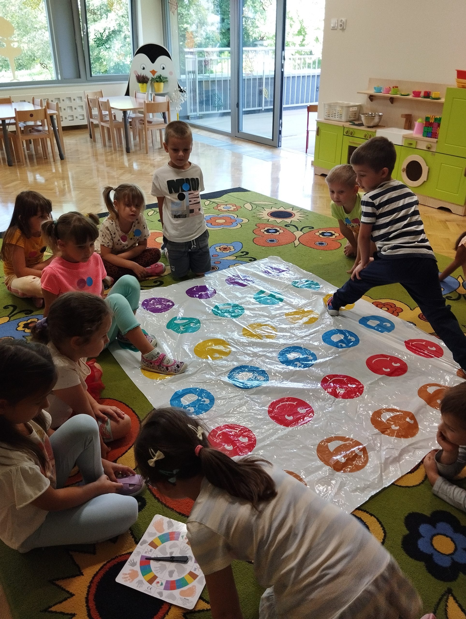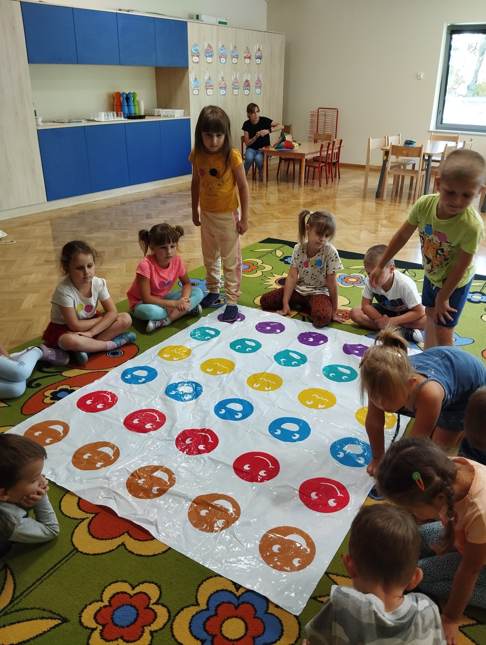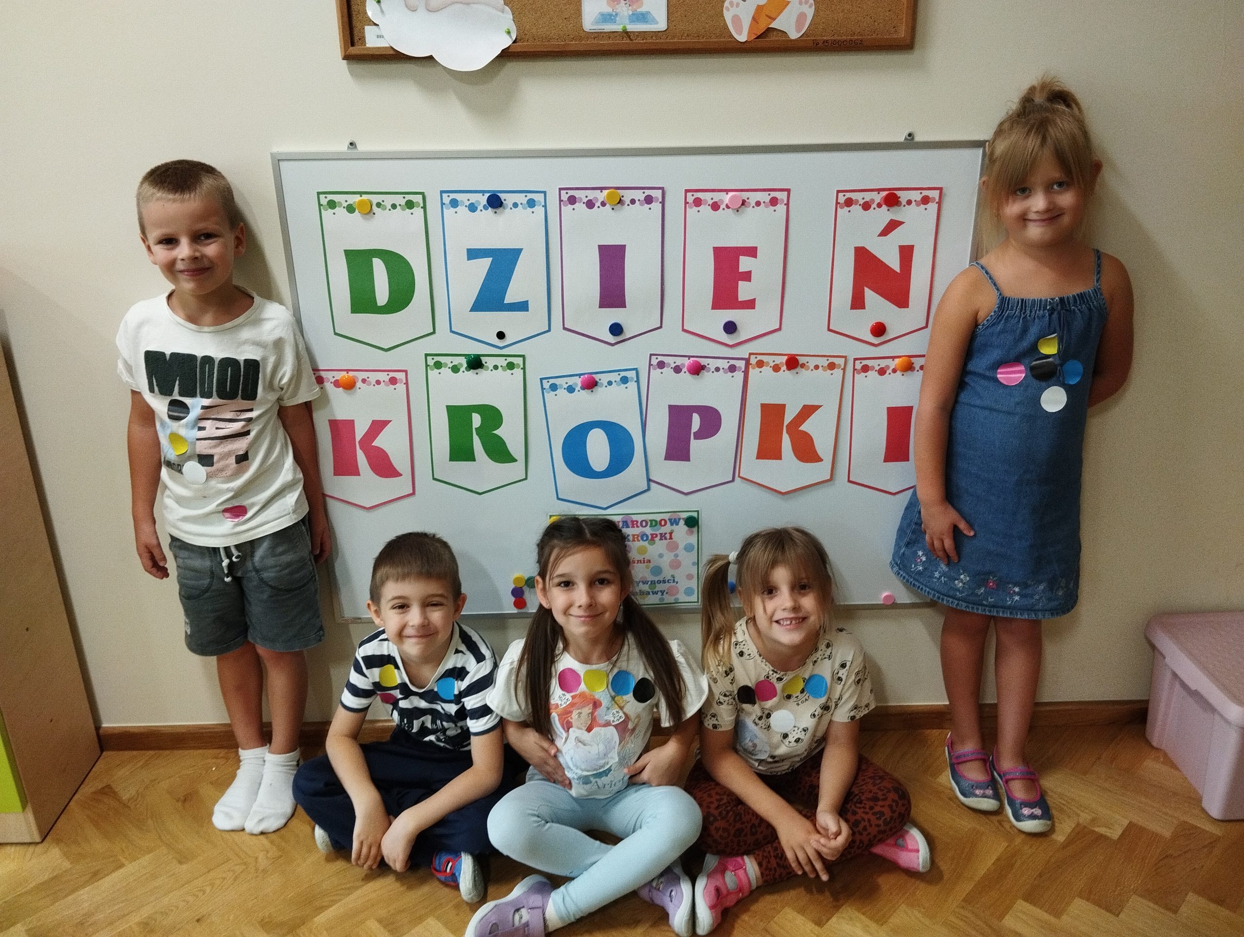 15 (września) grupa V „Zajączki” obchodziła Międzynarodowy Dzień Kropki. Celem Międzynarodowego Dnia Kropki jest wzbudzenie u dzieci kreatywności, pomysłowości i zachęcenie ich do tworzenia, działania. Na zajęciach uważnie wysłuchały opowiadania, jak to zwyczajna kropka zmieniła świat małej dziewczynki o imieniu Vashti. Historia ta uświadomiła przedszkolakom, że każdy z nas ma jakieś ukryte zdolności, TALENT. Dzieci dowiedziały się, że kropki towarzyszą nam w naszym codziennym życiu: są w kropkach biedronki, z kropki można utworzyć słońce, bombkę choinkową, kolorową kulę, piłkę. Wspólnie z dziećmi bawiliśmy się też przy piosence o kropkach radośnie skacząc, tworzyliśmy piękne prace plastyczne i graliśmy w grę ” Twister” . Bardzo spodobała im się książka ” Naciśnij Mnie” Herve Tulleta. BYŁO KOLOROWO, „KROPKOWO” I RADOŚNIE.