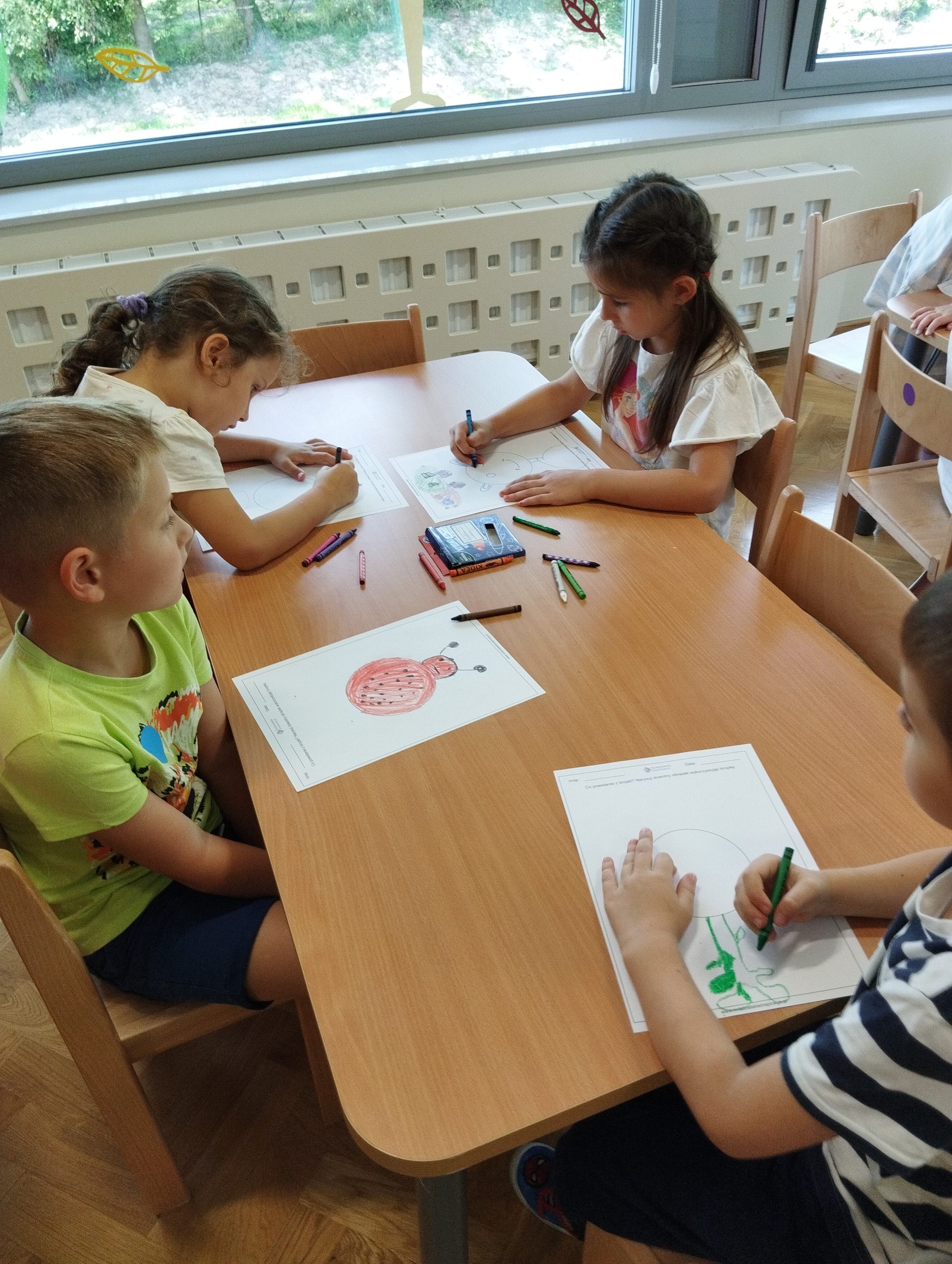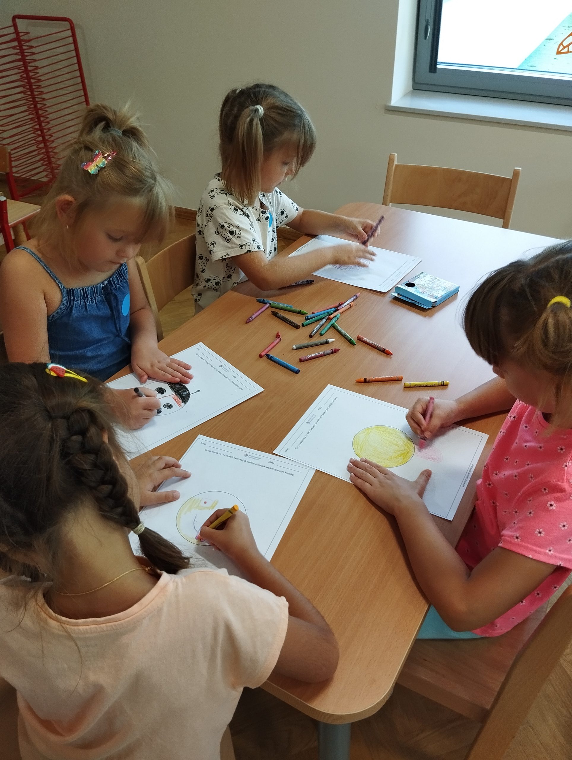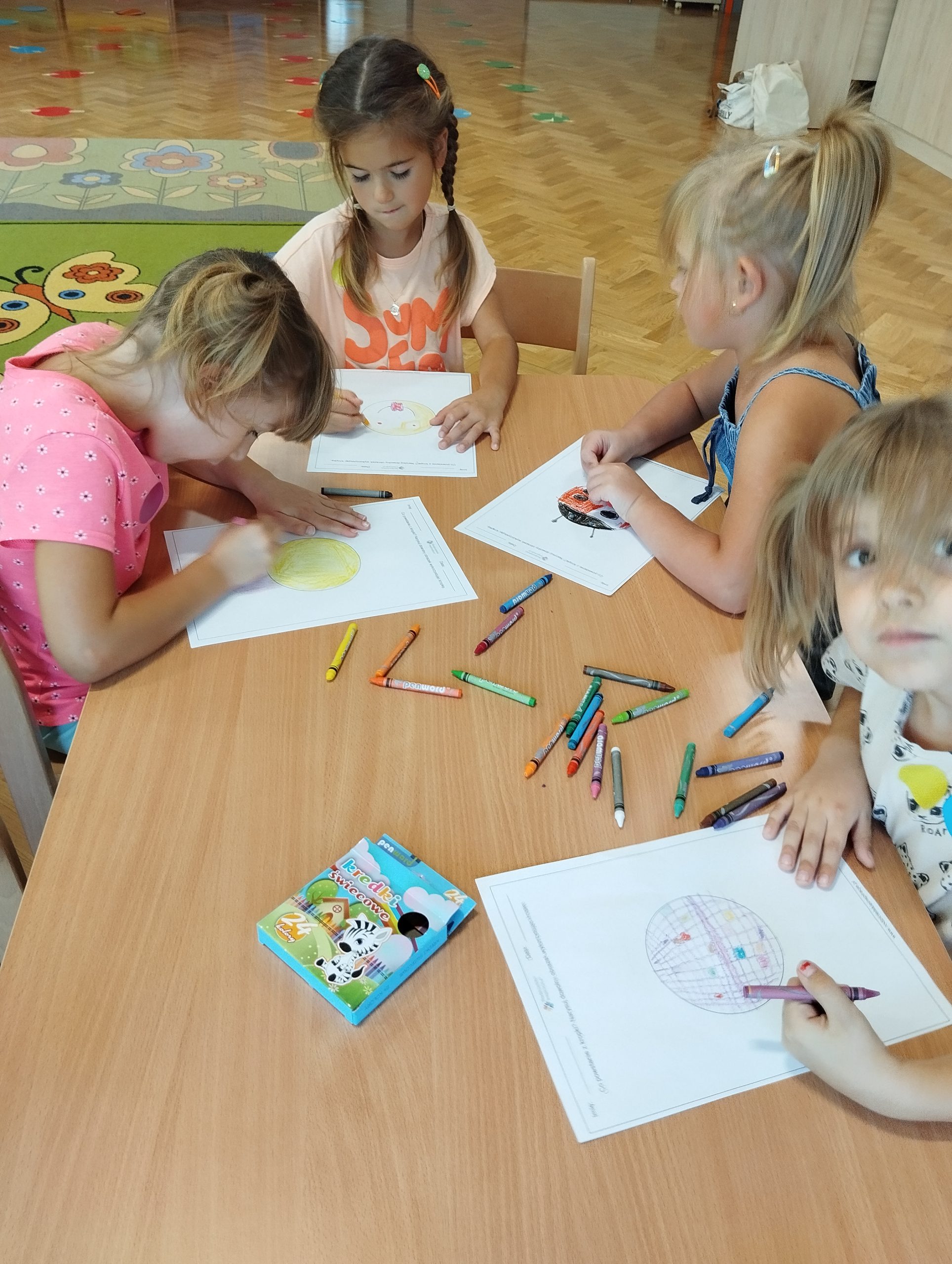 15 (września) grupa V „Zajączki” obchodziła Międzynarodowy Dzień Kropki. Celem Międzynarodowego Dnia Kropki jest wzbudzenie u dzieci kreatywności, pomysłowości i zachęcenie ich do tworzenia, działania. Na zajęciach uważnie wysłuchały opowiadania, jak to zwyczajna kropka zmieniła świat małej dziewczynki o imieniu Vashti. Historia ta uświadomiła przedszkolakom, że każdy z nas ma jakieś ukryte zdolności, TALENT. Dzieci dowiedziały się, że kropki towarzyszą nam w naszym codziennym życiu: są w kropkach biedronki, z kropki można utworzyć słońce, bombkę choinkową, kolorową kulę, piłkę. Wspólnie z dziećmi bawiliśmy się też przy piosence o kropkach radośnie skacząc, tworzyliśmy piękne prace plastyczne i graliśmy w grę ” Twister” . Bardzo spodobała im się książka ” Naciśnij Mnie” Herve Tulleta. BYŁO KOLOROWO, „KROPKOWO” I RADOŚNIE.