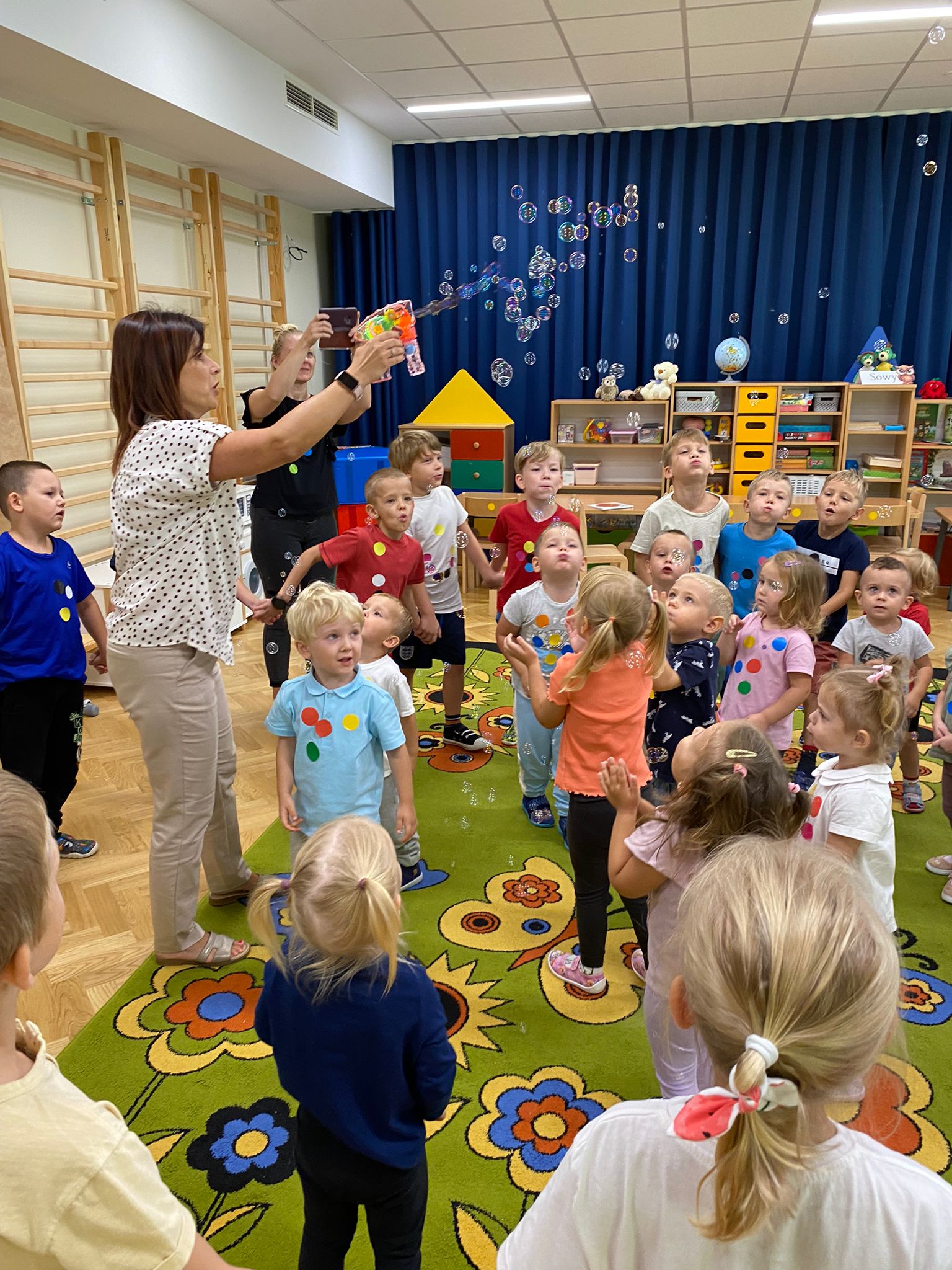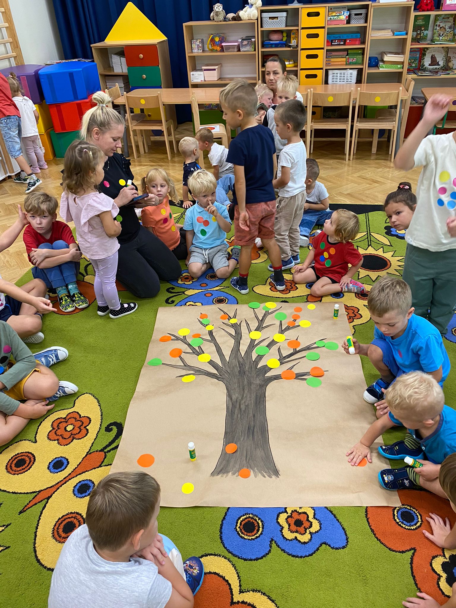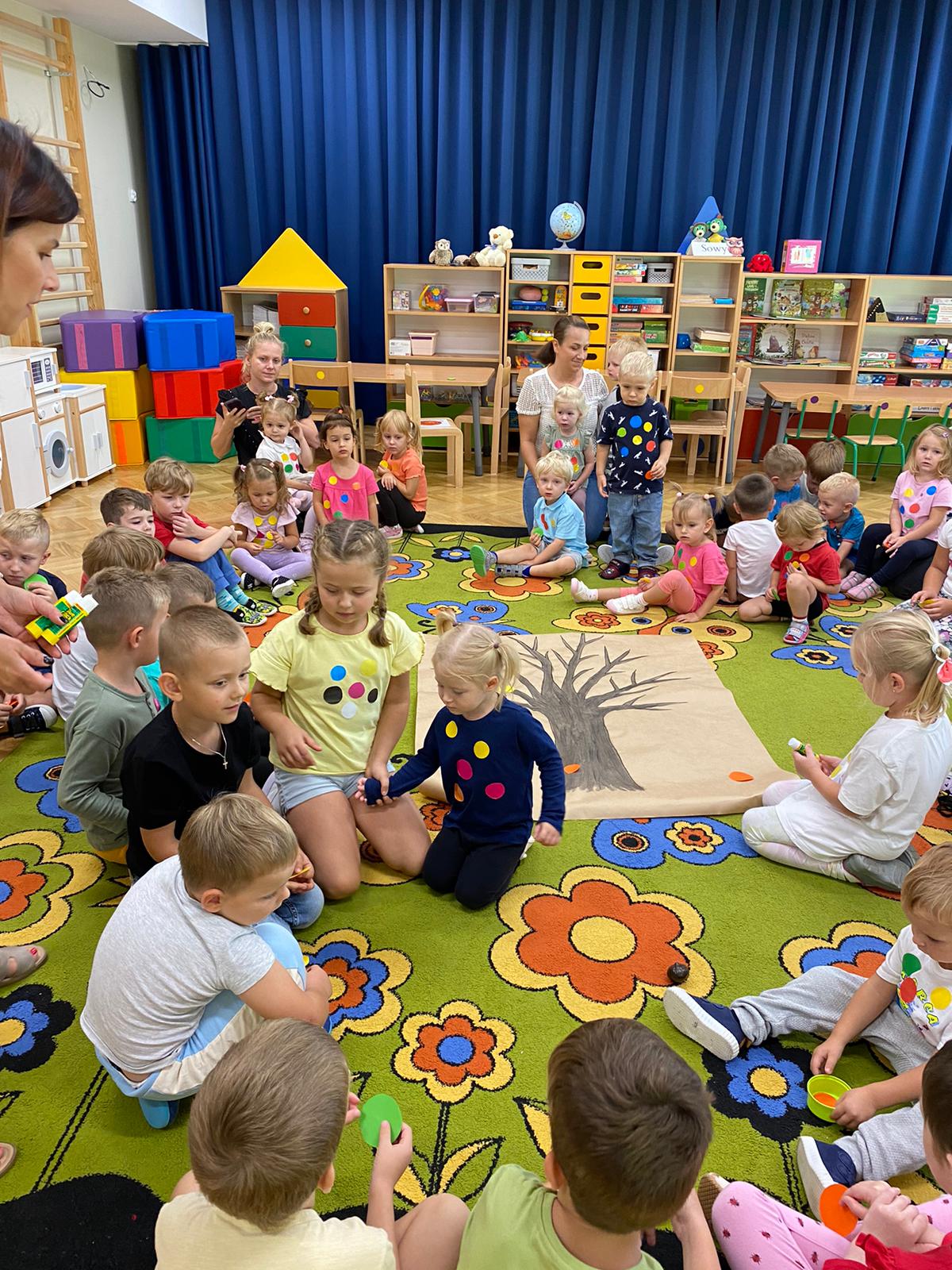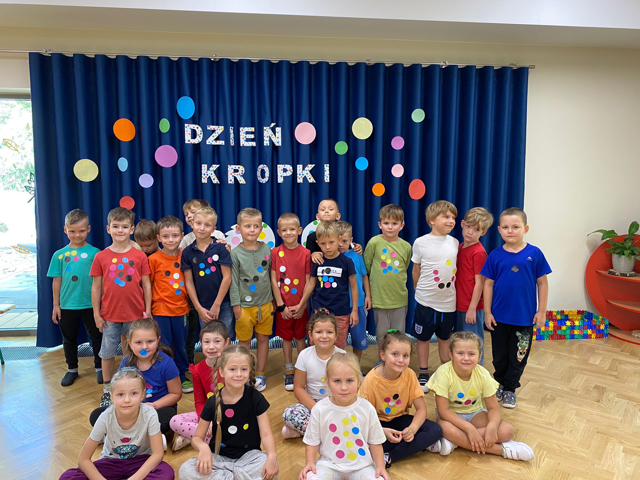 15 września obchodziliśmy w naszej grupie Dzień Kropki. Jest to międzynarodowe święto, którego przesłaniem jest, aby każdy z nas odkrył w sobie talent. Starszaki Sowy bawiły się wspólnie z maluszkami – Jeżykami. Było pięknie, kolorowo, bajkowo i kropkowo. Nasze przedszkolaki to wrażliwe i utalentowane dzieci!