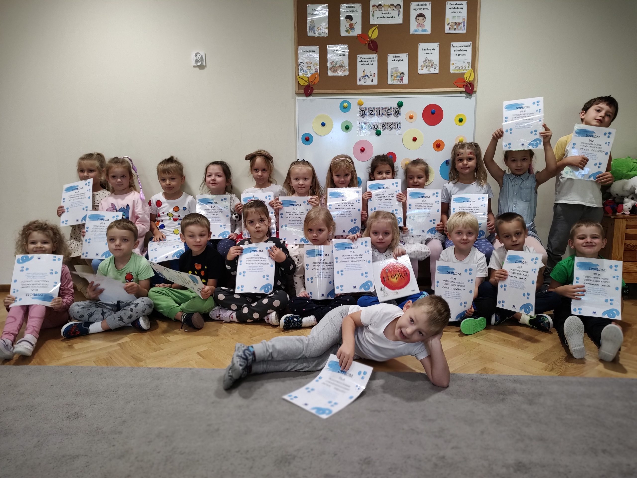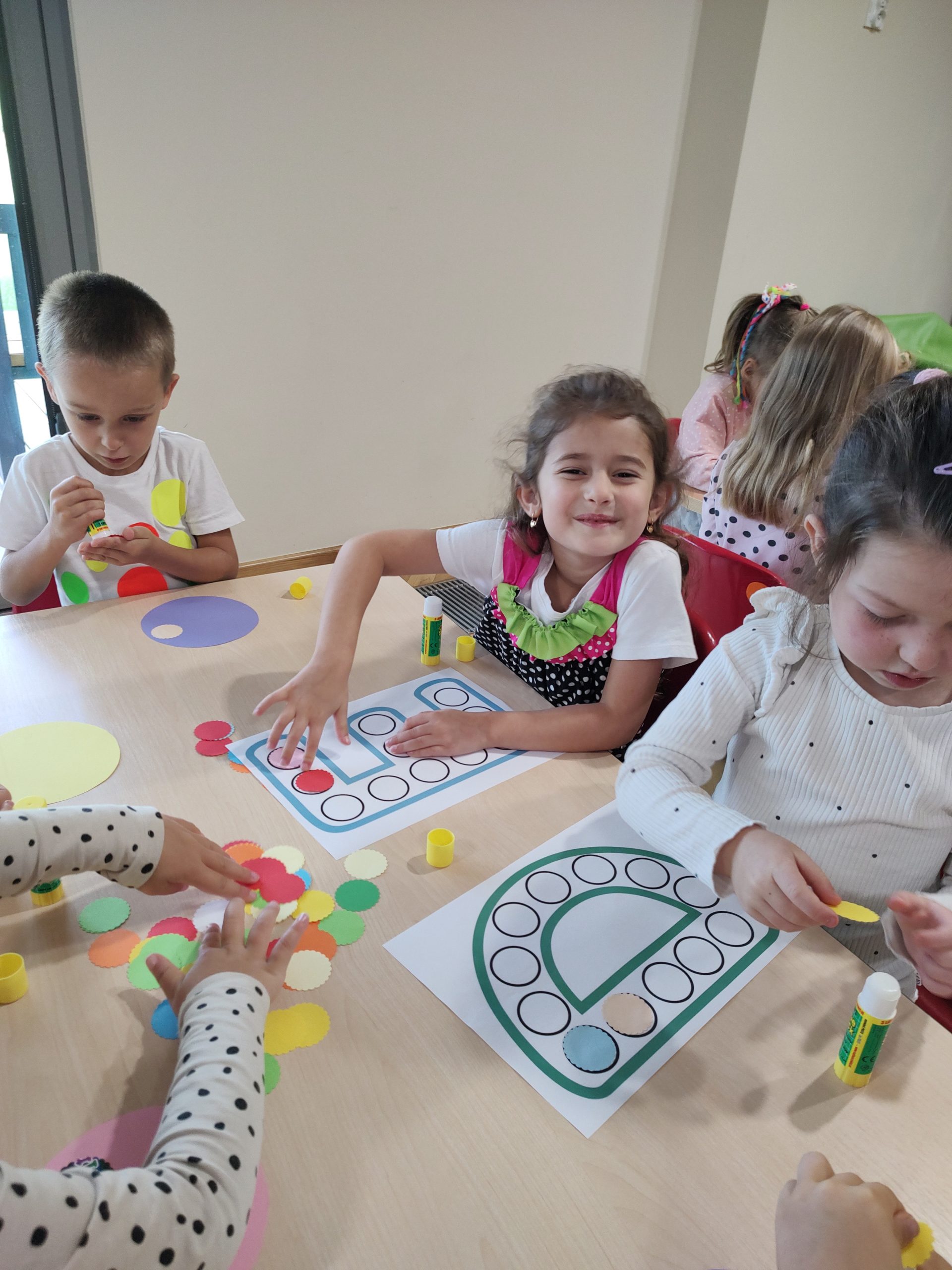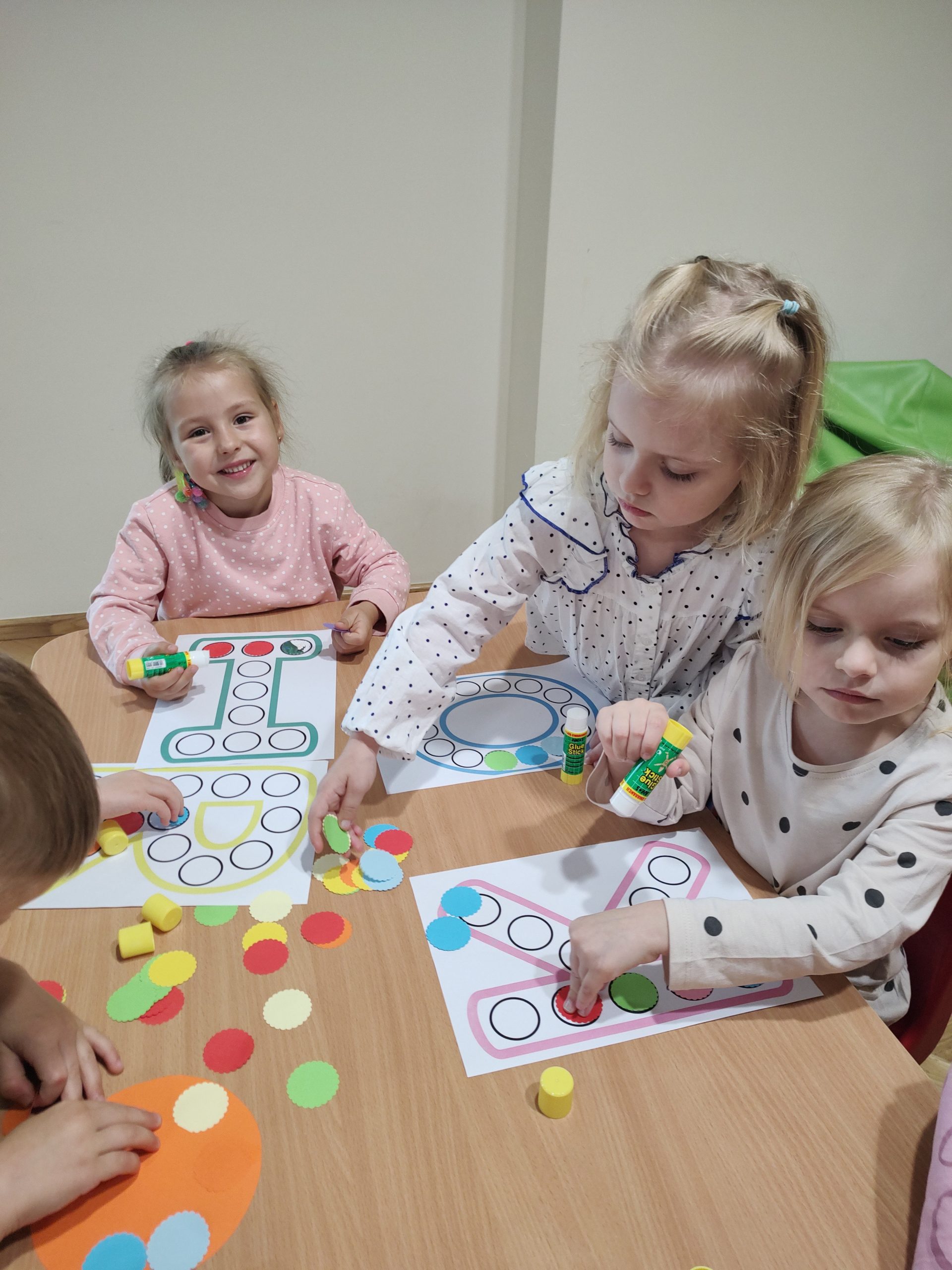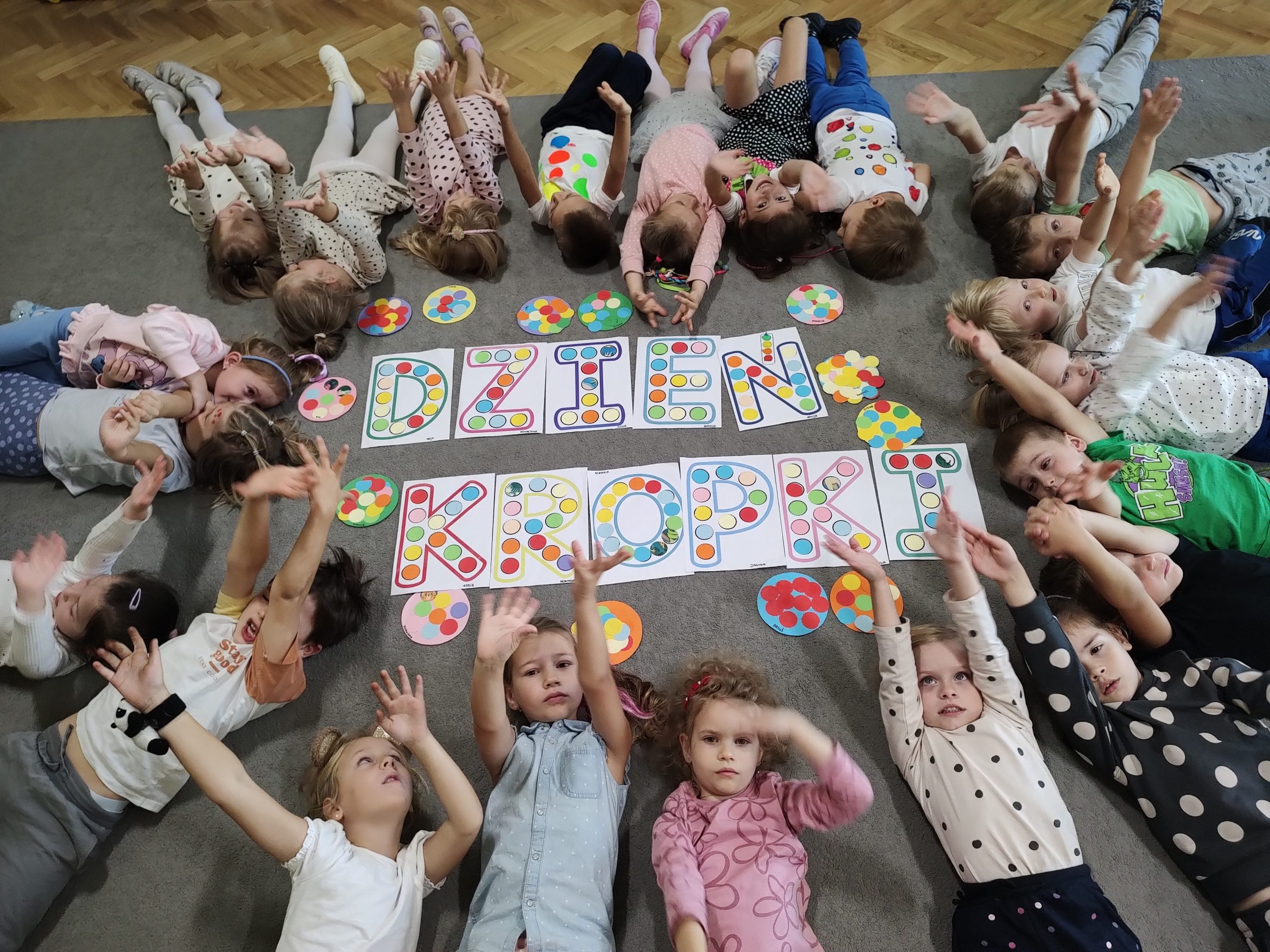 Chętne dzieci w tym dniu przystroiły się w kolorowe kropki i z radością uczestniczyły w zabawach muzyczno- ruchowych oraz aktywności plastycznej z kropką w roli głównej :).