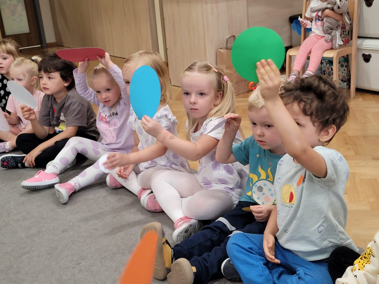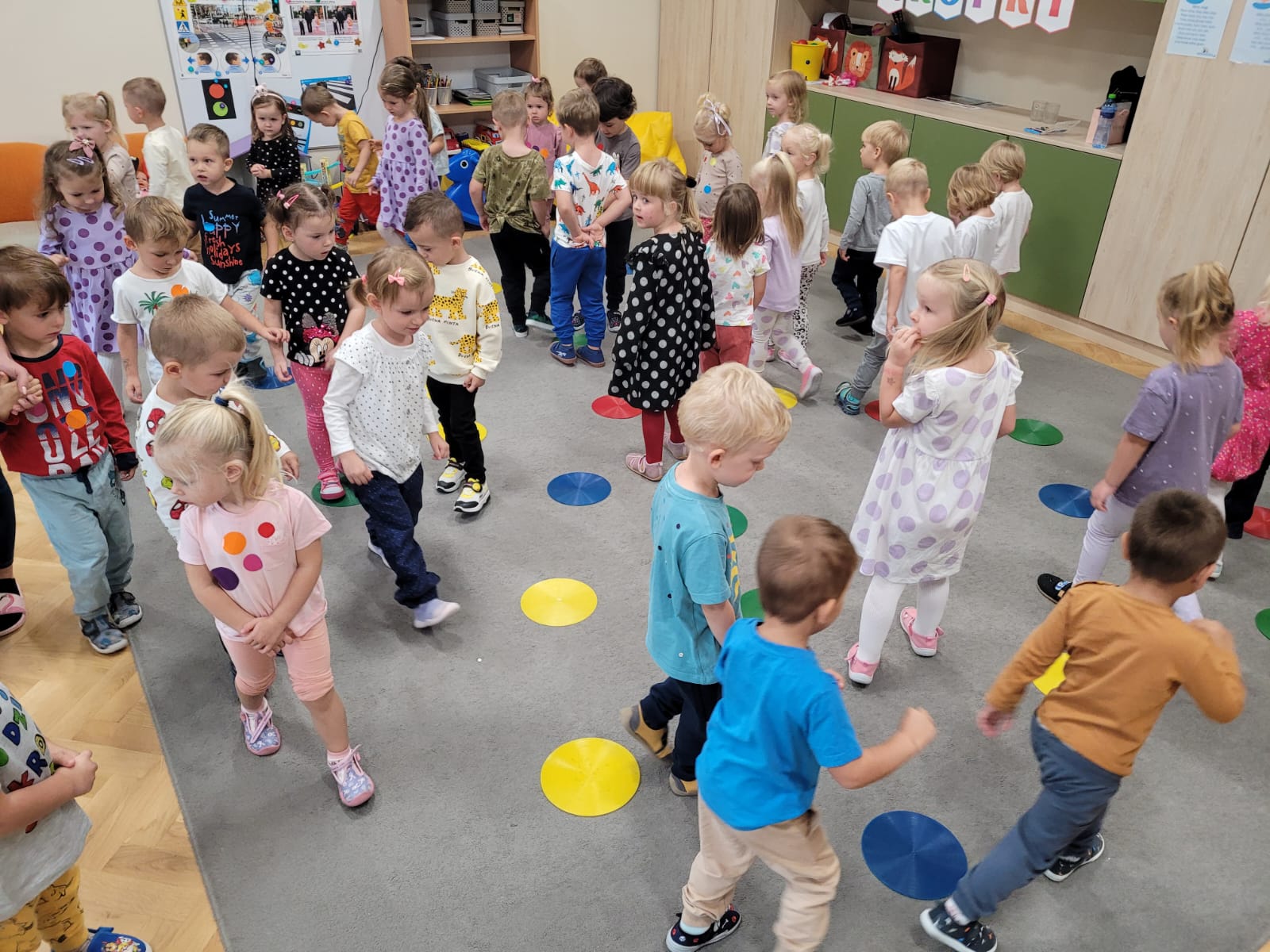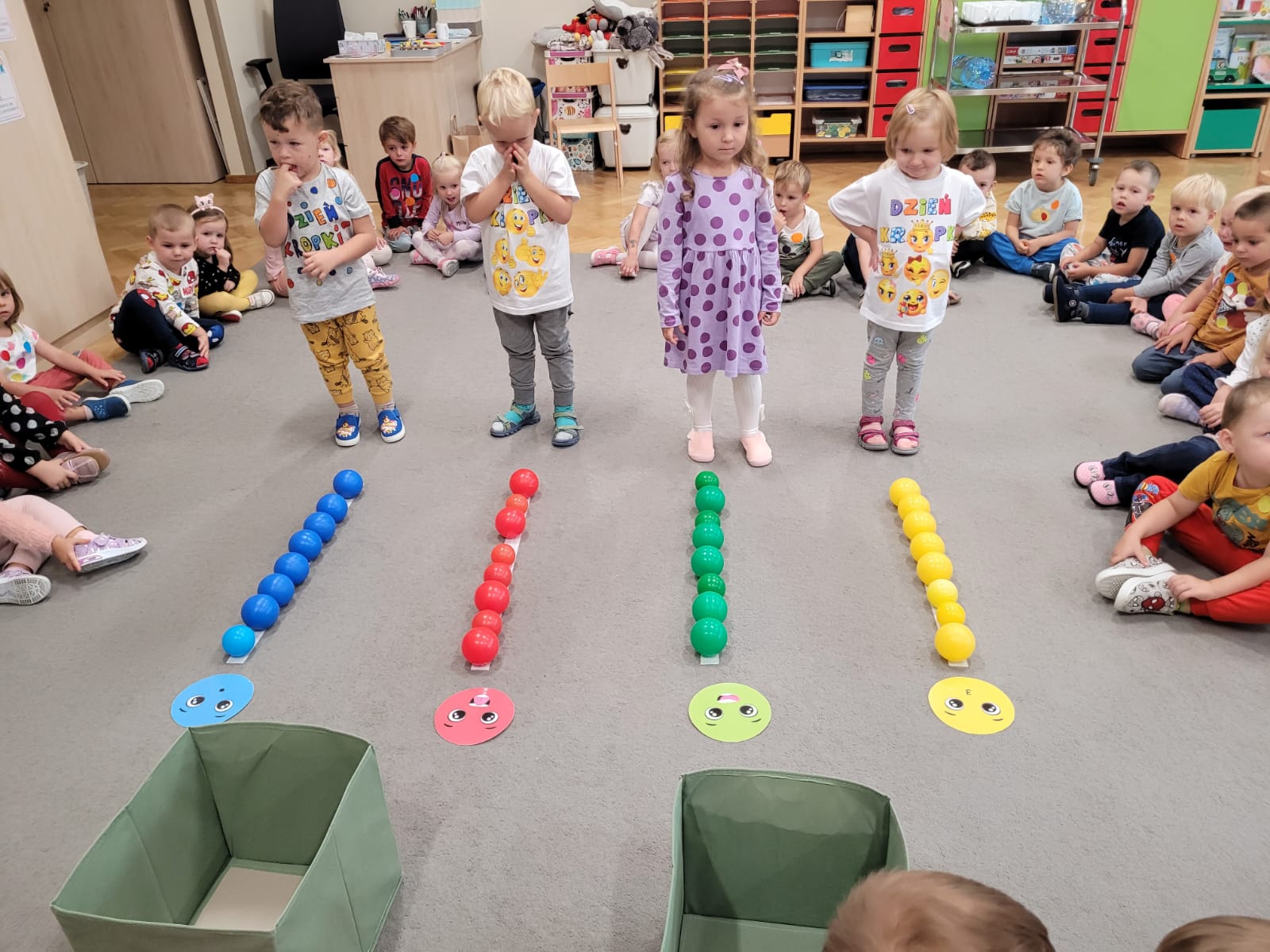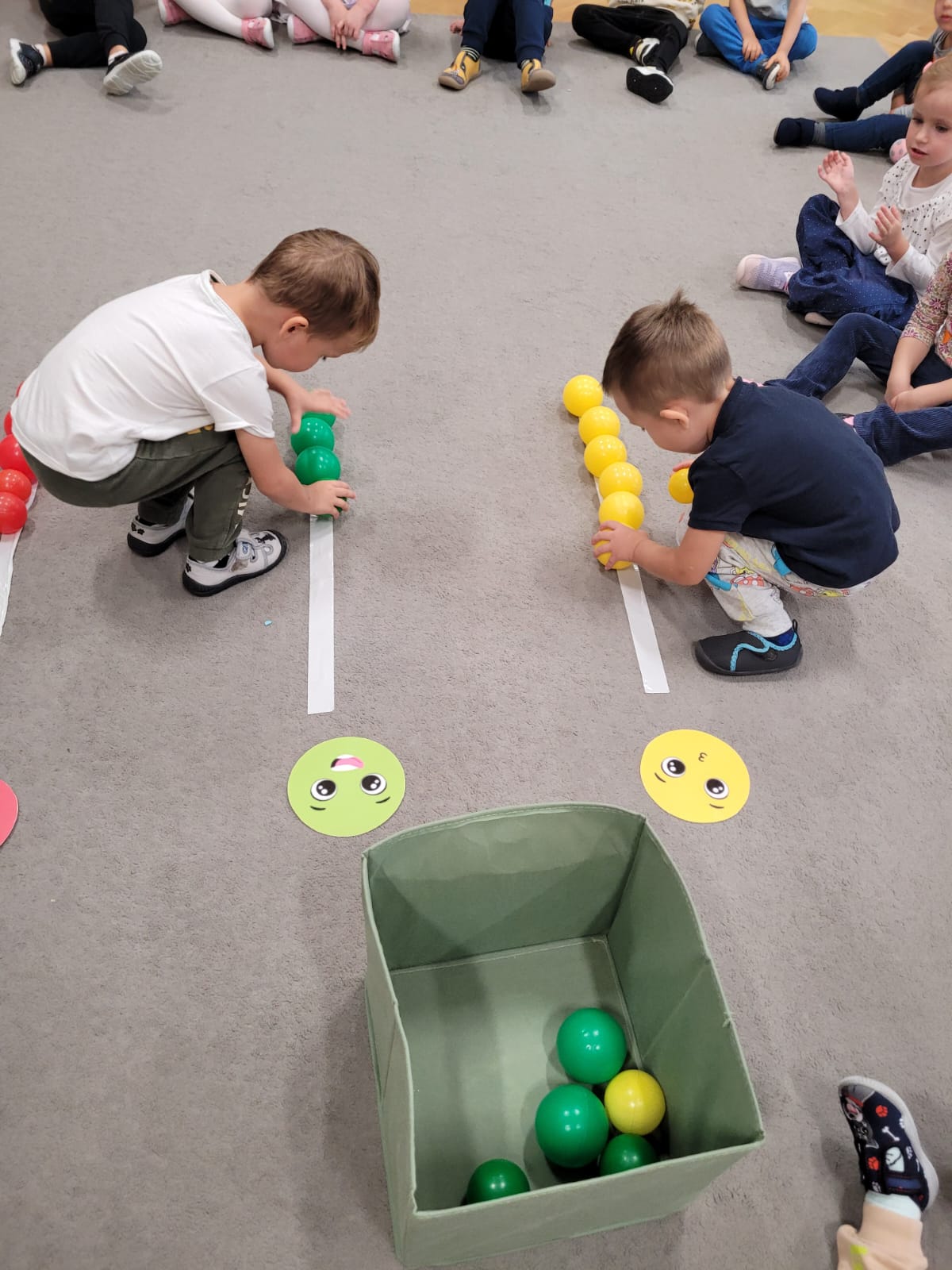 Dnia 15 września dzieci z z naszej grupy obchodziły wspólnie z grupą Jeżyków Dzień Kropki, podczas którego zapoznały się z jego historią i wysłuchały opowiadania o dziewczynce Vashti, która nie wierzyła w swoje możliwości. Dzieci wspólnie bawiły się w rytm piosenki podając kropki, a także segregowały piłeczki według kolorów. Ten dzień był pełen kropek!