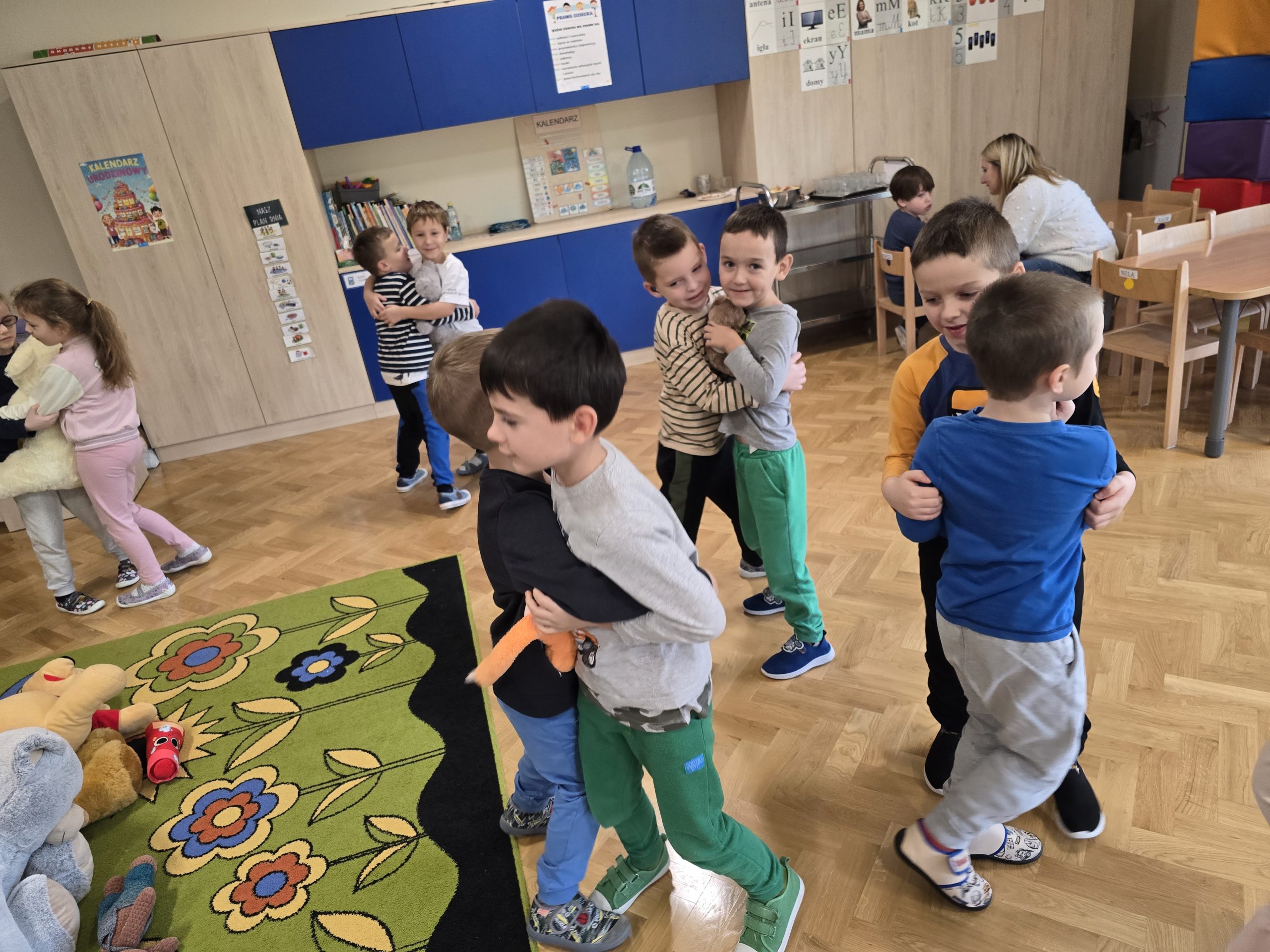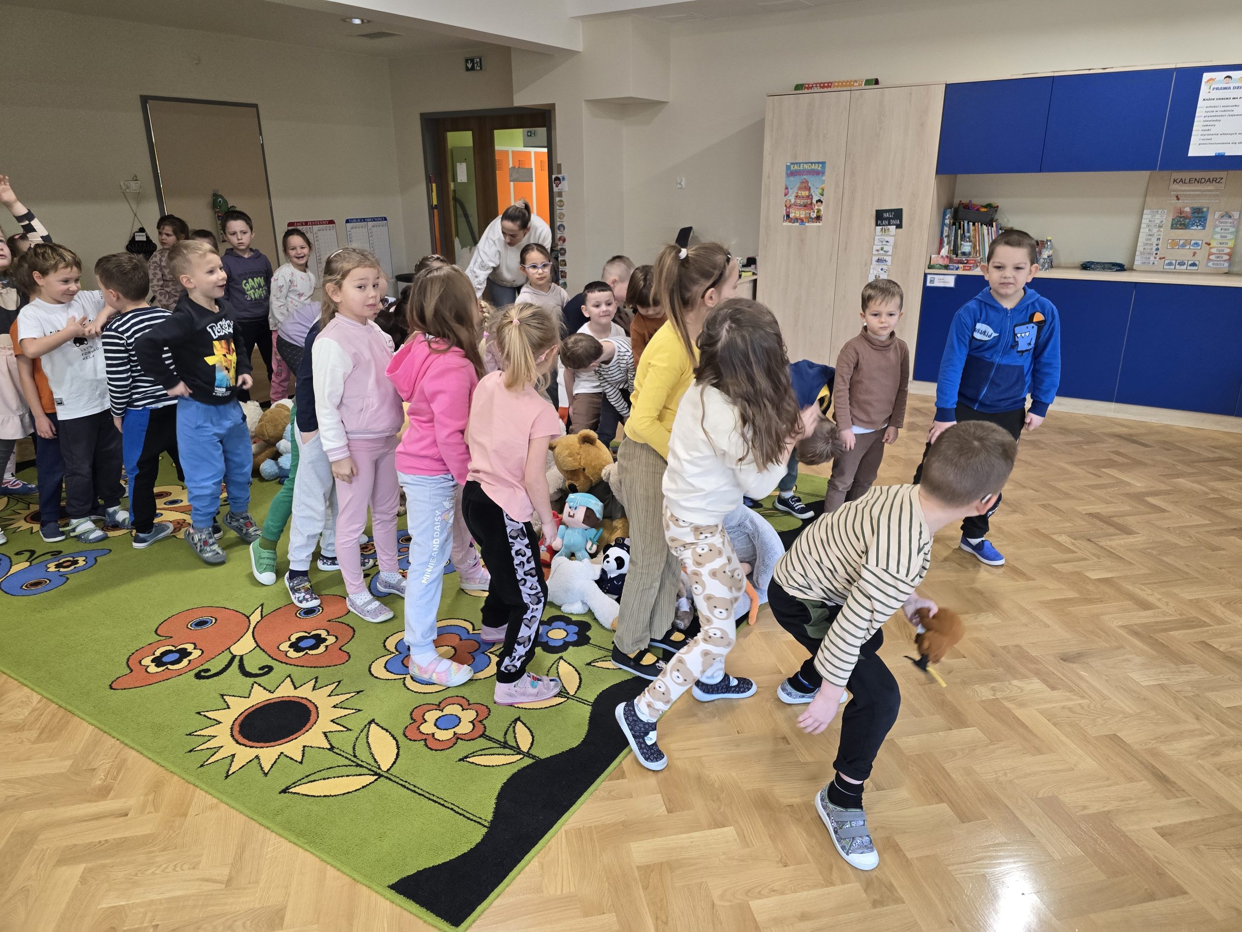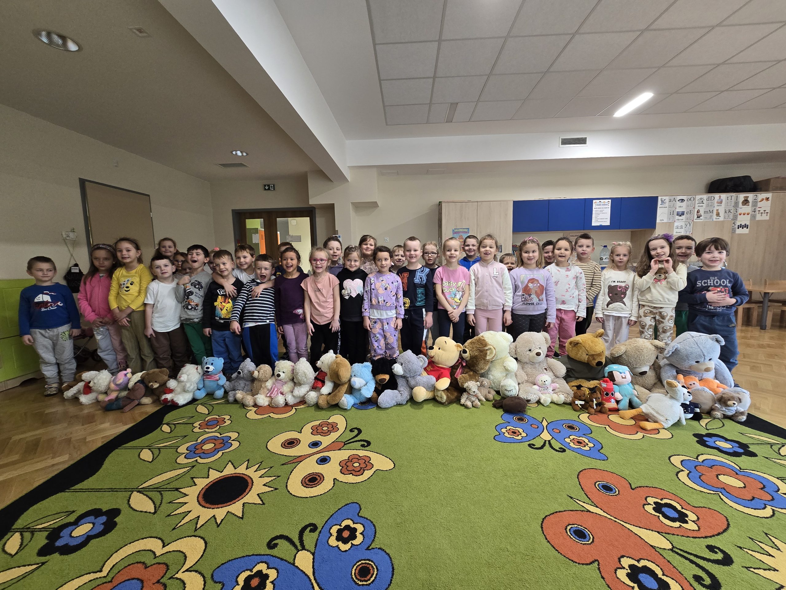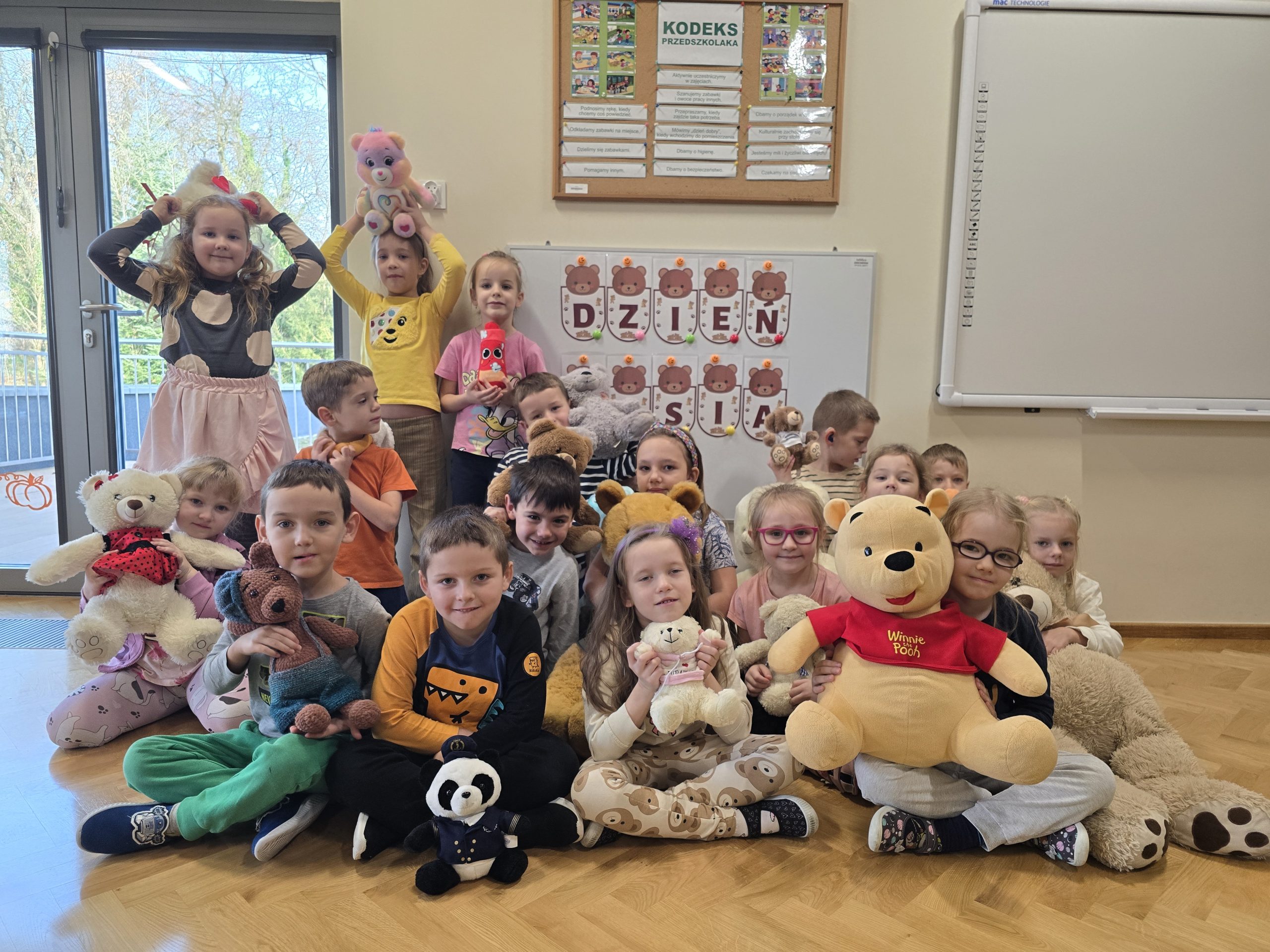 25 listopada na całym świecie obchodzony jest dzień pluszowego misia. Zabawka ta od 122 lat towarzyszy dzieciom pod każdą szerokością geograficzną, ciesząc zarówno tych najmłodszych, jak i tych nieco starszych. Niesłabnąca popularność misiów nie dziwi chyba nikogo – w końcu każdy z nas miał w dzieciństwie pluszowego przyjaciela, pomagającego przetrwać ciężkie chwile. W naszym przedszkolu również świętowaliśmy wspólnie z grupą „Lisków”. Wszystkie dzieci przyniosły swoje ukochane misie, które towarzyszyły nam cały dzień w zabawach.