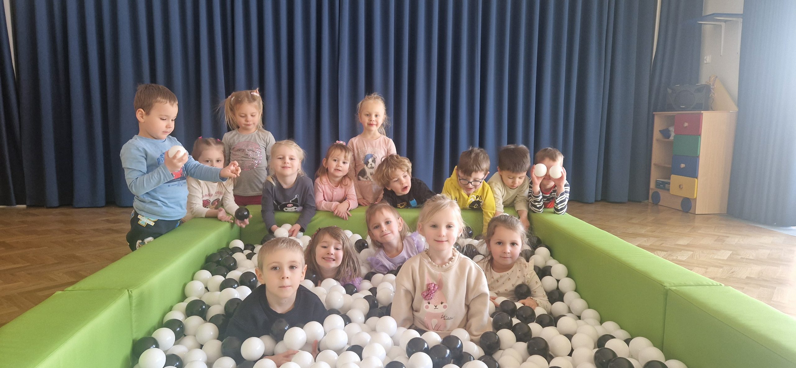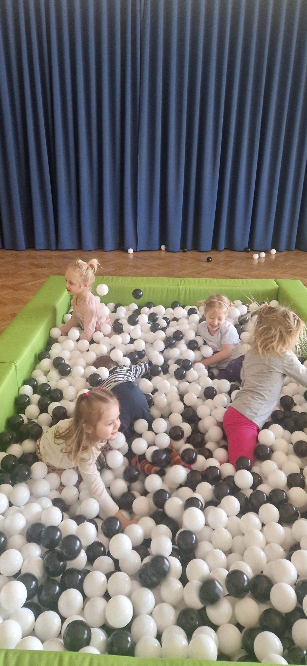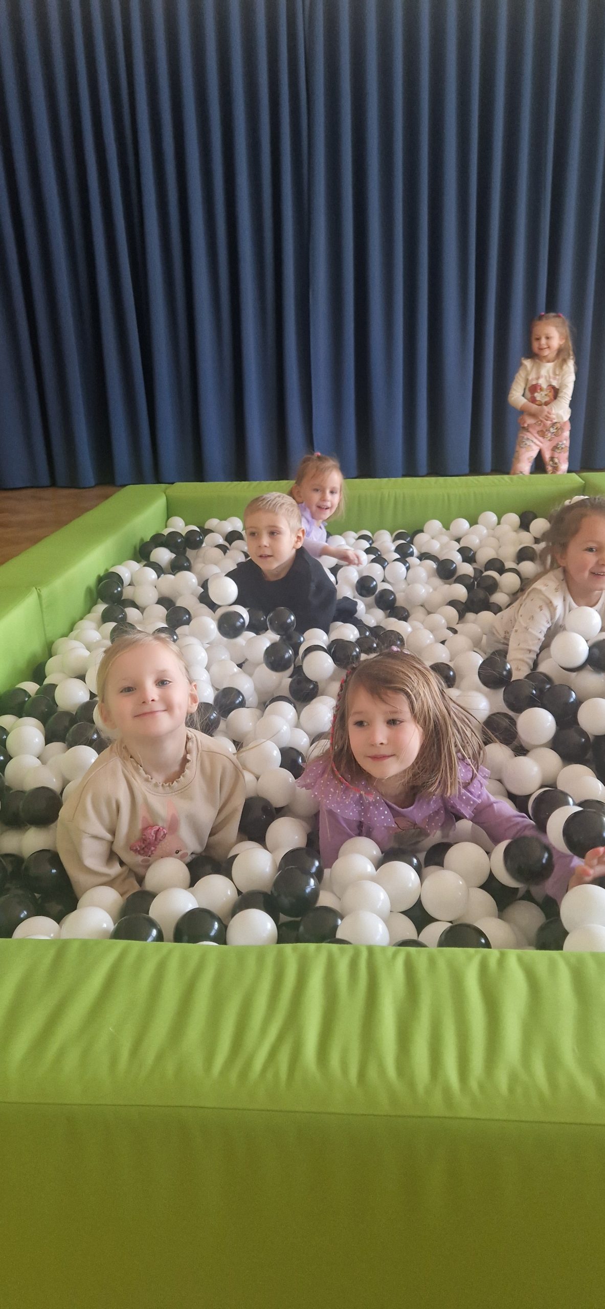 W naszym przedszkolu w dniu wczorajszym pojawiła się nowa atrakcja – basen z kolorowymi kulkami. Dzieci z ogromną radością i entuzjazmem korzystały