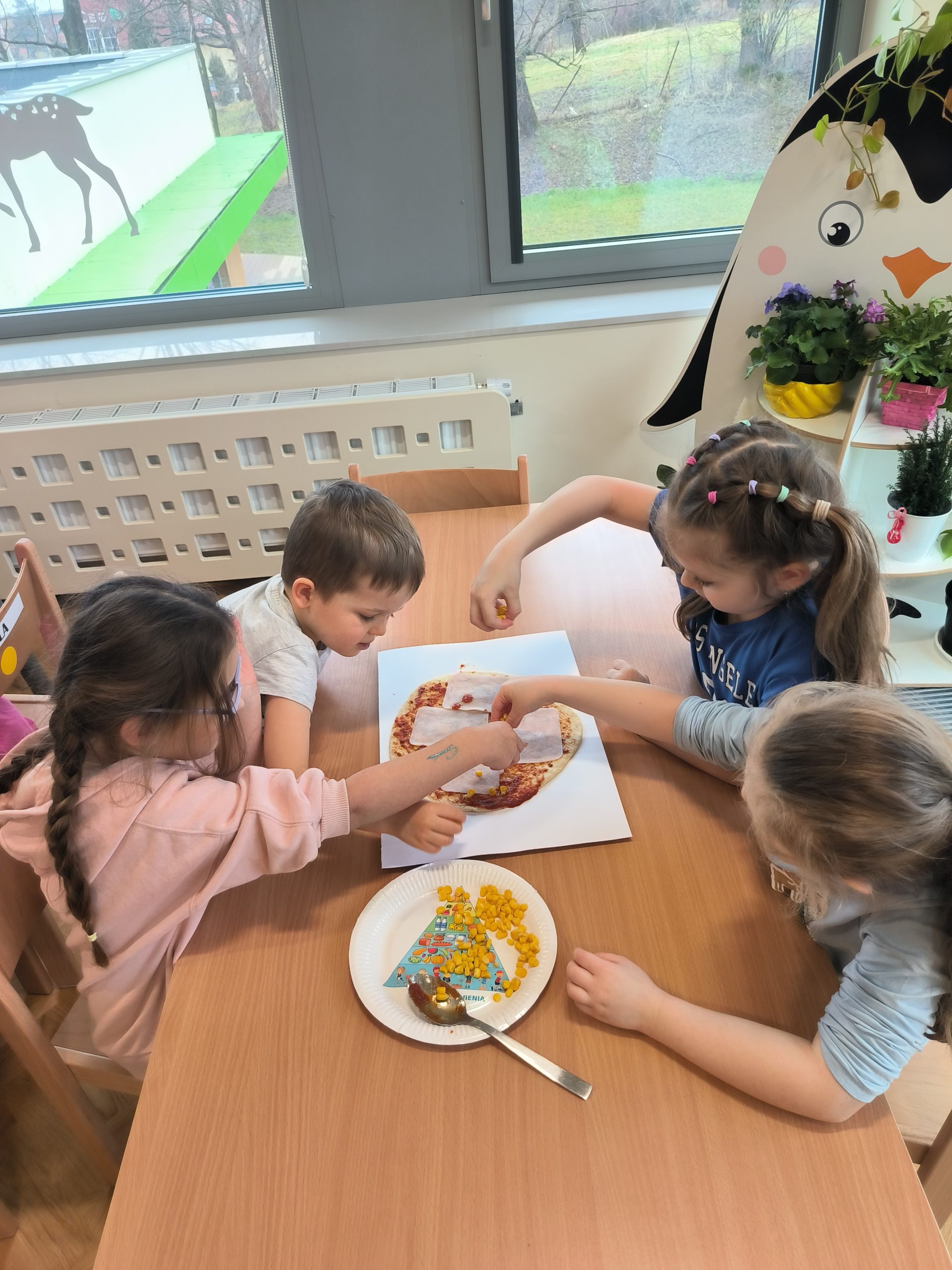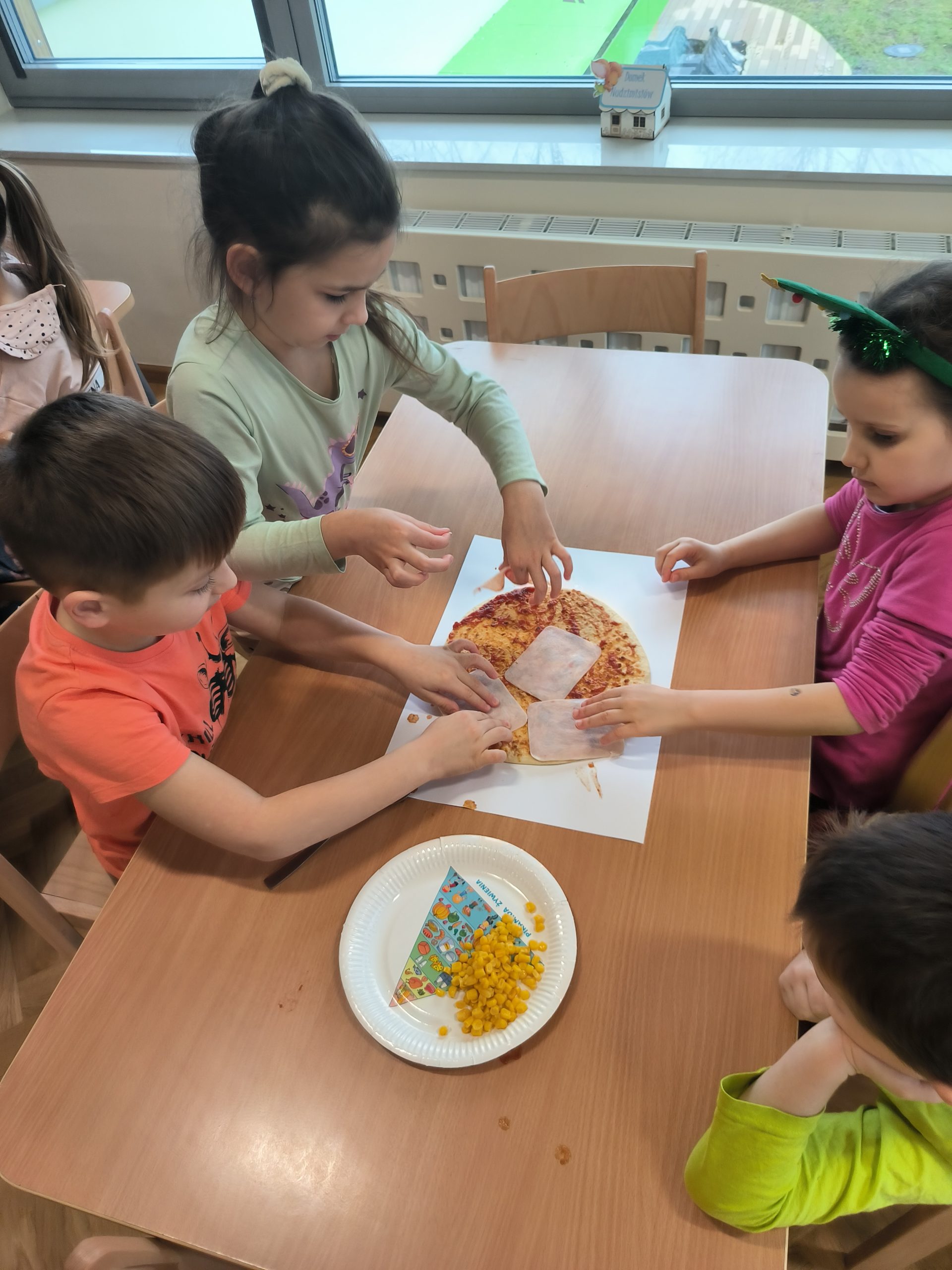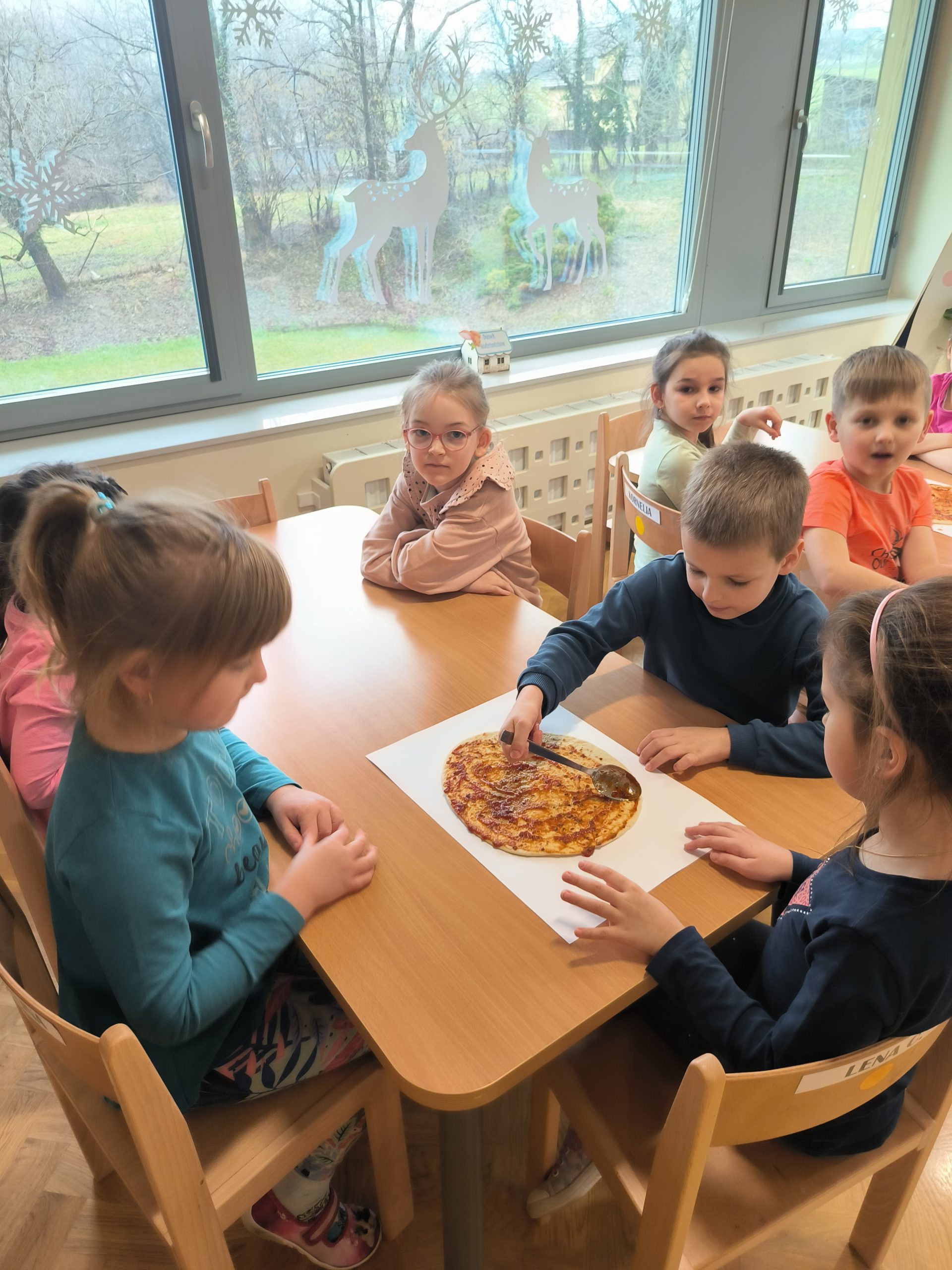 9 lutego obchodziliśmy w naszej grupie Dzień Pizzy. Tego dnia nasza sala zamieniła się w prawdziwą, włoską pizzerie. Na zajęciach dzieci miały okazję zobaczyć jak powstaje ten kultowy włoski placek i jakich składników potrzeba, aby go przygotować. Poznały historię jego powstania oraz dowiedziały się, z którego kraju pochodzi. Z tej okazji również samodzielnie przygotowaliśmy przepyszne pizzę, a następnie wszyscy ze smakiem je zjedli.