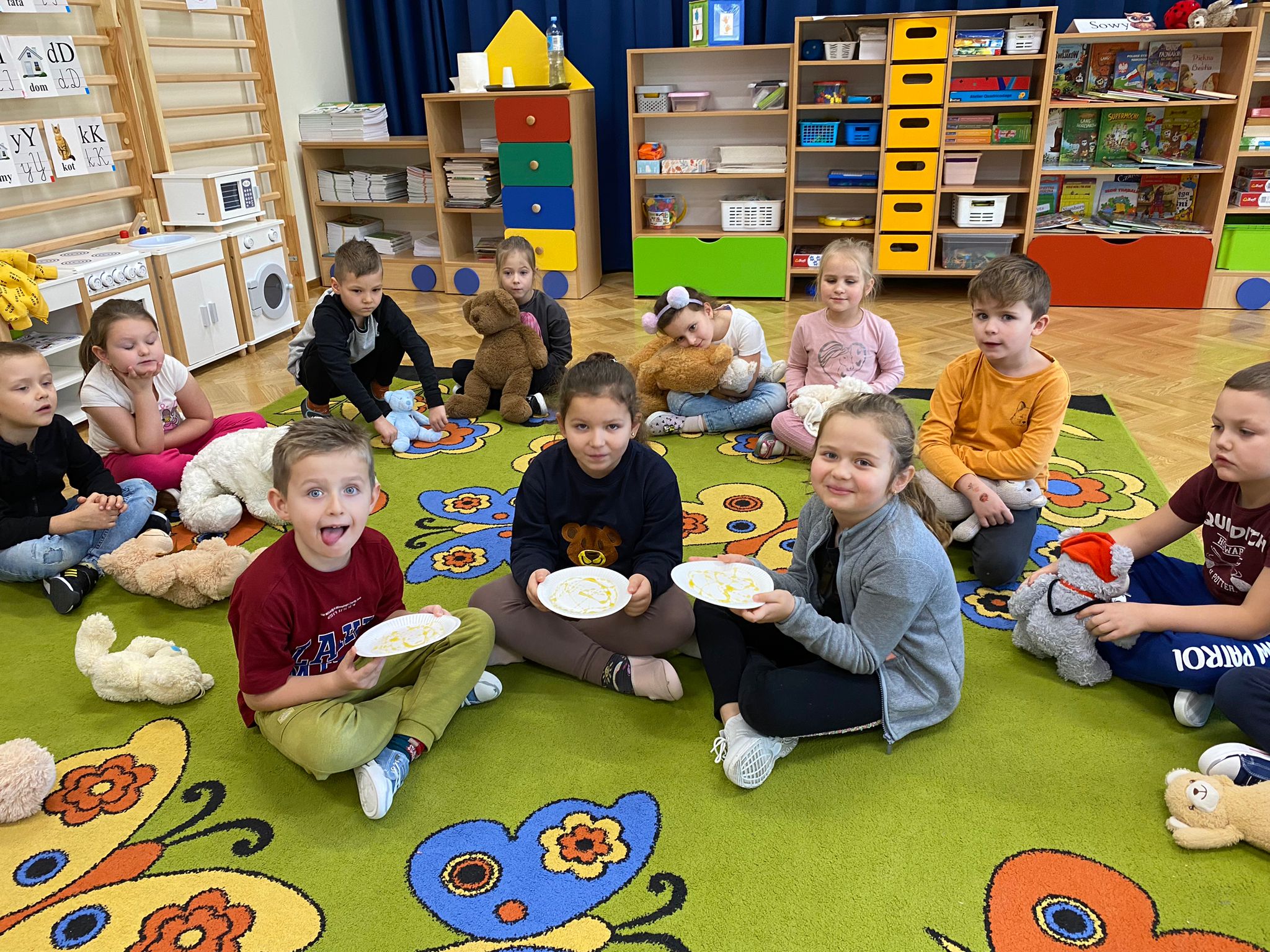 25 listopada na całym świecie obchodzony jest dzień pluszowego misia. Zabawka ta od prawie 120 lat towarzyszy dzieciom pod każdą szerokością geograficzną, ciesząc zarówno tych najmłodszych, jak i tych nieco starszych. Nasza grupa w tym dniu brała udział w zabawach i konkursach „misiowych” , podczas których było mnóstwo radości i przyjemności! Wspólnie poznaliśmy historię powstania pierwszego pluszowego misia. Wszystkie dzieci przyniosły swoje ukochane misie, które towarzyszyły nam cały dzień w zabawach.