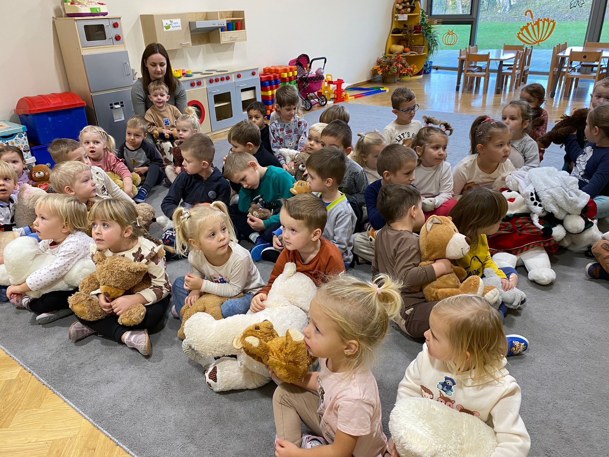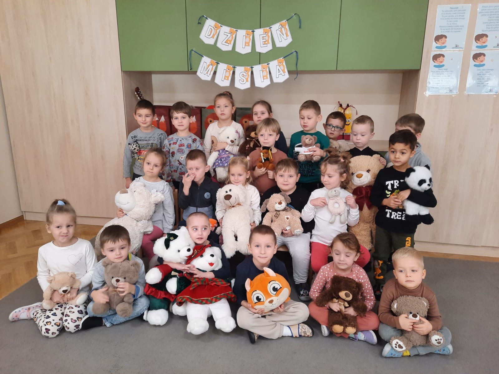 25 listopada swoje święto obchodzi najlepszy przyjaciel maluchów i najmilsza Przytulanka – Pluszowy Miś. ,,Wiewiórki” i ,,Zajączki” spotkały się aby wspólnie bawić się wraz z misiami, które dzieci przyniosły do przedszkola. Dzieci zapoznały się z historią Pluszowego Misia, śpiewały piosenki, rozpoznawały imiona misiów ze znanych bajek a także kosztowały najlepszego przysmaku misiów – pysznego miodku. Na podwieczorek panie kucharki przygotowały przepyszne ciasto. Dziękujemy!