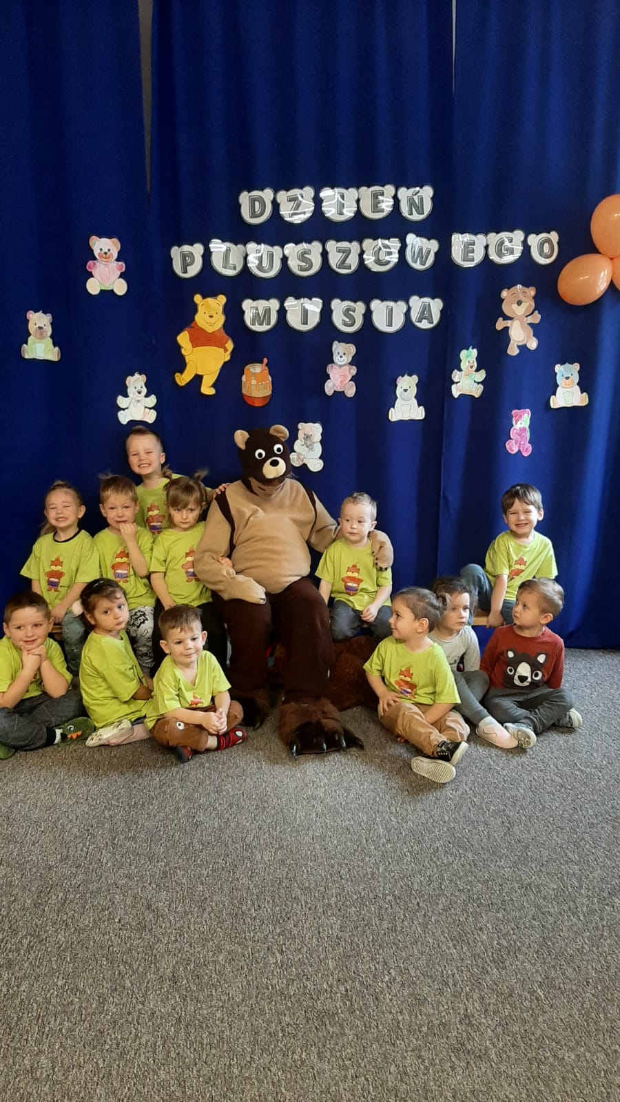 Podczas Dnia Pluszowego Misia prowadzone były różne zajęcia związane z pluszowymi misiami m.in. taniec z misiem, zabawy ruchowe z misiem. Dzieci wykonywały różne prace plastyczne. Przedszkolaki poznały również różne bajki o misiach. Dużą niespodzianką okazała się wizyta dużego niedźwiadka, który bawił się z nami wesoło. Misie na pamiątkę tego miłego dnia zabrały do domu misia wykonanego ze ściereczki. Dzień ten dostarczył przedszkolakom wiele uśmiechu i radości.