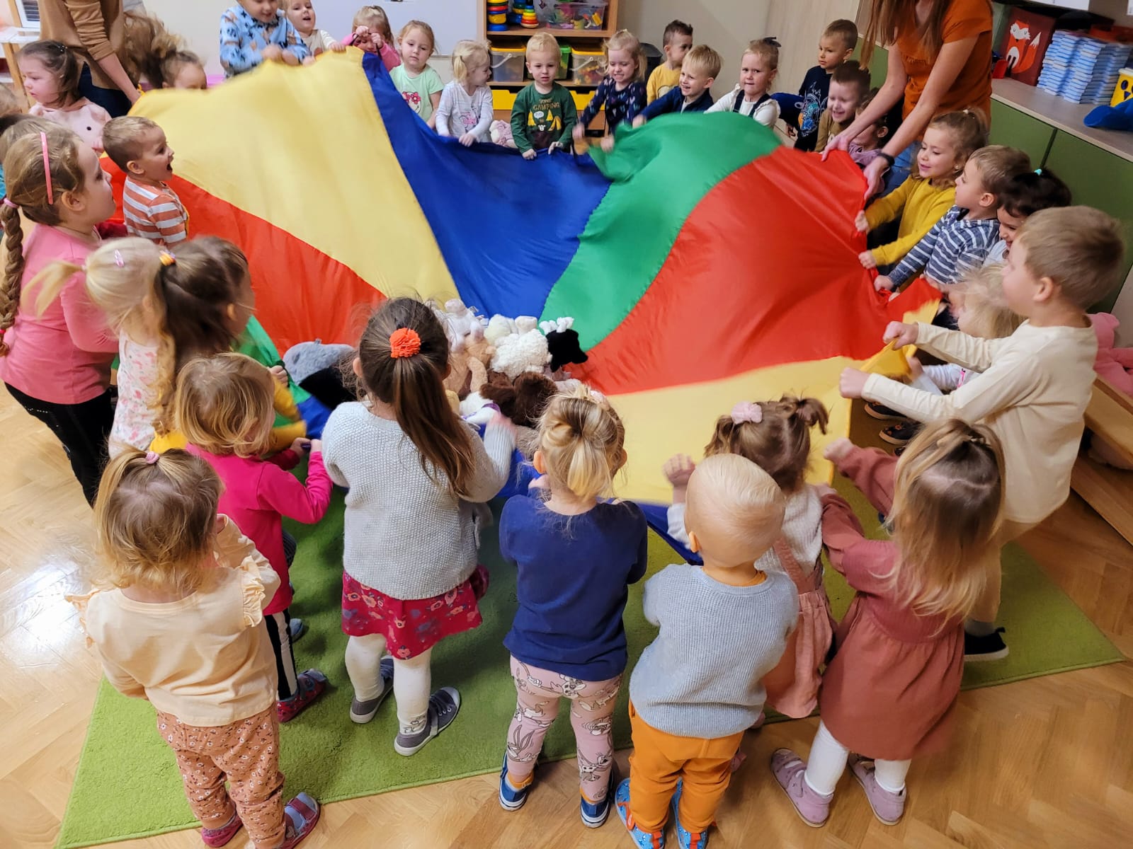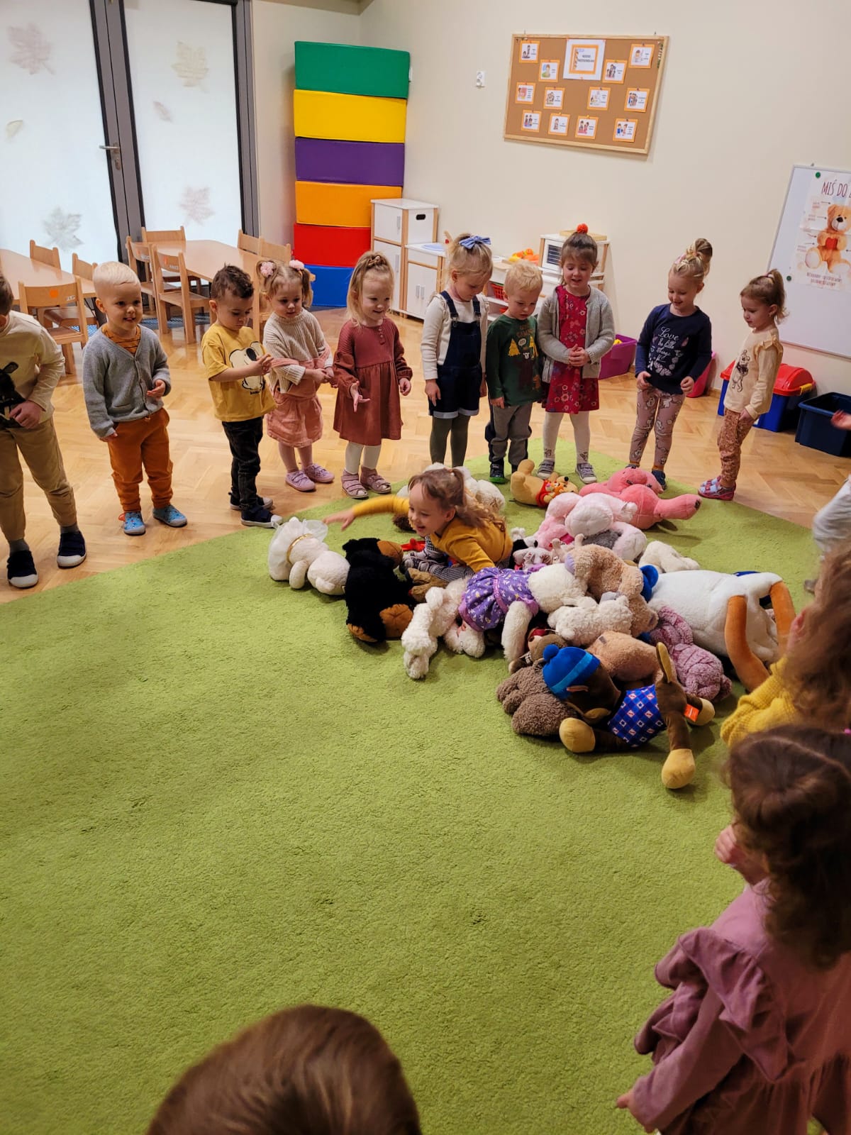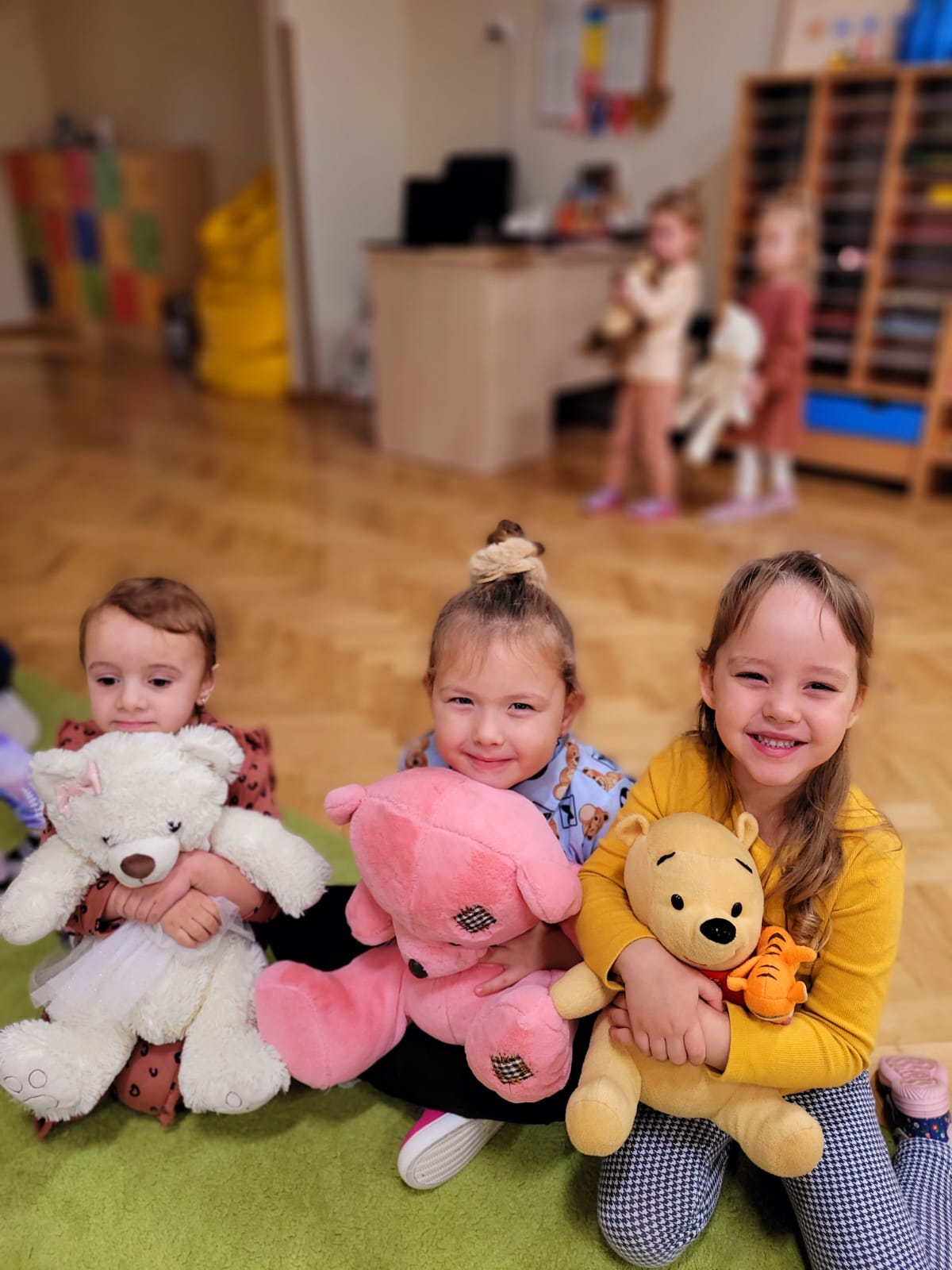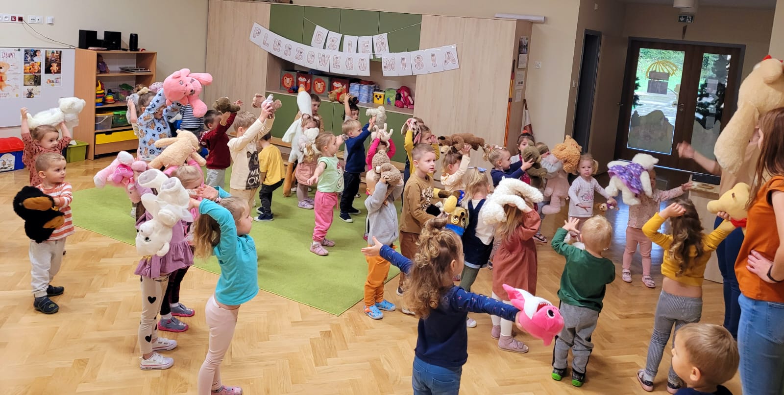 W dniu 24 listopada Misie wspólnie z grupą „Jeżyki” uczestniczyły w obchodach Światowego Dnia Pluszowego Misia. W tym wesołym dniu na przedszkolaki czekało wiele atrakcji i niespodzianek. Zostały zaproszone do wspólnej zabawy ze swoimi misiami. A jak wiemy wszystkie dzieci kochają pluszowe niedźwiadki, dlatego obie grupy wspólnie, hucznie świętowały ten wyjątkowy dzień.
