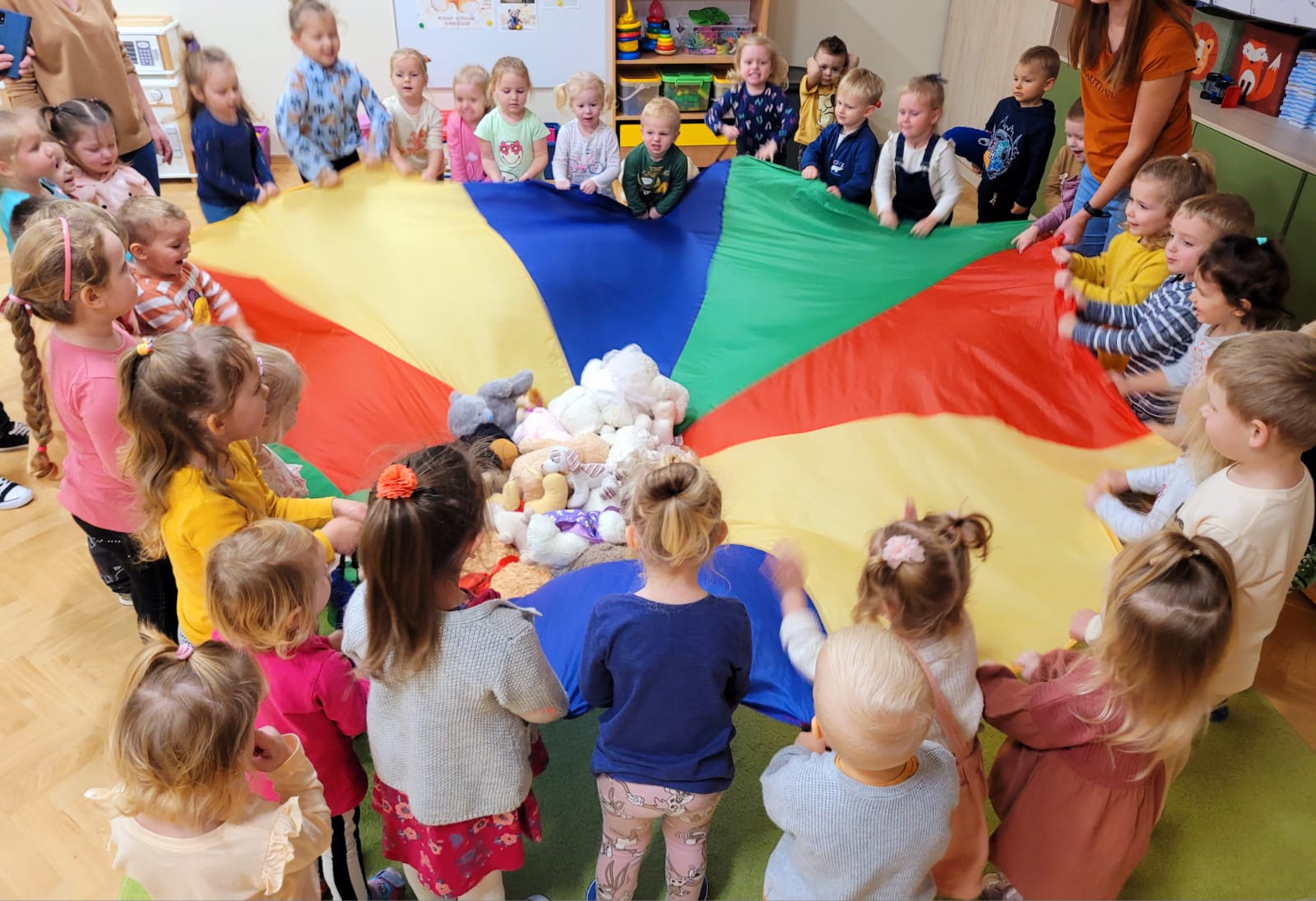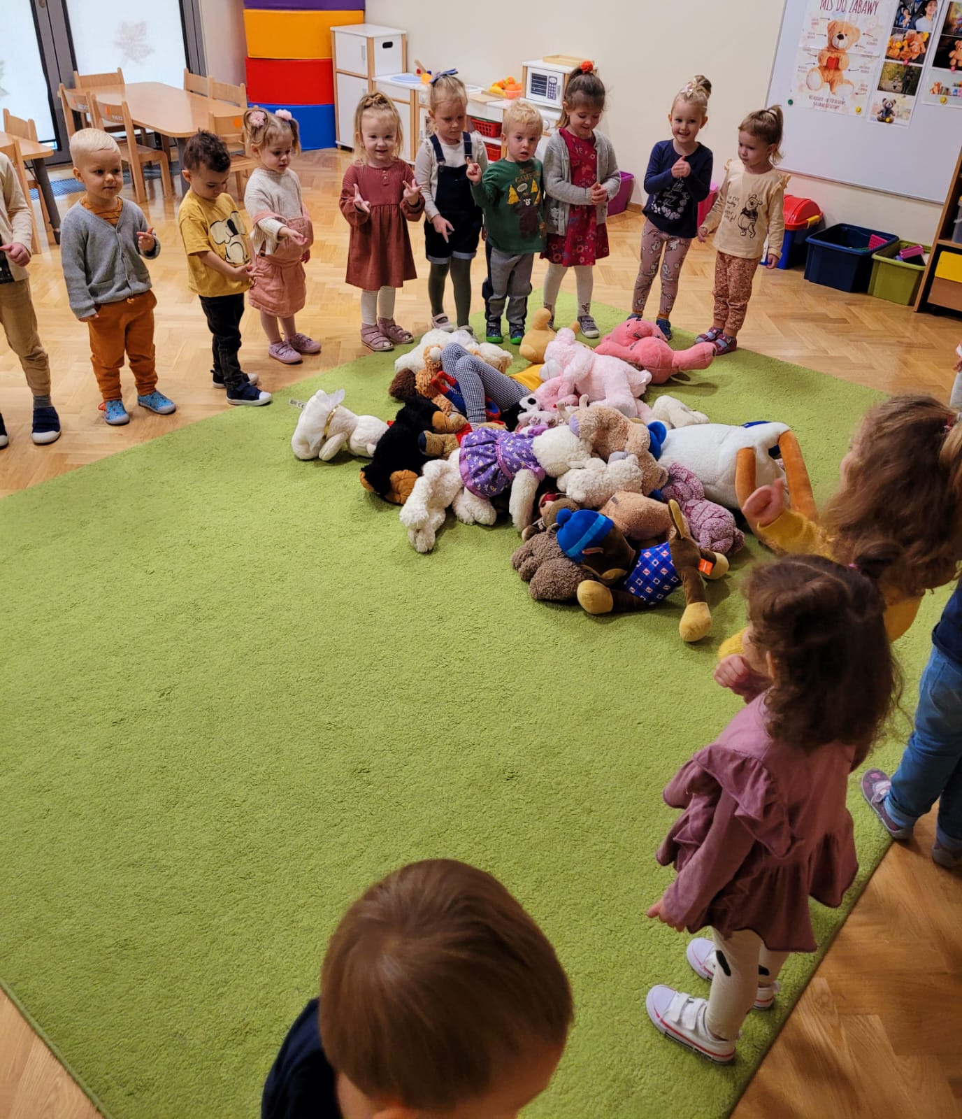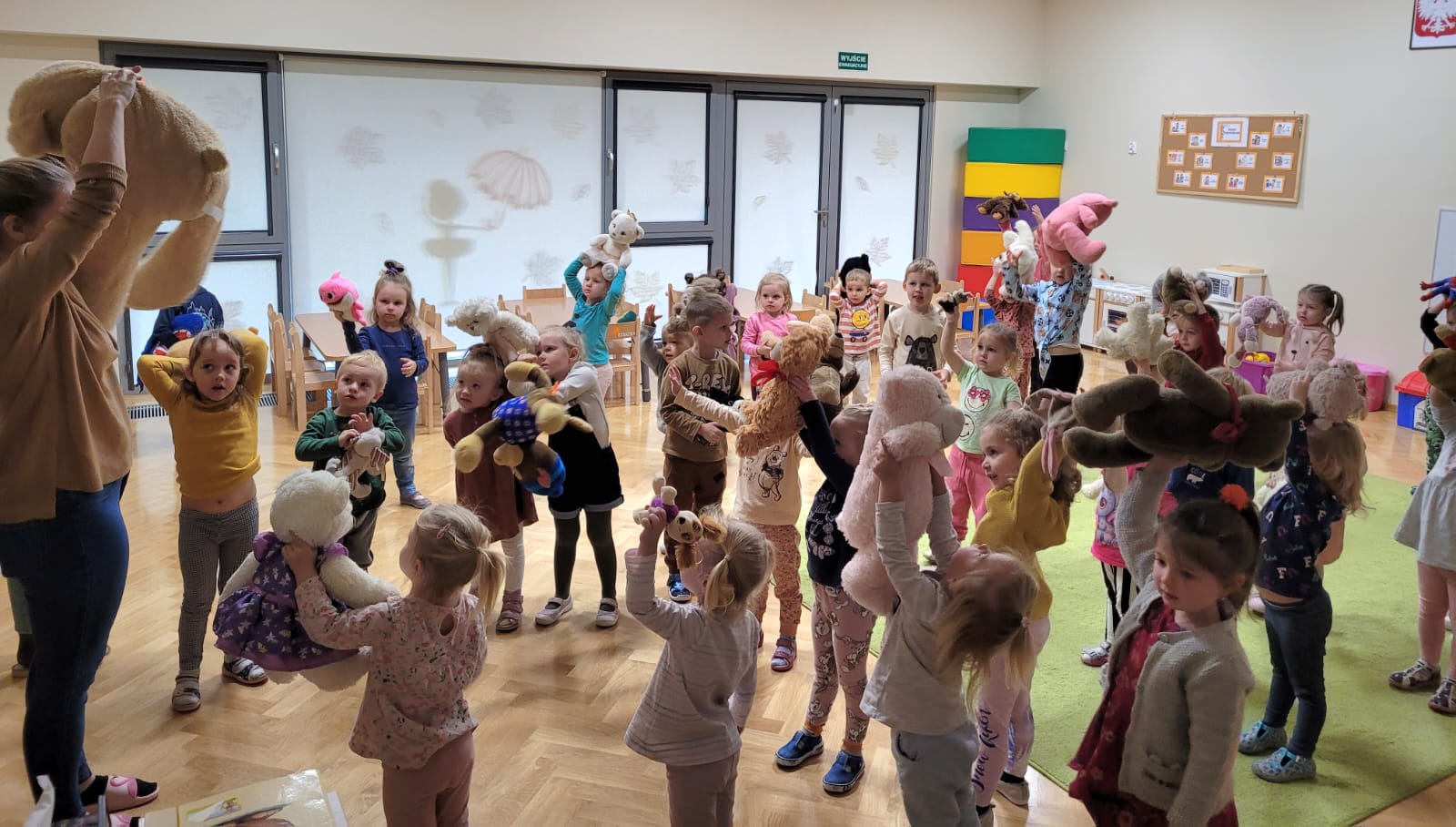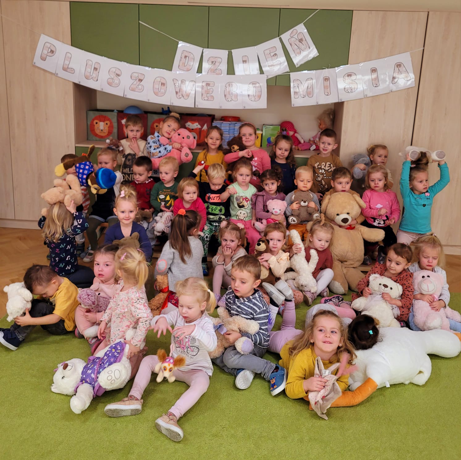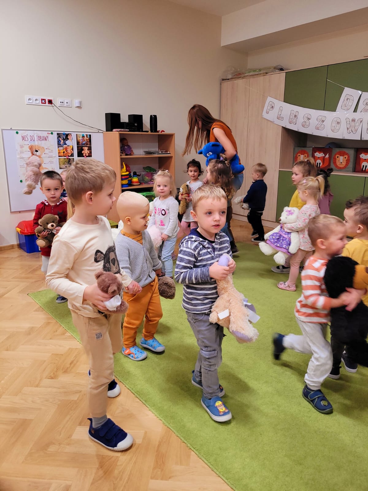 W dniu 24 listopada „Jeżyki”wspólnie z grupą „Misiów” uczestniczyły w obchodach Światowego Dnia Pluszowego Misia. W tym wesołym dniu na przedszkolaki czekało wiele atrakcji i niespodzianek. Zostały zaproszone do wspólnej zabawy ze swoimi misiami. A jak wiemy wszystkie dzieci kochają pluszowe niedźwiadki, dlatego obie grupy wspólnie, hucznie świętowały ten wyjątkowy dzień.