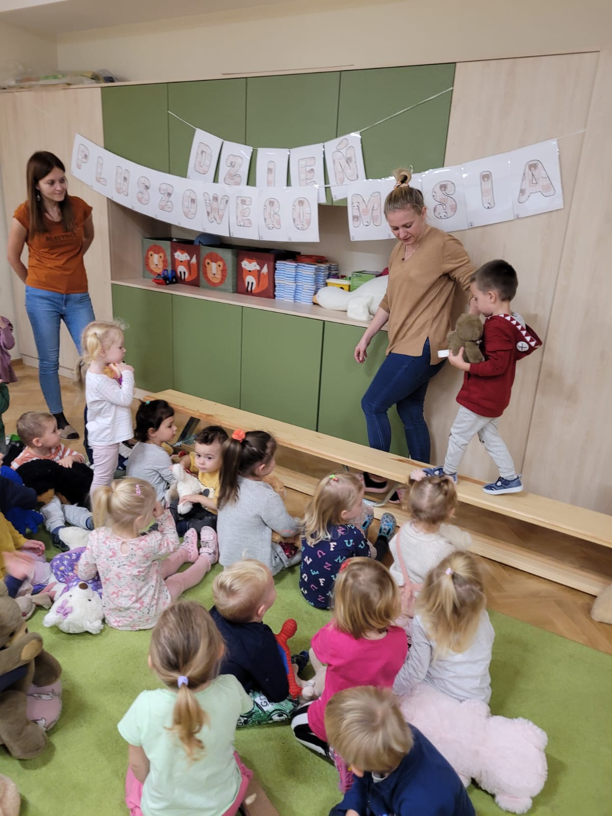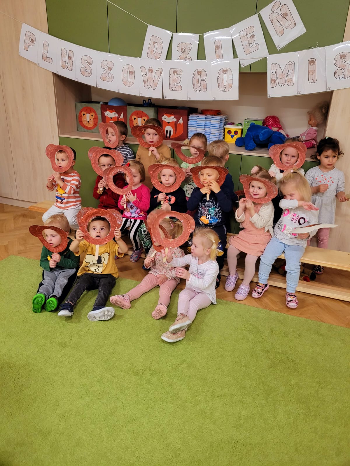 Tego dnia dzieci mogły przejść się po wybiegu niczym prawdziwi modele oraz modelki i zaprezentować wszystkim swoje misie. Brały udział w pogadankach na temat swojego pluszowego misia, bawiły się przy piosenkach: „Jadą misie”, „Stary niedźwiedź mocno śpi”, w zabawach ruchowych z misiem, z chustą animacyjną, składaniu obrazka z części. Na koniec przedszkolaki wykonały wyjątkowe misie, które można podziwiać na wystawie w holu przedszkola. Specjalnie przygotowana fotoramka pozwoliła dzieciom zmienić się na chwilę w swoją ulubioną przytulankę. Na koniec zajęć każde dziecko otrzymało niespodziankę. Dzień upłynął nam na wspólnej zabawie, z której radości było co niemiara.