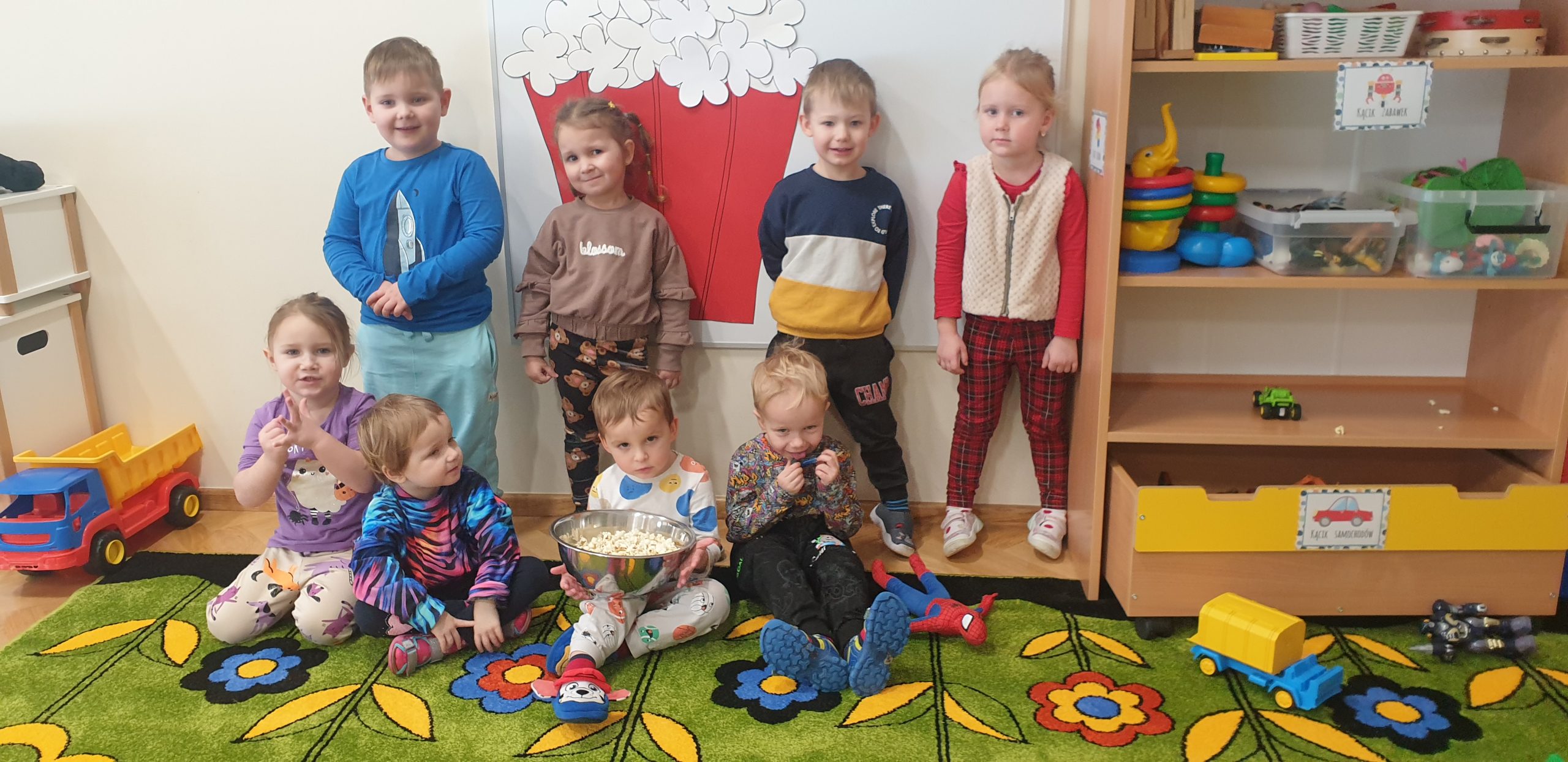 19 stycznia obchodziliśmy w przedszkolu nietypowe święto wraz z  grupą „Misiów” – Dzień Popcornu. To była doskonała okazja do zorganizowania kreatywnych zabaw i aktywności z przysmakiem wszystkich dzieci – popcornem. Dzieci dowiedziały się, z czego powstaje popcorn i jak go przygotować. Oglądały kolbę, ziarna kukurydzy i popcornu, a także obserwowały proces powstawania popcornu. Były zabawy matematyczne z popcornem, praca plastyczna i oczywiście…. seans kinowy z tą pyszną przekąską.