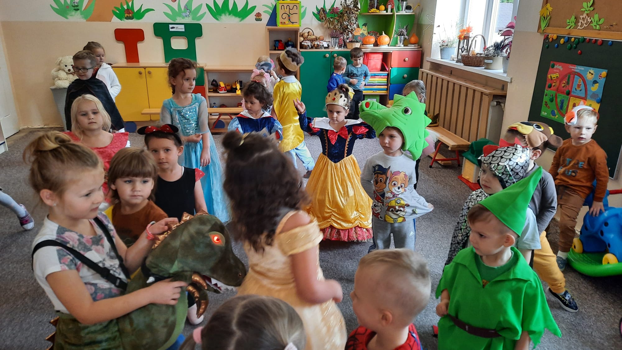 Bajki odgrywają ważną rolę w życiu każdego malucha. Bawią, rozwijają wyobraźnię, wzbogacają słownictwo. Postacie z bajek są uwielbiane przez dzieci, często stają się także ich przyjaciółmi. Postacie z bajek mają swoje święto, które obchodziliśmy 7 listopada. Dzięki dzieciom, które do przedszkola przybyły przebrane w piękne bajkowe stroje przenieśliśmy się w ten wyjątkowy świat przygód. Wspólnie czytaliśmy bajki, tańczyliśmy do melodii znanych dzieciom bajek. Przeniesienie dzieci w świat bajek sprawiło przedszkolakom dużo radości.