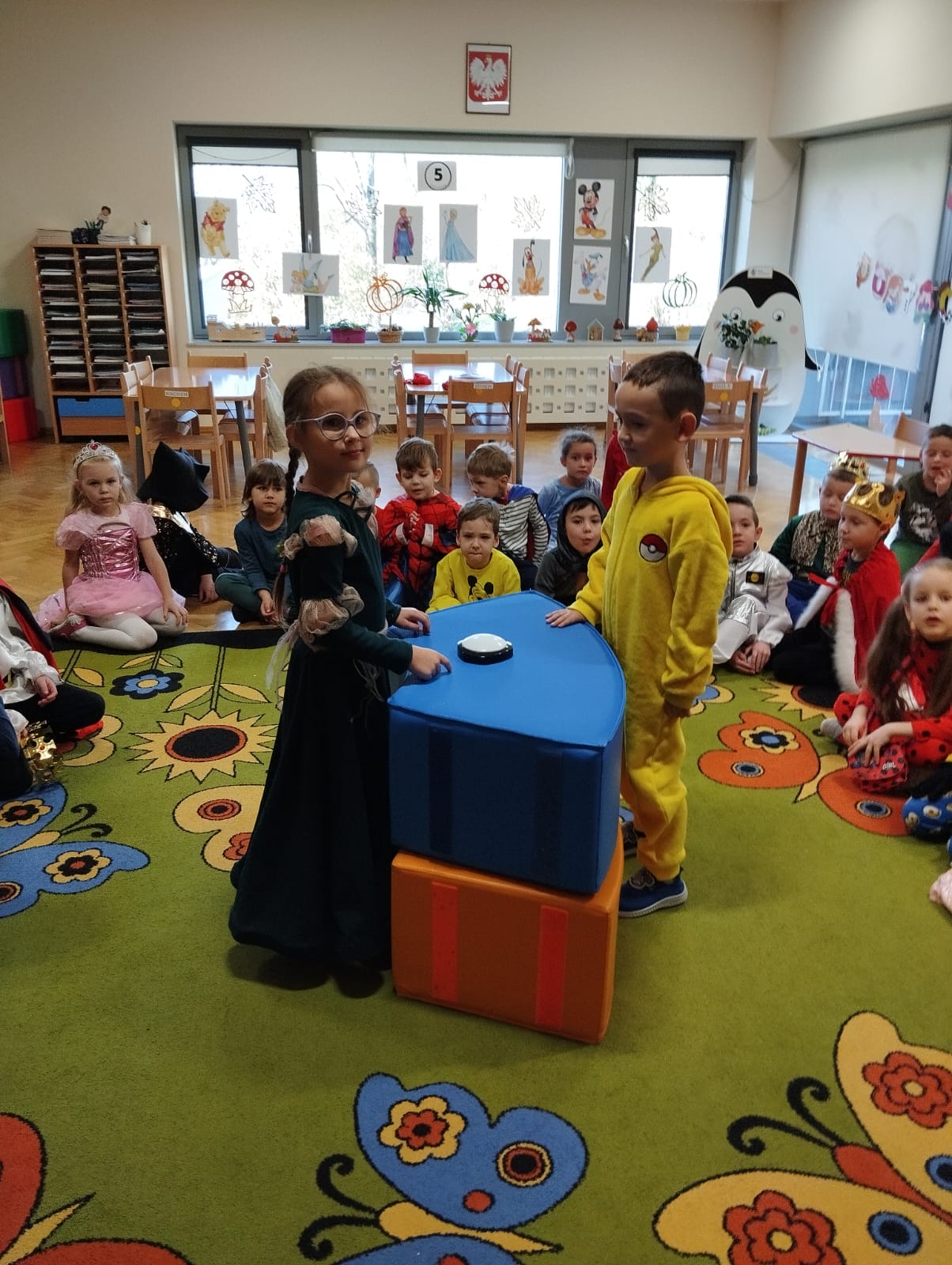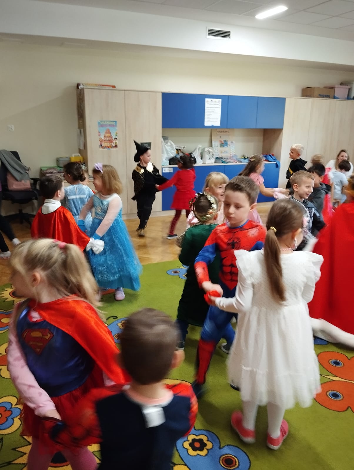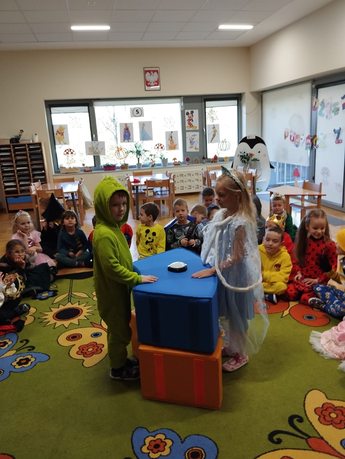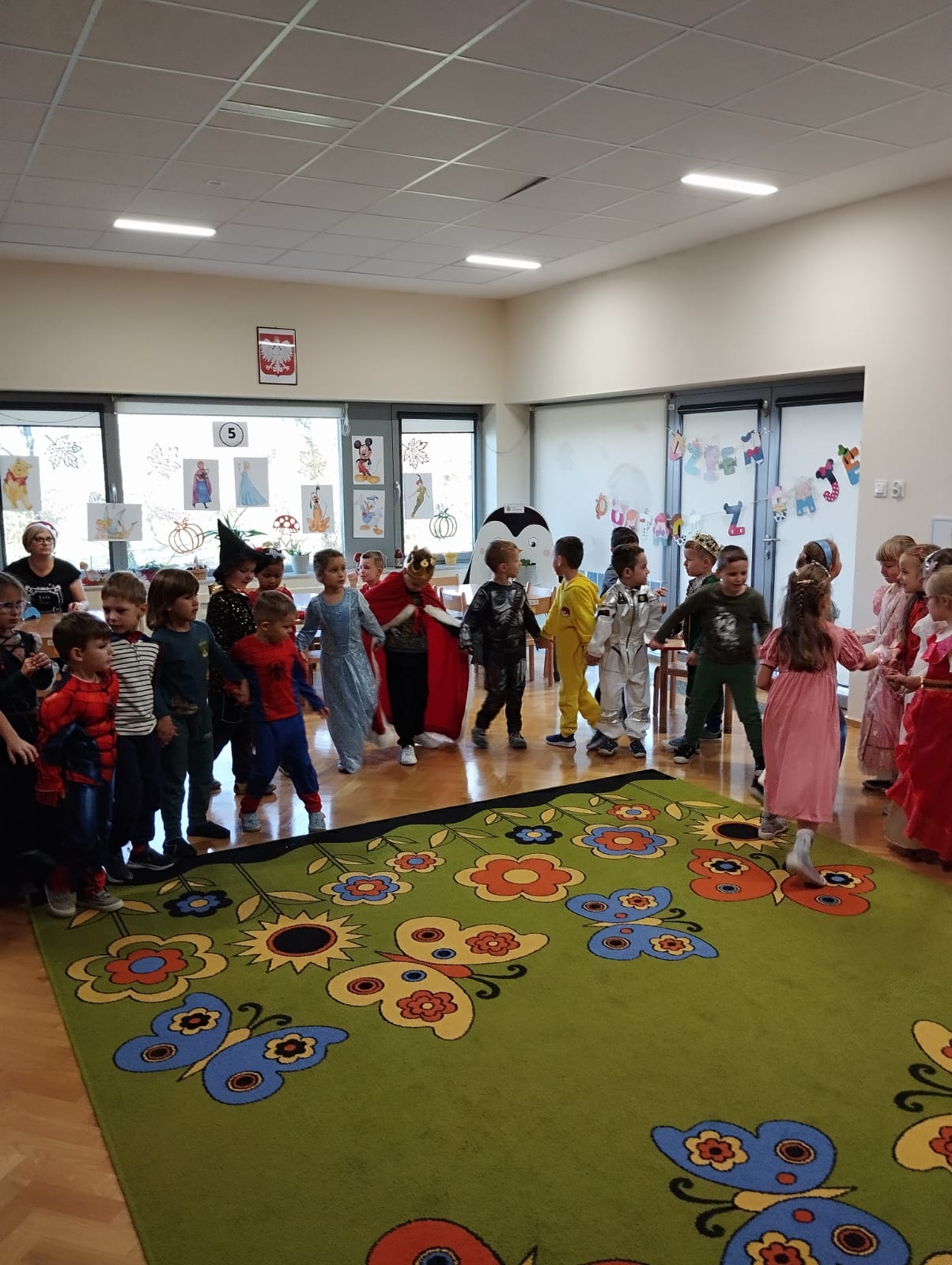 Z tej okazji dzieci z grupy V i VI wyruszyły w podróż do krainy bajek. Obchody Międzynarodowego Dnia Postaci z Bajek obfitowały w przygotowane przez nauczycielki zabawy i konkursy, których celem było utrwalenie oraz wzbogacenie dziecięcej wiedzy na temat znanych i lubianych bajek. Był to dzień kolorowy i wesoły! Dzieci przebrane się w bajkowe stroje, uczestniczyły w konkursach i quizach. Były zabawy wymagające wykazania się znajomością treści bajek, tych znanych i mniej znanych, m.in. dzieci rozwiązywały zagadki. Były muzyczne zgadywanki bajkowe, zabawy ruchowe oraz prezentacja dziecięcych bajkowych przebrań. Wszystkim towarzyszył uśmiech.
