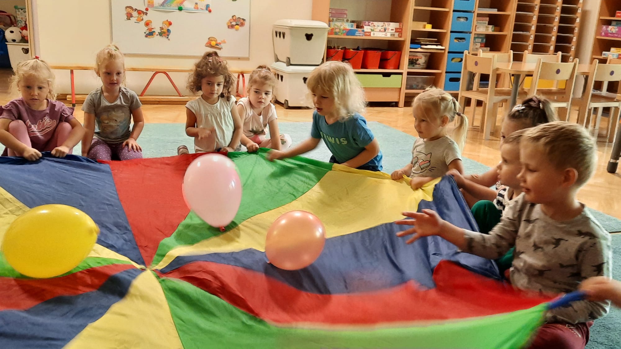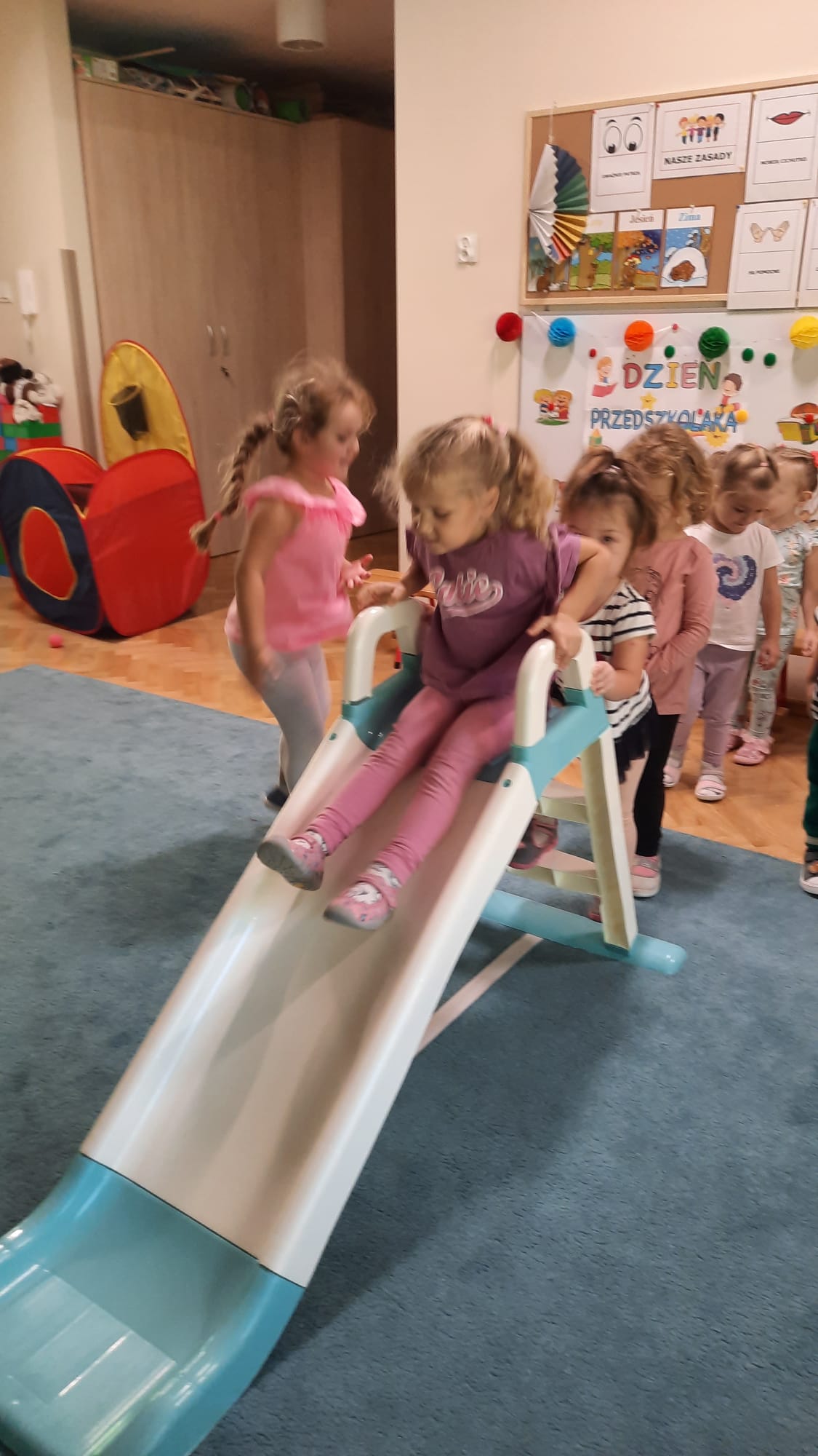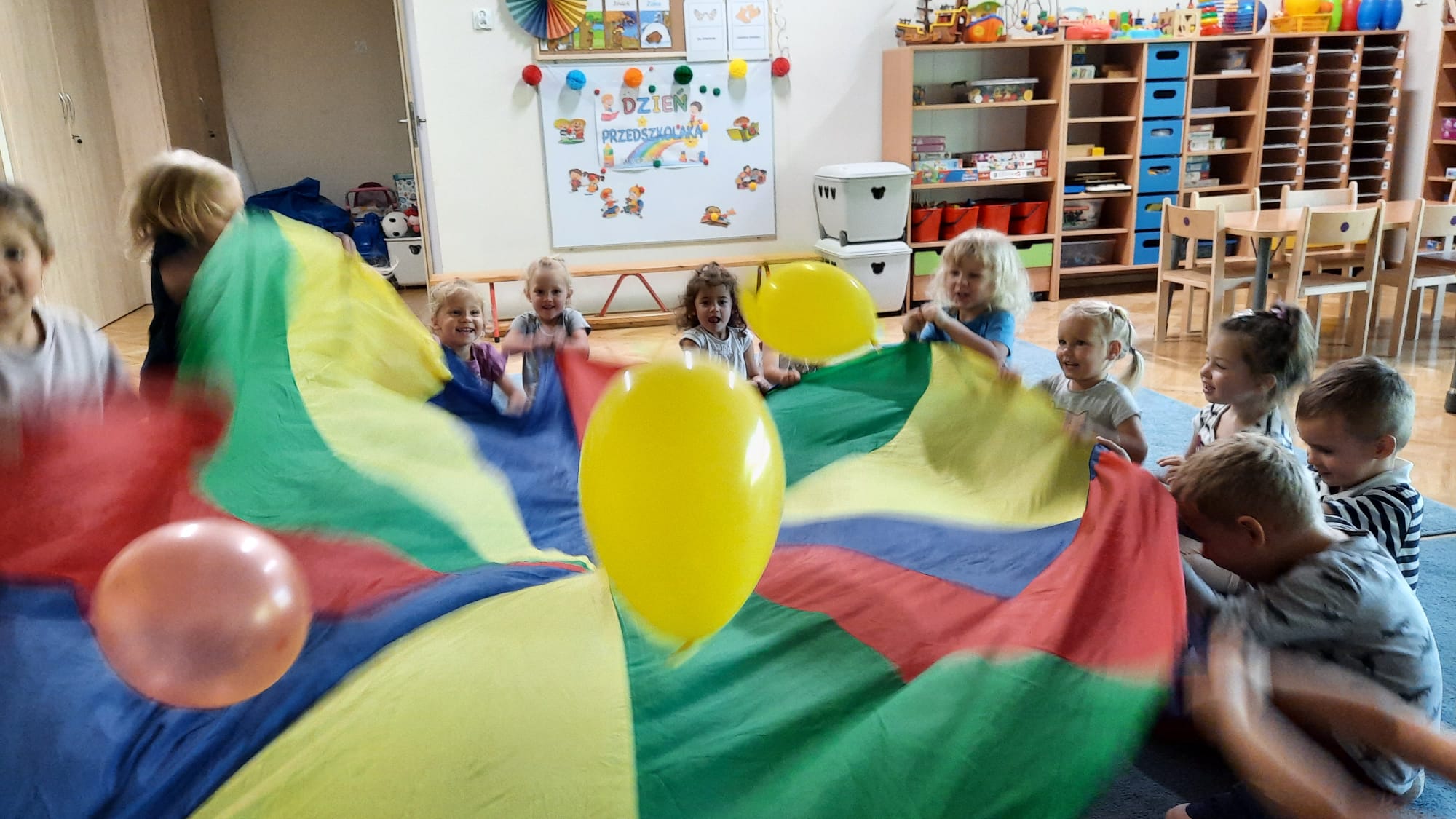 20 września 2023 r. w naszym przedszkolu obchodziliśmy ważne święto Dzień Przedszkolaka. Co roku, w całej Polsce, właśnie wtedy przedszkolaki świętują swój dzień. Święto to ma na celu podkreślenie wagi edukacji przedszkolnej w rozwoju i edukacji dzieci. W tym roku na sportowo, a co za tym idzie wszystkie przedszkolaki były ubrane w stroje sportowe. Dzieciaki biegały, pokonywały tor przeszkód oraz ćwiczyły swoją sprawność ruchową. Misie uczestniczyły w wesołych zabawach, przepełnionych różnorodnymi atrakcjami, pojawiły się, m.in.: tunele do czołgania, zjeżdżalnia, mini basen z kulkami. Było przy tym mnóstwo radości, śmiechu i głośnego dopingowania kolegów i koleżanek. Nie zabrakło też tańców z balonami oraz zabaw z chustą animacyjną. Radość i śmiech świadczyły o wspaniałej zabawie. Były piękne życzenia i upominki od Pani Dyrektor.