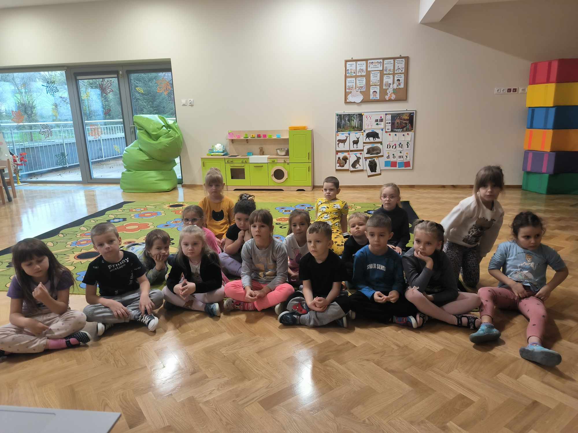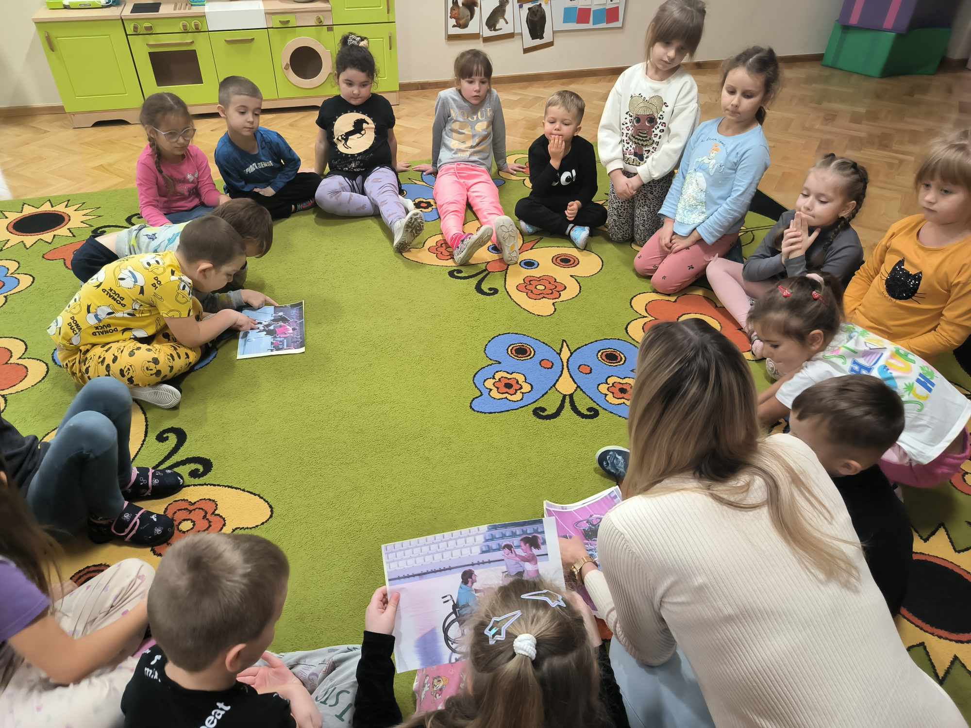Dnia 16 listopada nasza grupa obchodziła „Dzień Tolerancji”. Dzieci wysłuchały opowiadania pt. „Piłka dla wszystkich”. Następnie odbyła się rozmowa na temat wydarzeń i zachowań bohaterów tej historii. Grupa oglądała filmik edukacyjny pt. „Tolerancja”, który uczy akceptacji „odmienności” na podstawie baśni pt. „Brzydkie Kaczątko”. Dzięki temu dzieci mogły zapoznać się z tym trudnym pojęciem. Przedszkolaki aktywnie brały udział w precyzowaniu definicji tego wyrażenia oraz dyskusji dotyczącej zachowania i reakcji w sytuacjach związanych z przejawem tolerancji lub jej braku. „Zajączki” uczestniczyły w quizie, w którym odpowiadały na pytania, a tym samym miały okazję wypowiadać się, jak zachowałyby się w danych sytuacjach. Wykazały się akceptacją „odmienności”, wrażliwością oraz gotowością służenia pomocą. Na koniec zajęć, dzieci malowały kolorowanki tematyczne. Każde dziecko otrzymało odznakę z okazji „Dnia Tolerancji”, co wywołało uśmiechy radości na wszystkich twarzach.