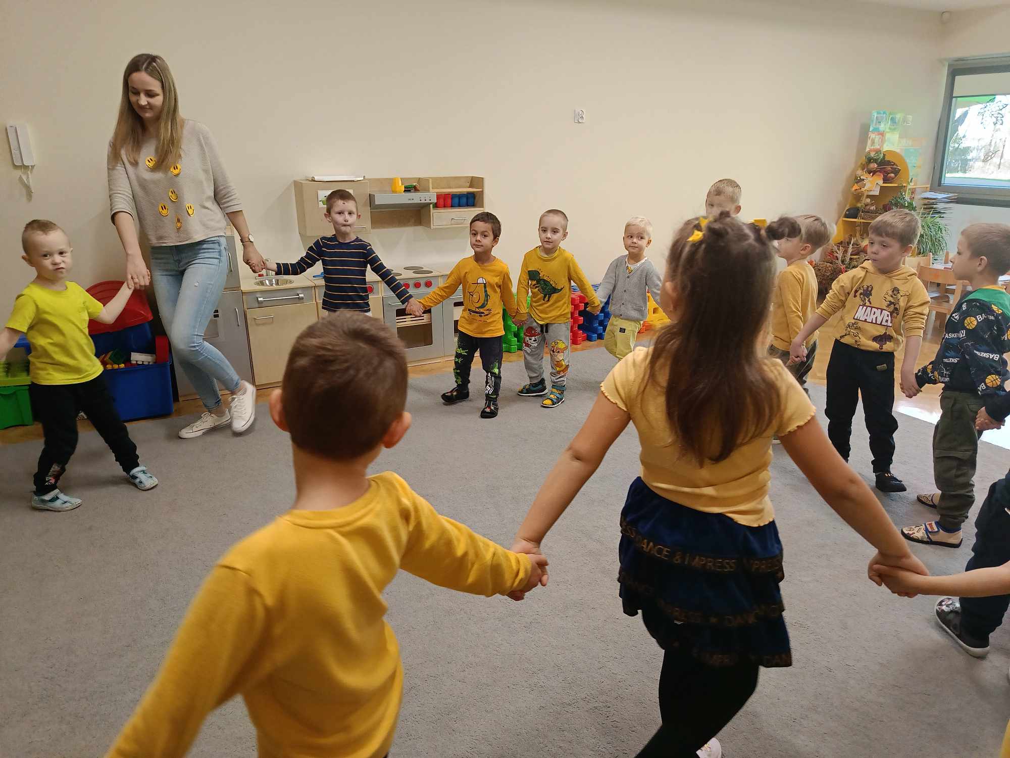 7 października  obchodziliśmy „Światowy Dzień Uśmiechu” i z tej okazji przedszkolaki  wzięły udział w zajęciach, które miały na celu przybliżenie dzieciom znaczenia uśmiechu, a także integrację grupy, stwarzanie okazji do radości ze wspólnej zabawy, poprawę nastroju oraz zachęcanie do wyrażania uśmiechu i życzliwości wobec innych. Dzieci bardzo chętnie uczestniczyły w zabawach oraz  aktywnie i z dużym zaangażowaniem wykonywały różne zadania. Na koniec otrzymały pieczątki z uśmiechniętymi buźkami, które przypominały o tym, by częściej się uśmiechały. Ten dzień był dla wszystkich pełen radości i wesołej zabawy.