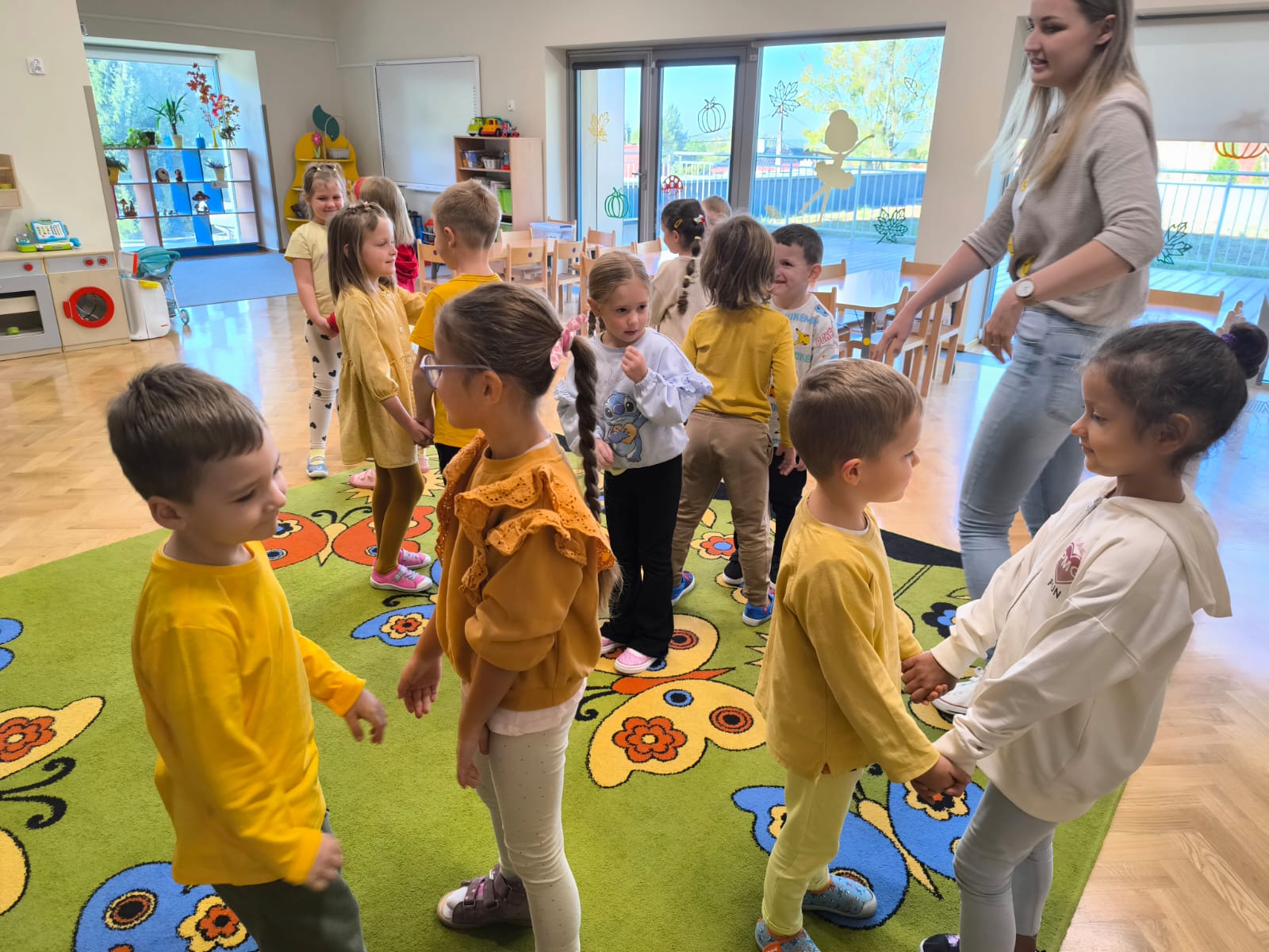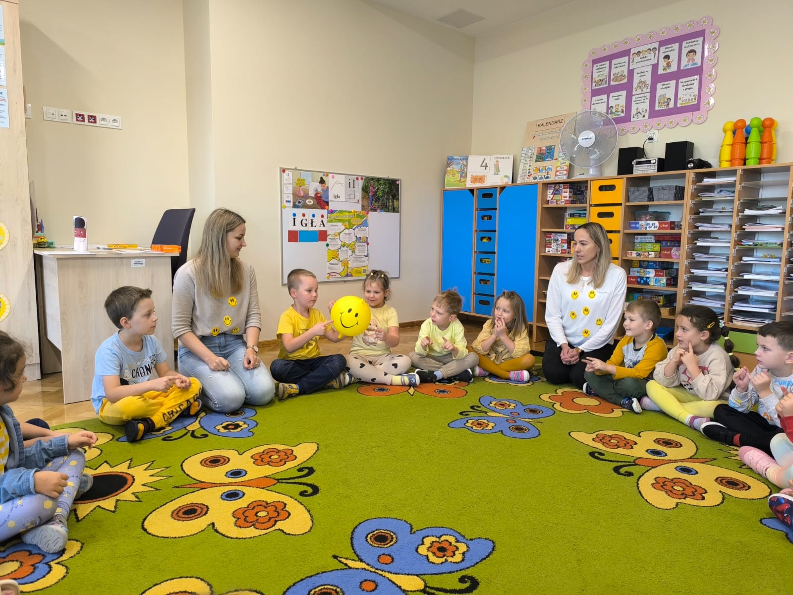 7 października  obchodziliśmy „Światowy Dzień Uśmiechu” i z tej okazji przedszkolaki  wzięły udział w zajęciach, które miały na celu przybliżenie dzieciom znaczenia uśmiechu, a także integrację grupy, stwarzanie okazji do radości ze wspólnej zabawy, poprawę nastroju oraz zachęcanie do wyrażania uśmiechu i życzliwości wobec innych. Dzieci bardzo chętnie uczestniczyły w zabawach oraz  aktywnie i z dużym zaangażowaniem wykonywały różne zadania. Na koniec otrzymały pieczątki z uśmiechniętymi buźkami, które przypominały o tym, by częściej się uśmiechały. Ten dzień był dla wszystkich pełen radości i wesołej zabawy.