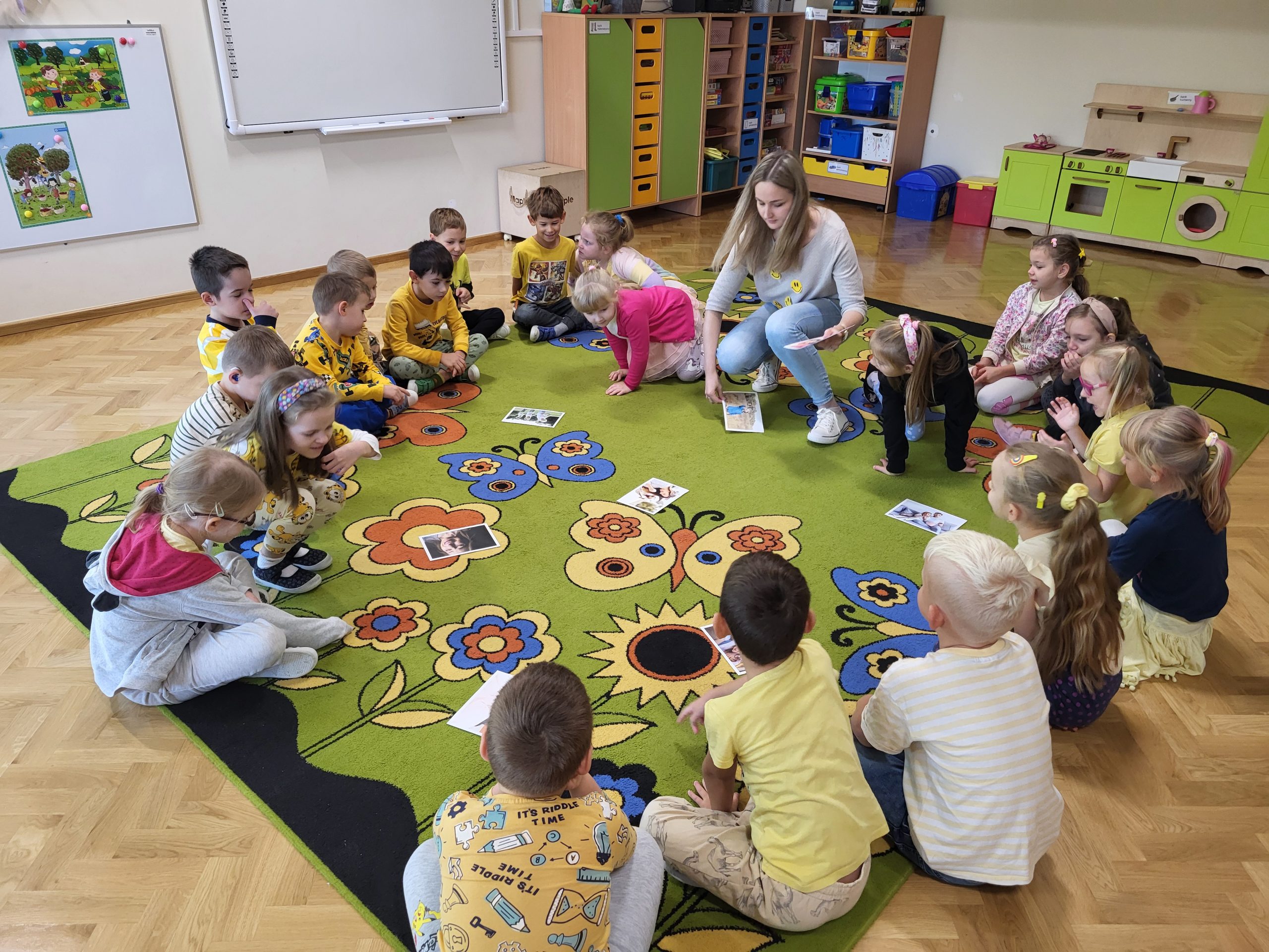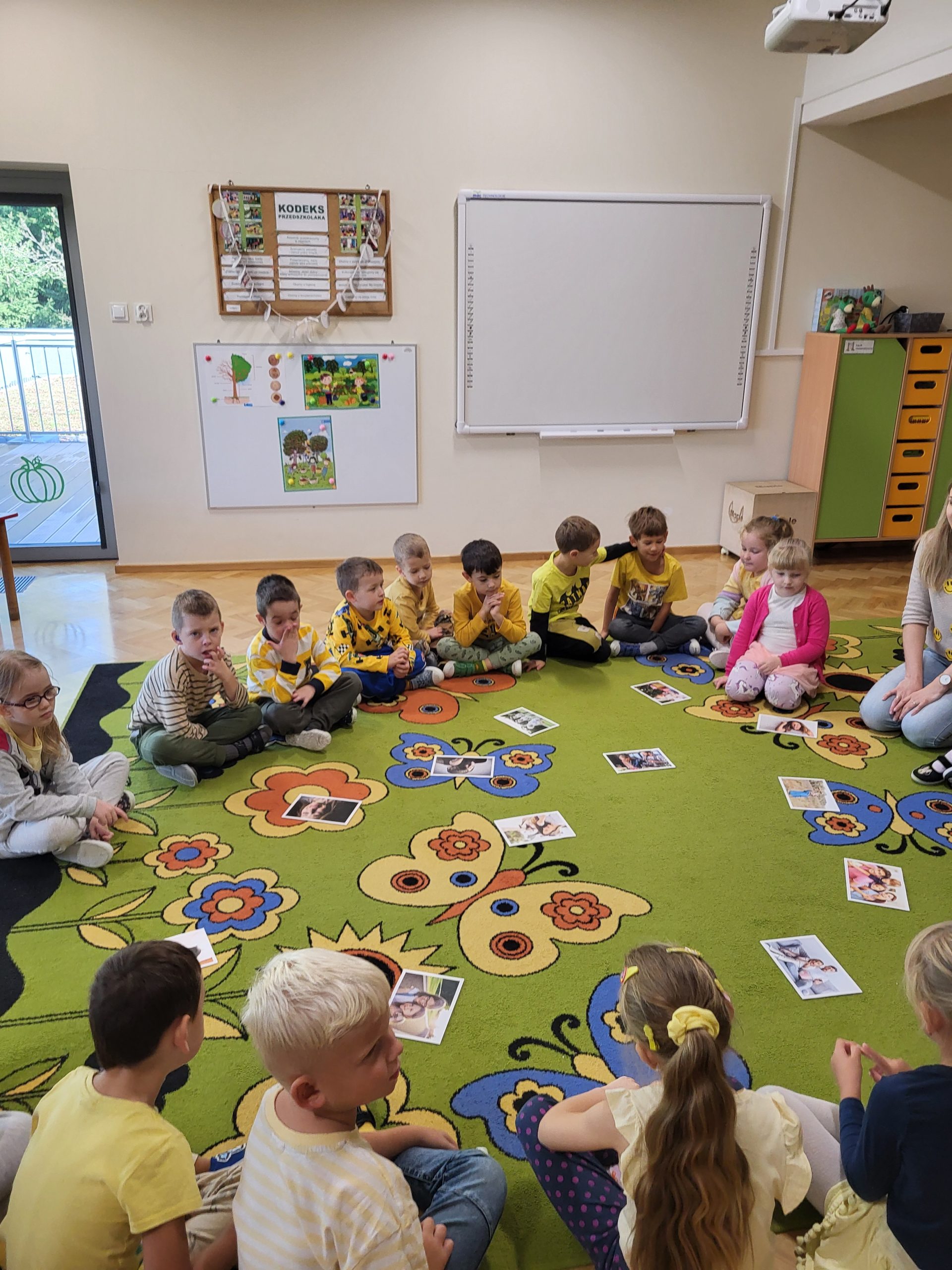 7 października  obchodziliśmy „Światowy Dzień Uśmiechu” i z tej okazji przedszkolaki  wzięły udział w zajęciach, które miały na celu przybliżenie dzieciom znaczenia uśmiechu, a także integrację grupy, stwarzanie okazji do radości ze wspólnej zabawy, poprawę nastroju oraz zachęcanie do wyrażania uśmiechu i życzliwości wobec innych. Dzieci bardzo chętnie uczestniczyły w zabawach oraz  aktywnie i z dużym zaangażowaniem wykonywały różne zadania. Na koniec otrzymały pieczątki z uśmiechniętymi buźkami, które przypominały o tym, by częściej się uśmiechały. Ten dzień był dla wszystkich pełen radości i wesołej zabawy.