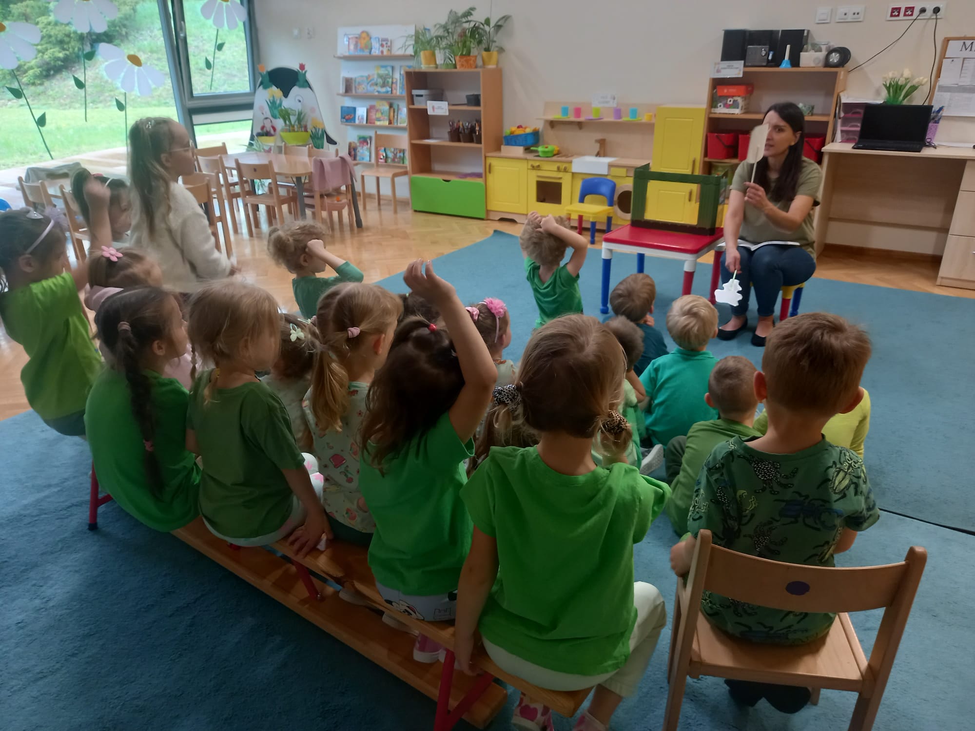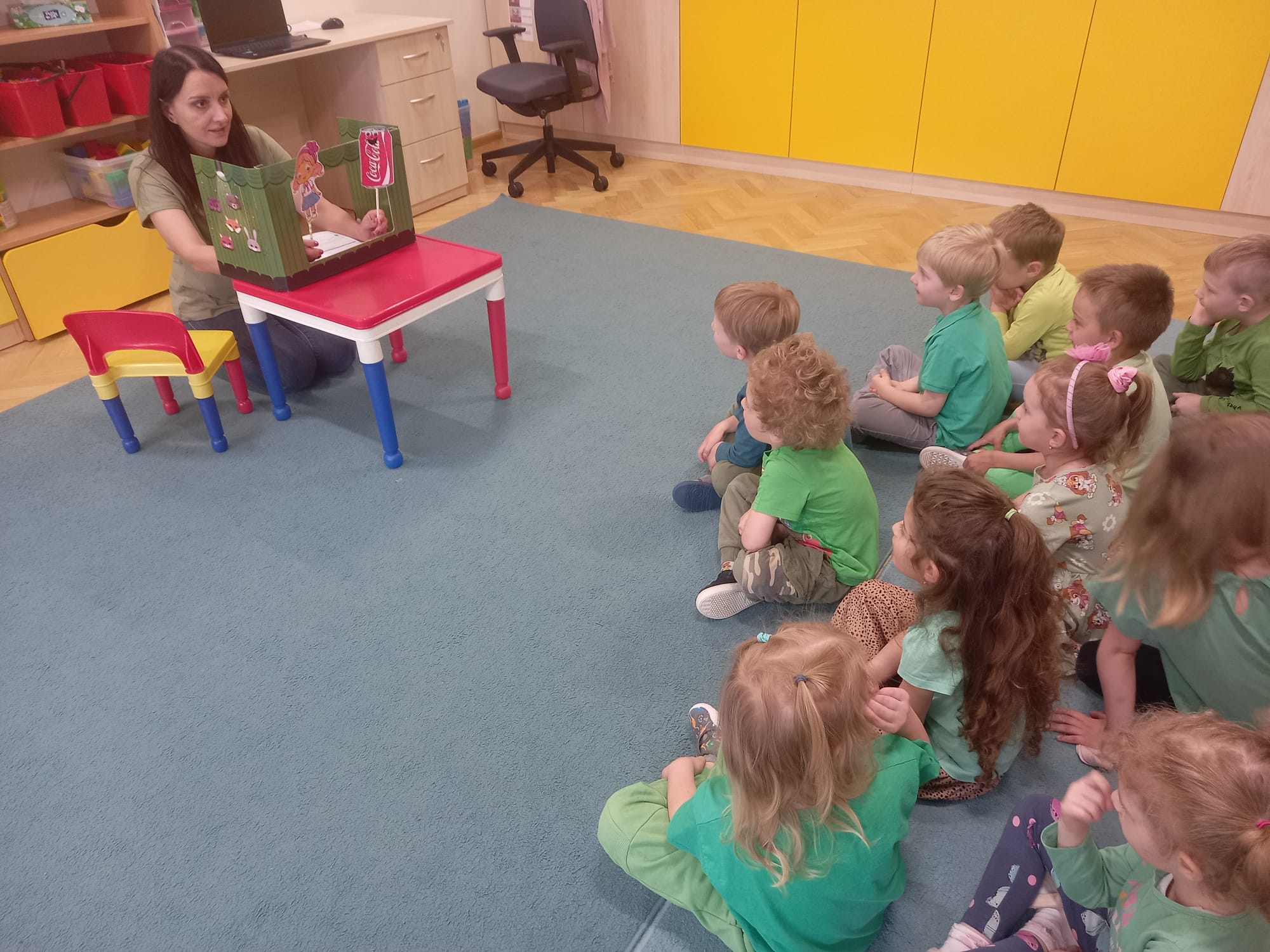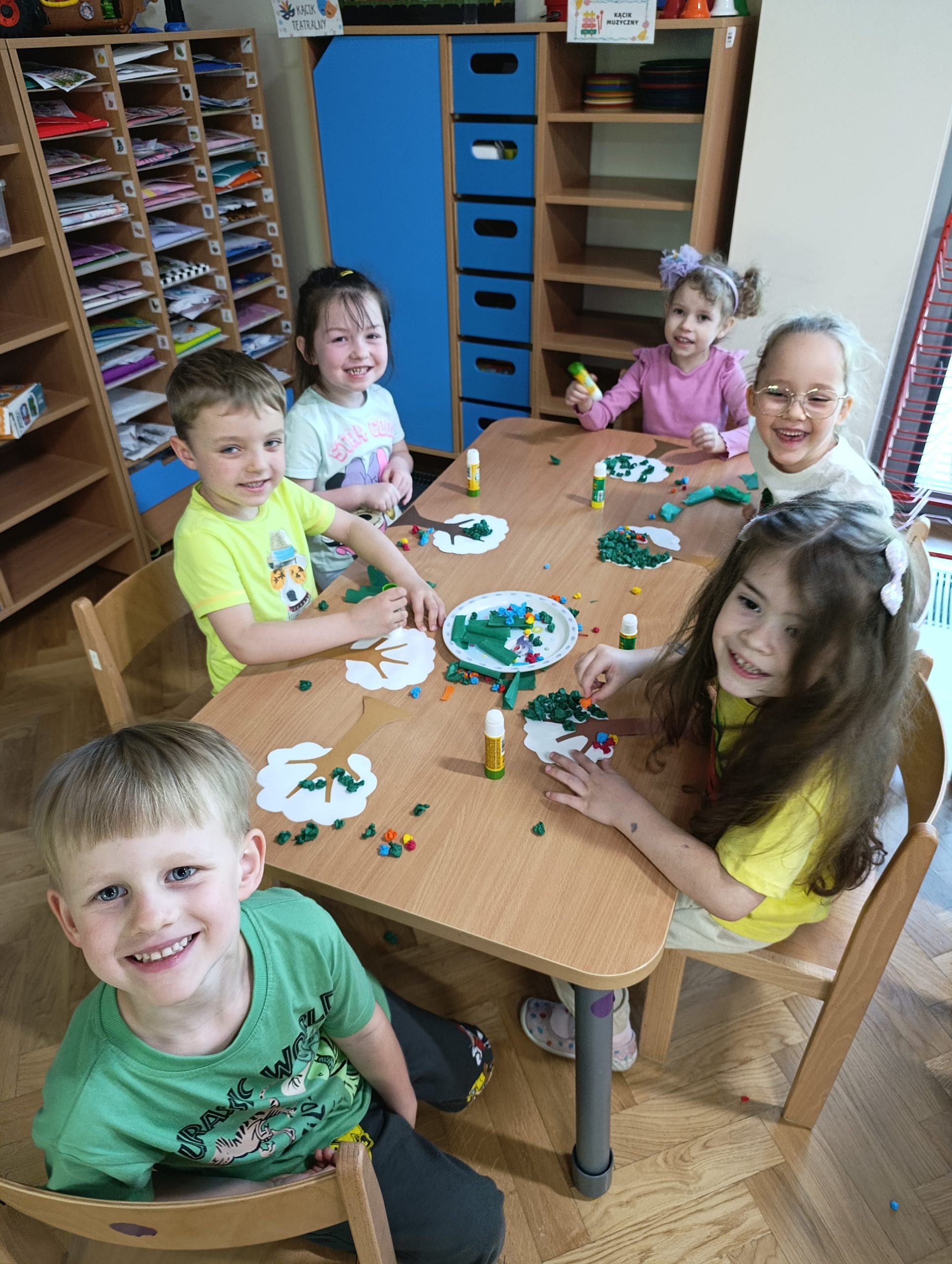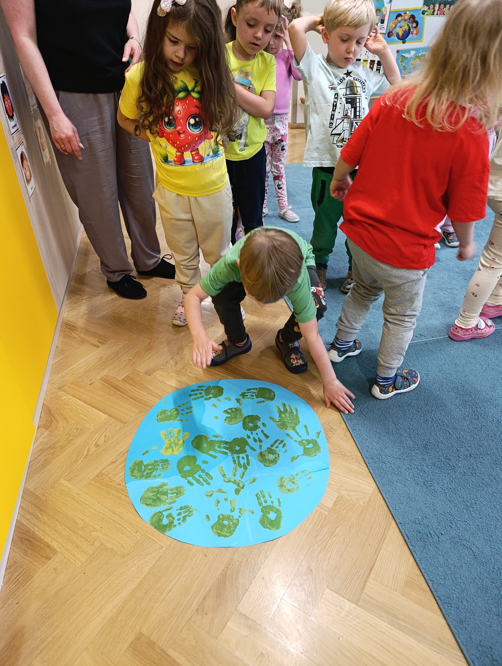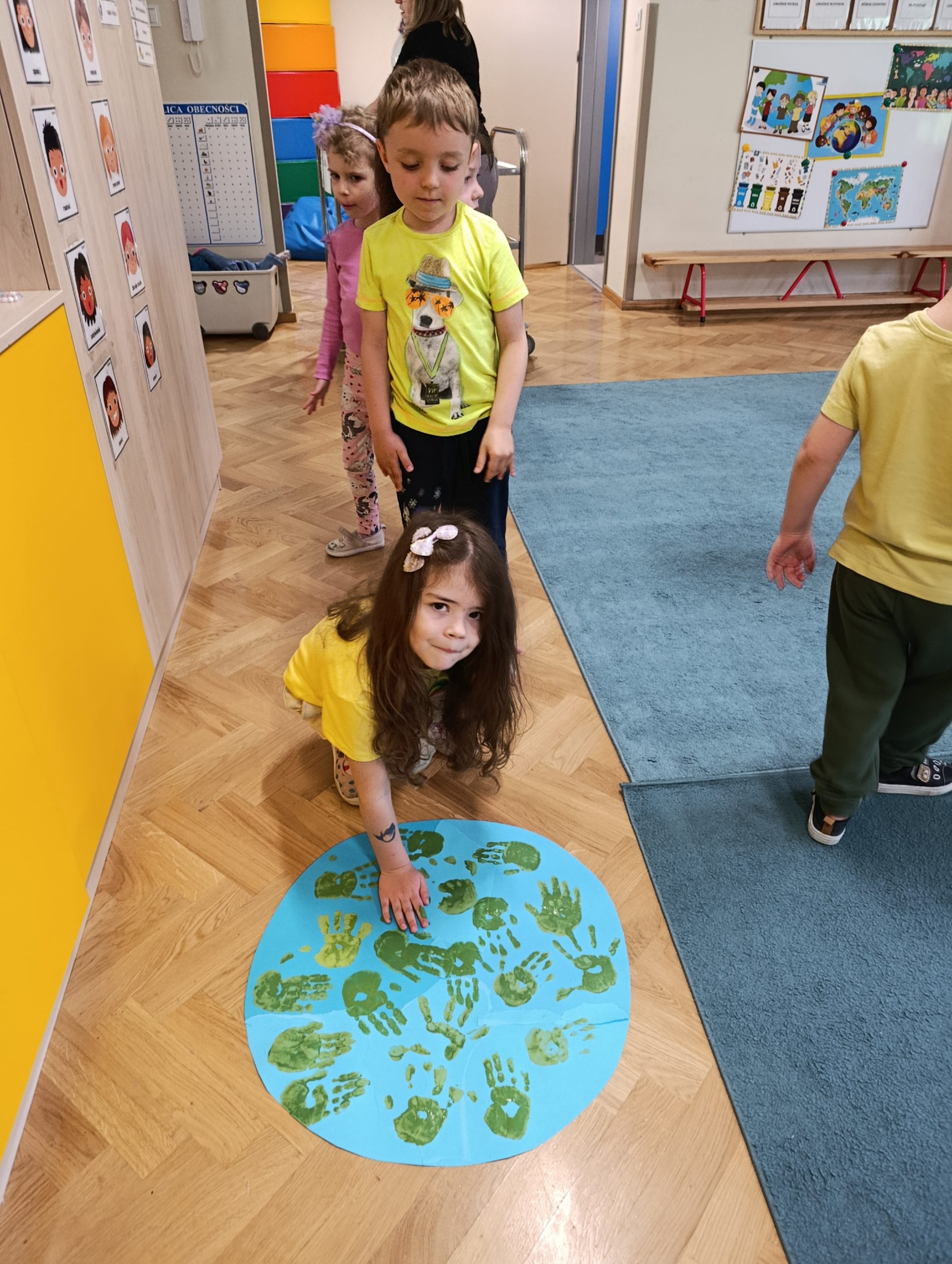 Przedszkolaki podczas całego tygodnia poświęconego ochronie naszej planety, miały okazję porozmawiać o tym jak ważna jest Ziemia, nasz dom. Dowiedziały się jak o nią dbać np. poprzez segregację śmieci, oszczędzanie wody, prądu, a także recykling. Przedszkolaki próbowały ocenić co czuje Ziemia, gdy o nią dbamy, a także jakie emocje odczuwa gdy jest niszczona. Opowiadały o tym co robią na co dzień, aby szanować nasz świat. Uczestniczyły w teatrzyku, dzięki któremu dowiedziały się jak ważne jest sprzątanie śmieci, a w ramach pracy plastycznej stworzyły własne zielone drzewa i ozdobiły nimi Ziemię.